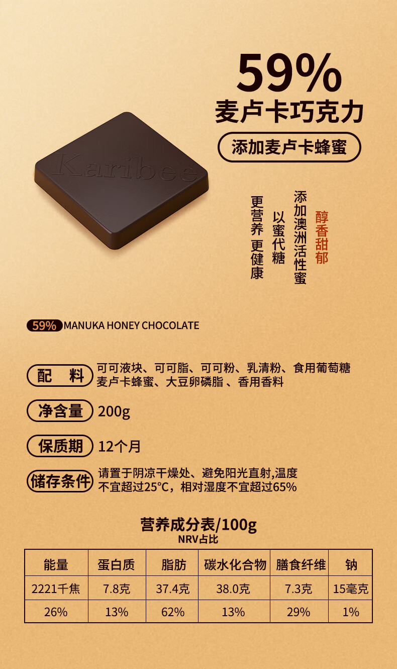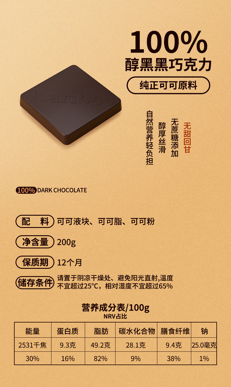 Karibee可瑞比黑巧克力200g*2盒