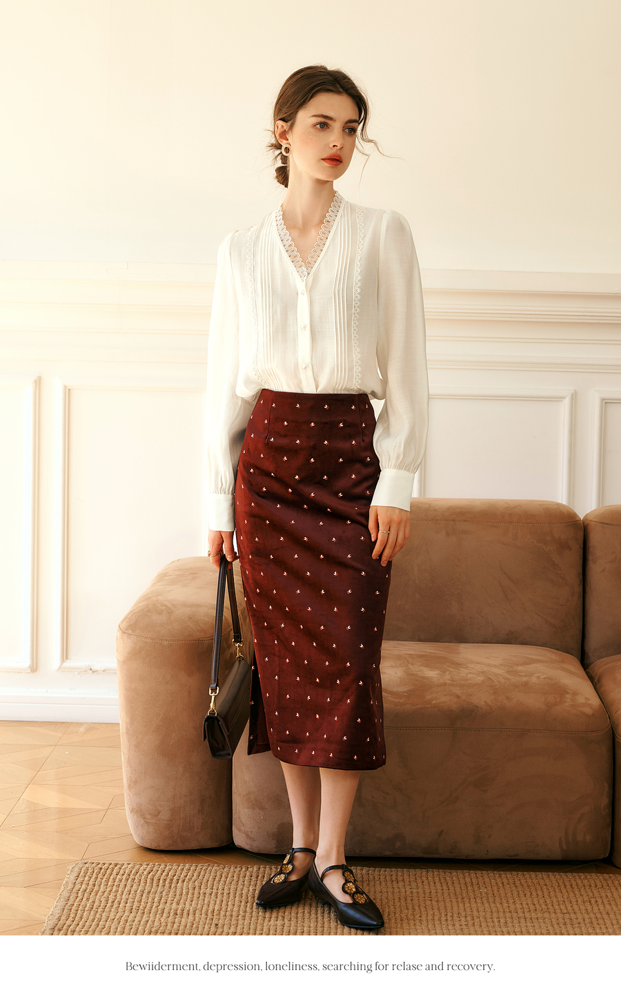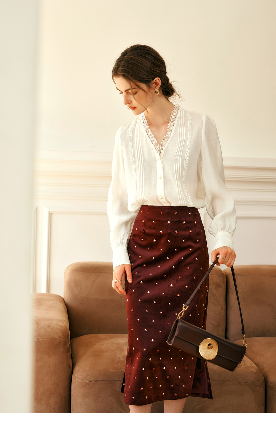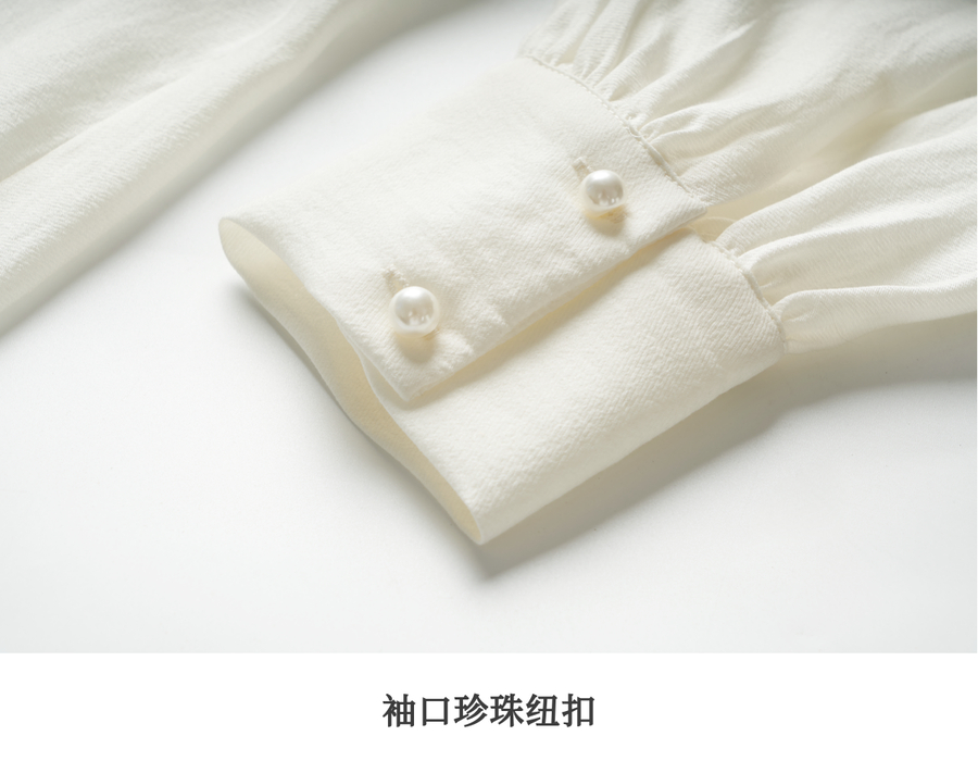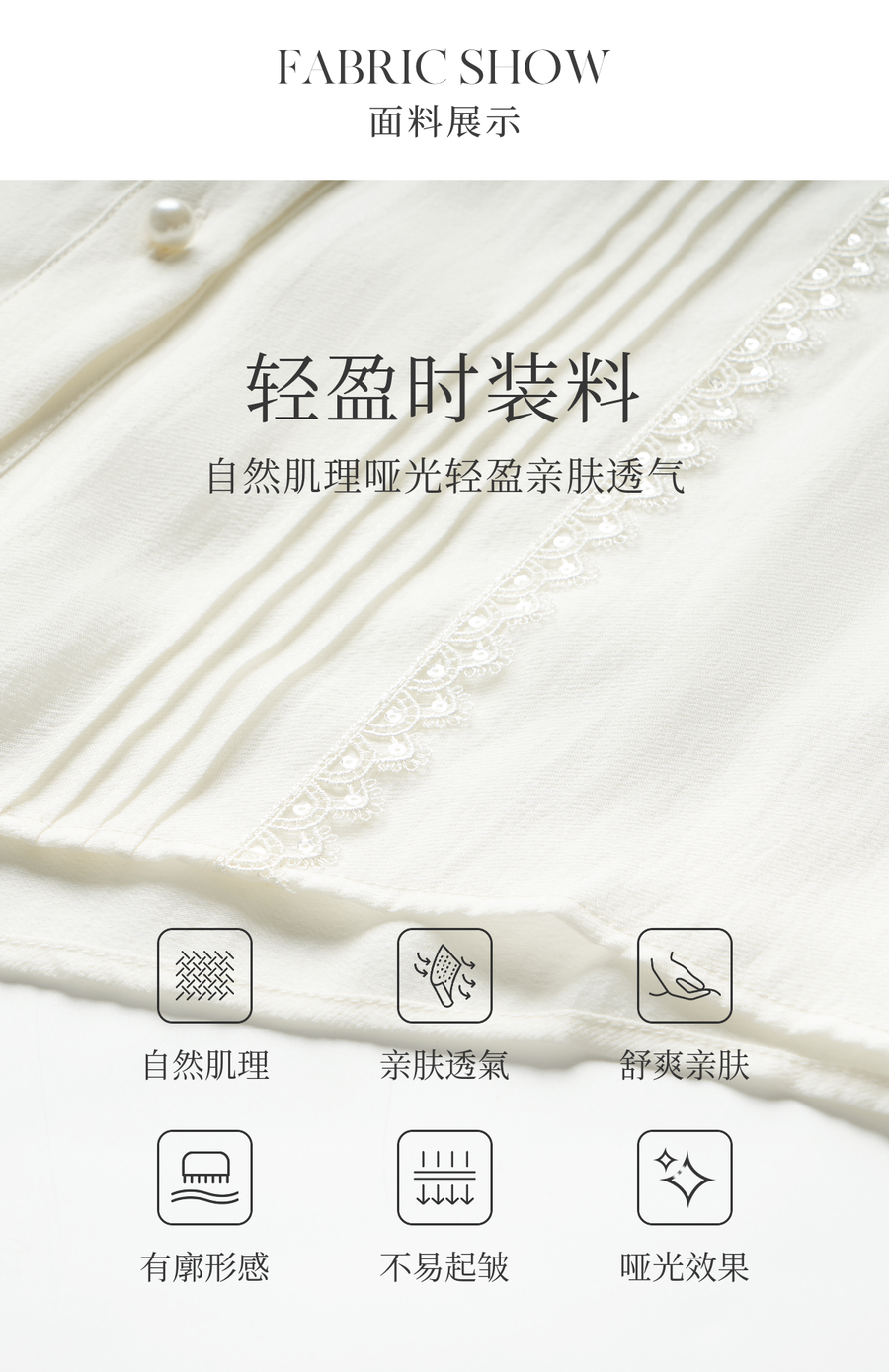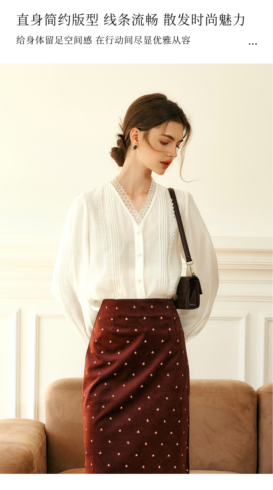 OLrain欧芮儿法式V领衬衫女春季2025年新款蕾丝花边百搭长袖衬衣