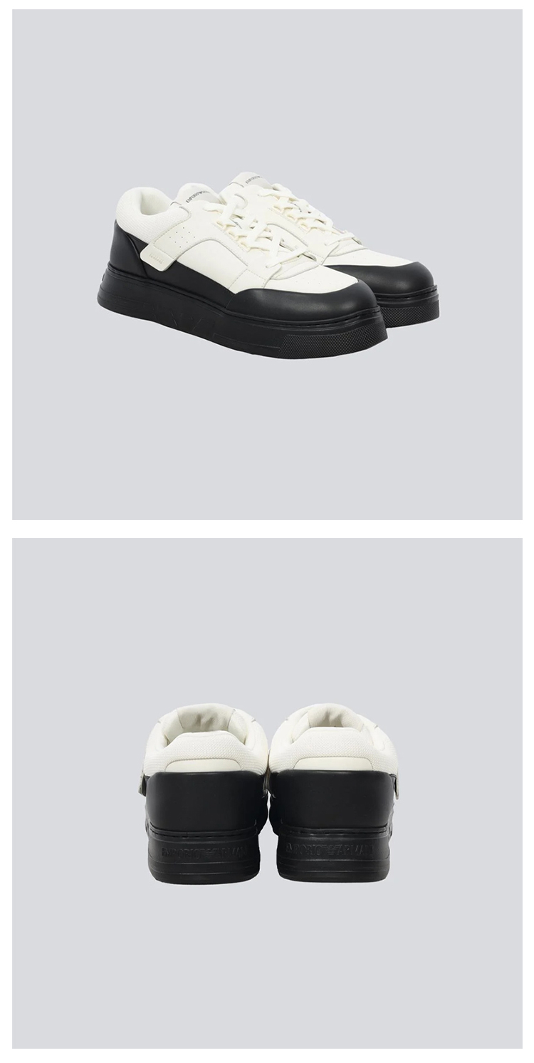 EMPORIO ARMANI 阿玛尼 男士网眼皮革运动鞋 白色+黑色 EM002855 AF18018 MC024