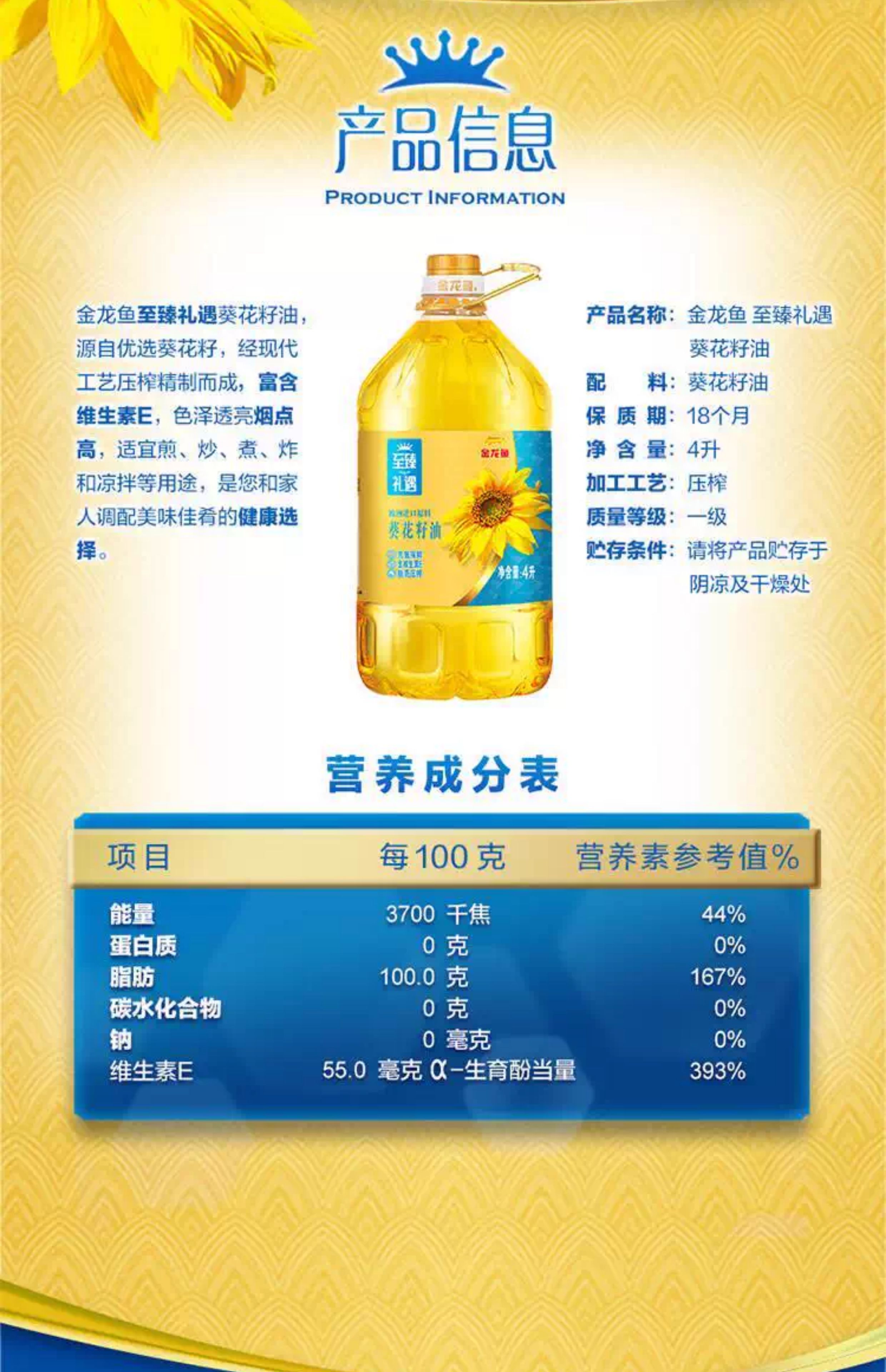 【秒杀】金龙鱼至臻礼遇葵花籽油4L