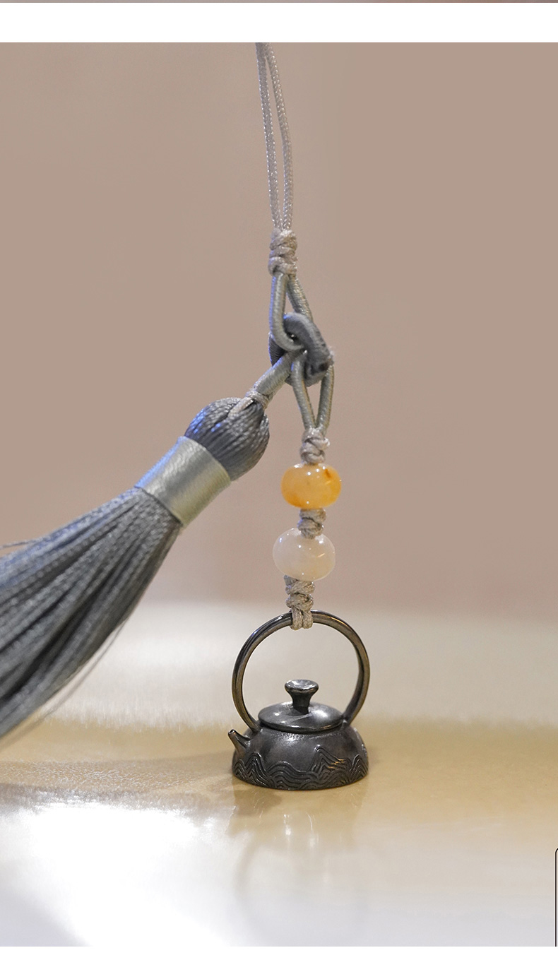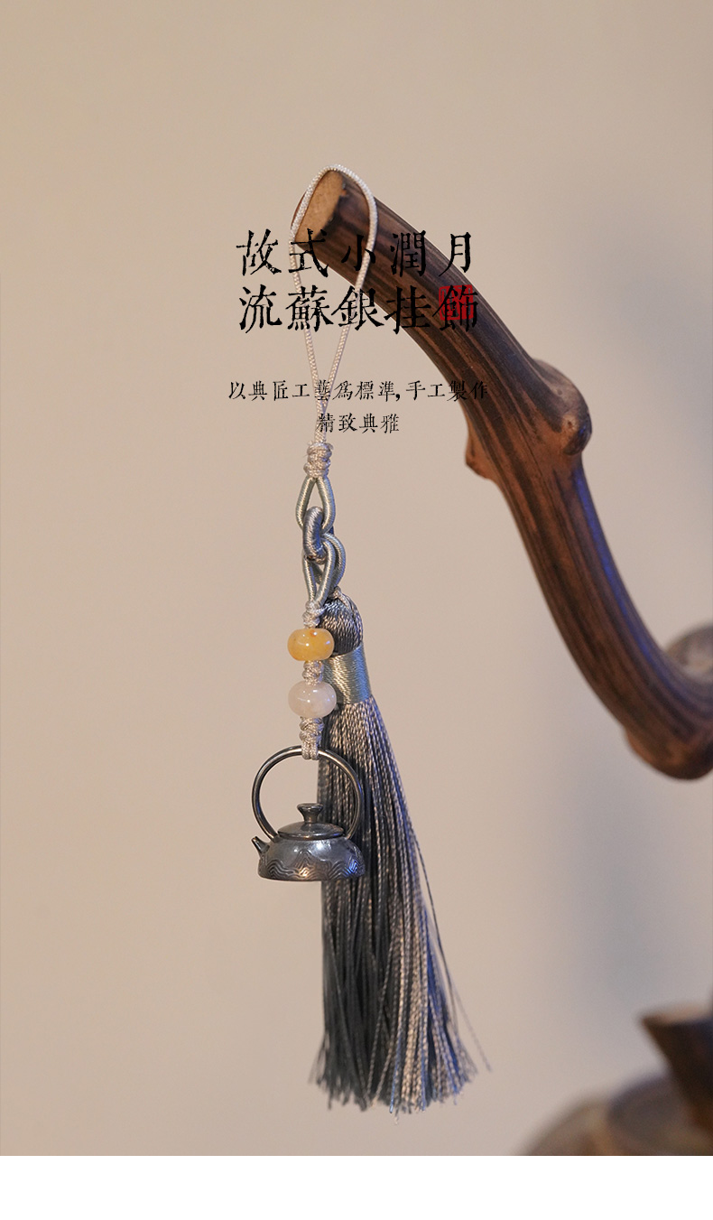 故式/小润月银饰/999纯银迷你小银壶国风流苏穗子 手机壳吊穗配饰挂件小流苏吊坠