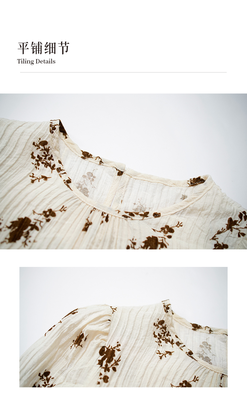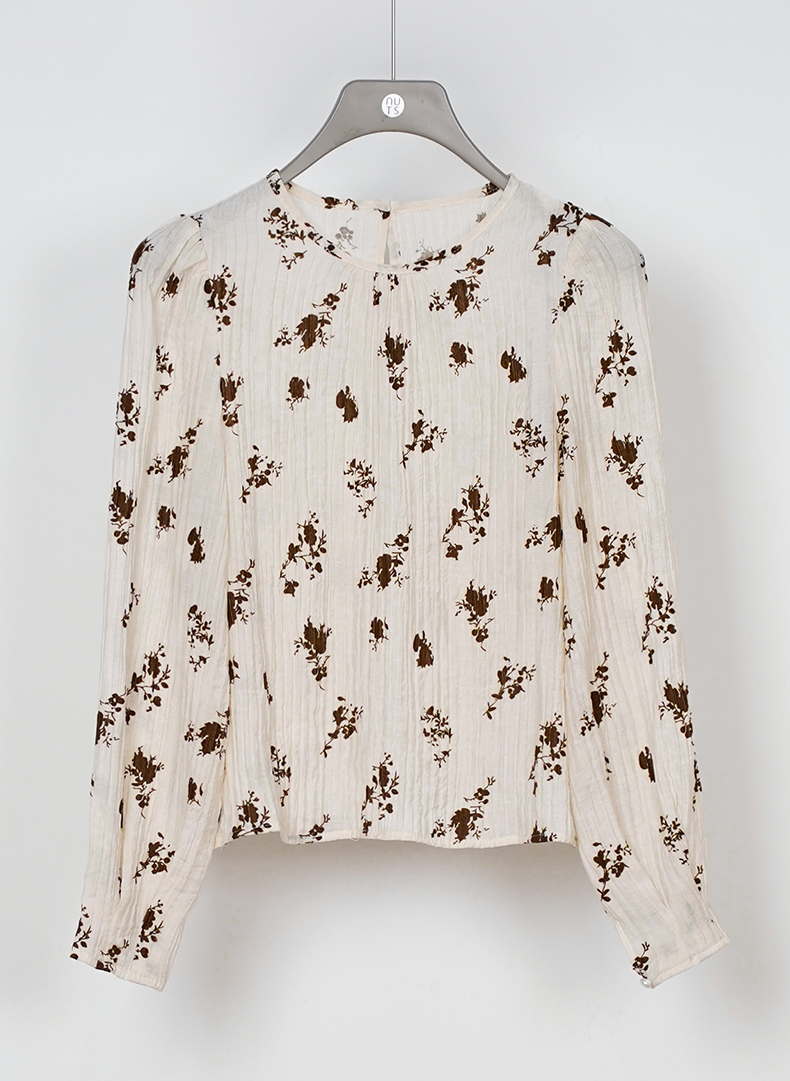 NUTS秋季新款复古气质宽松显瘦短款碎花长袖套头衫女333012269