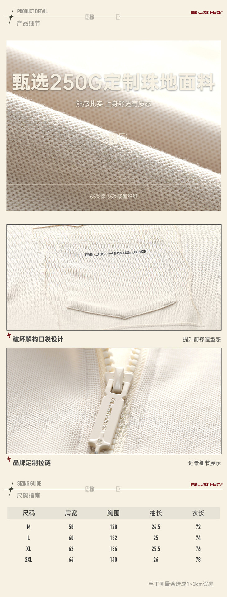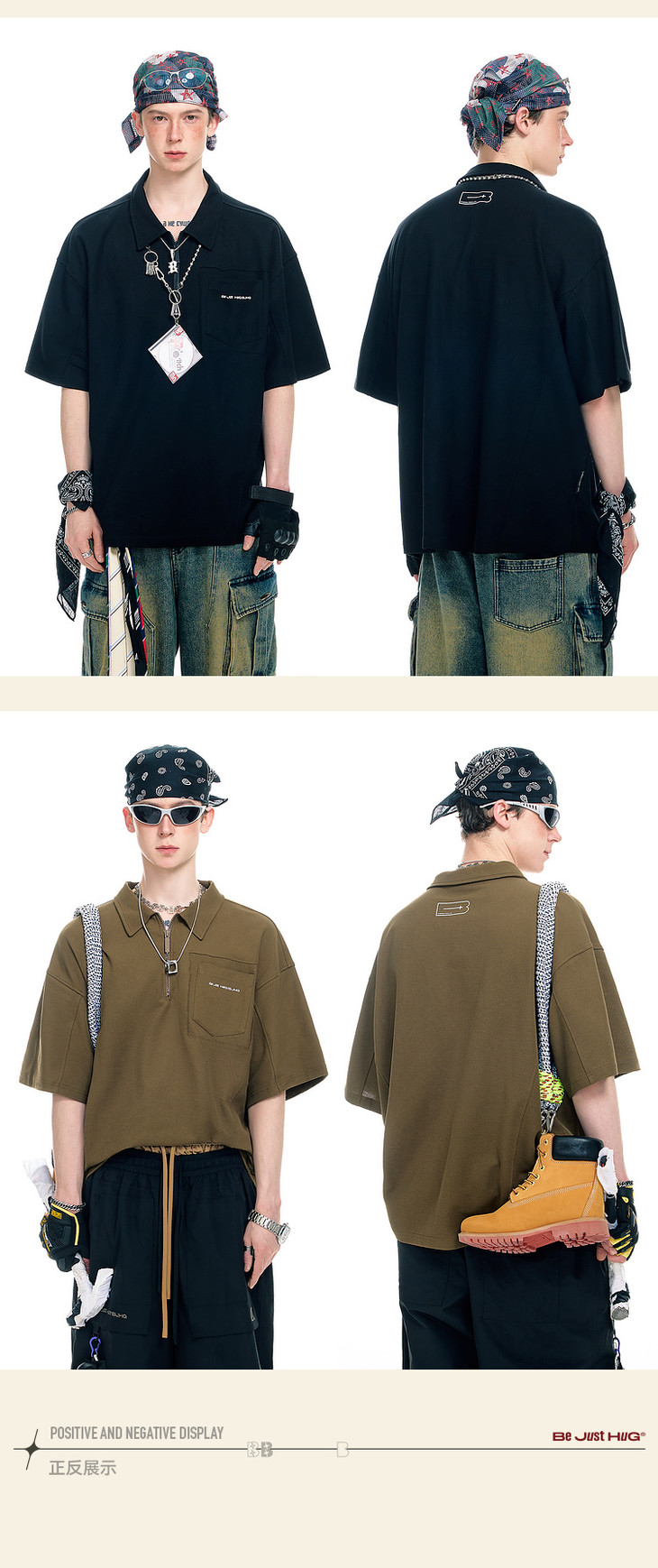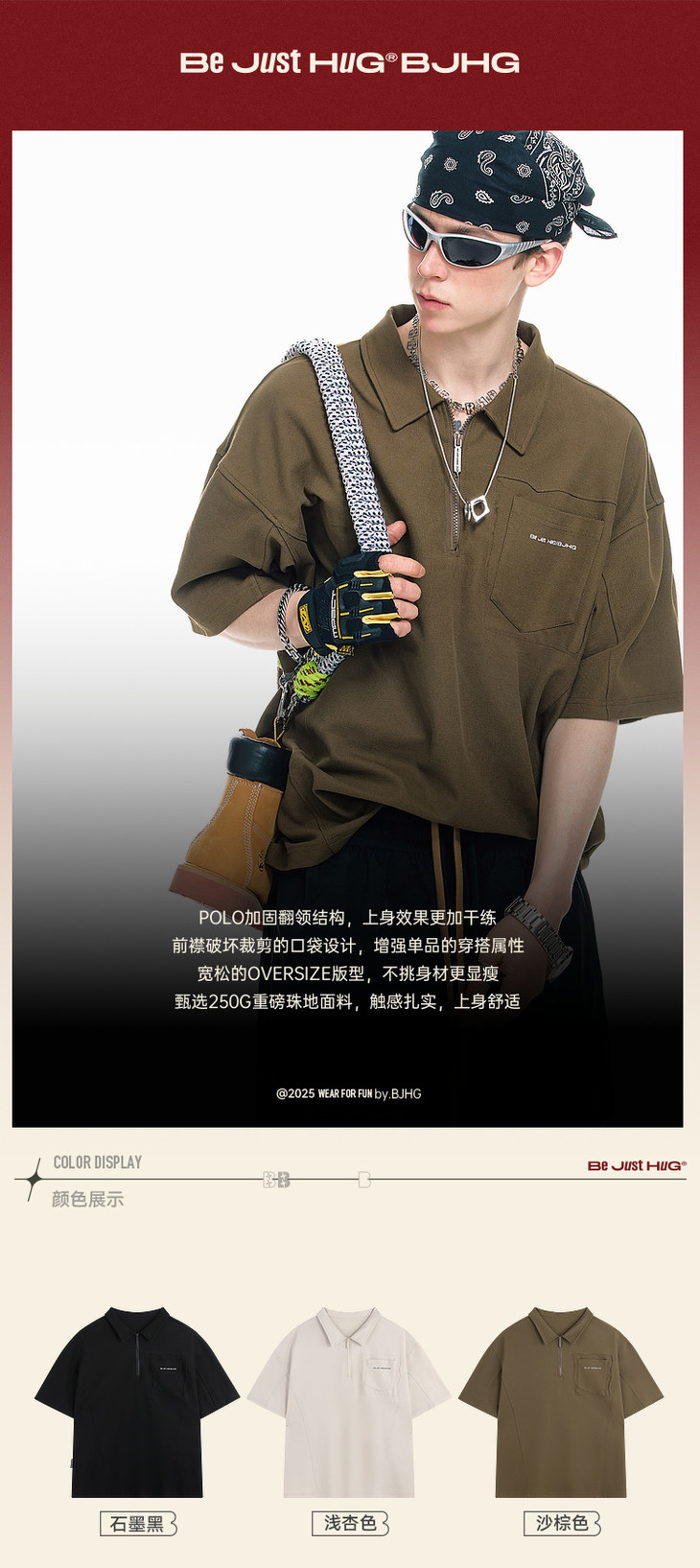 BJHG不计后果 重磅珠地棉短袖POLO衫男夏美式复古宽松简约运动t恤