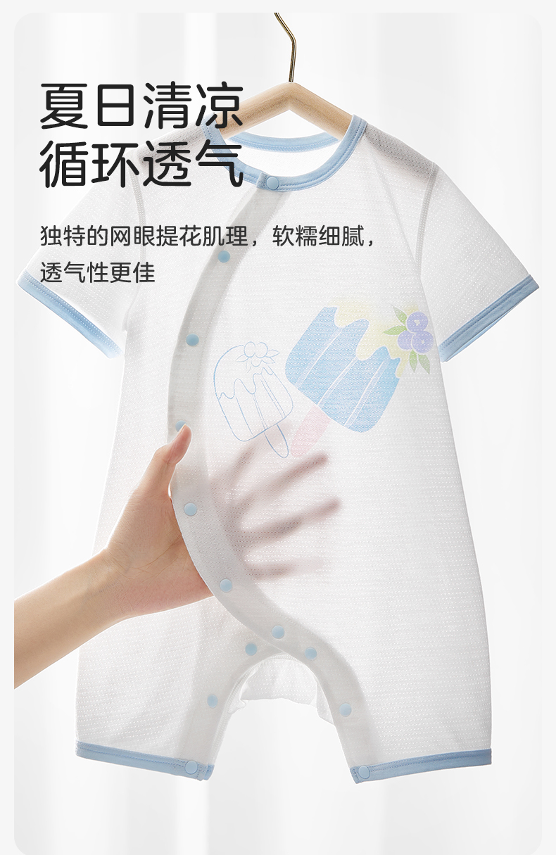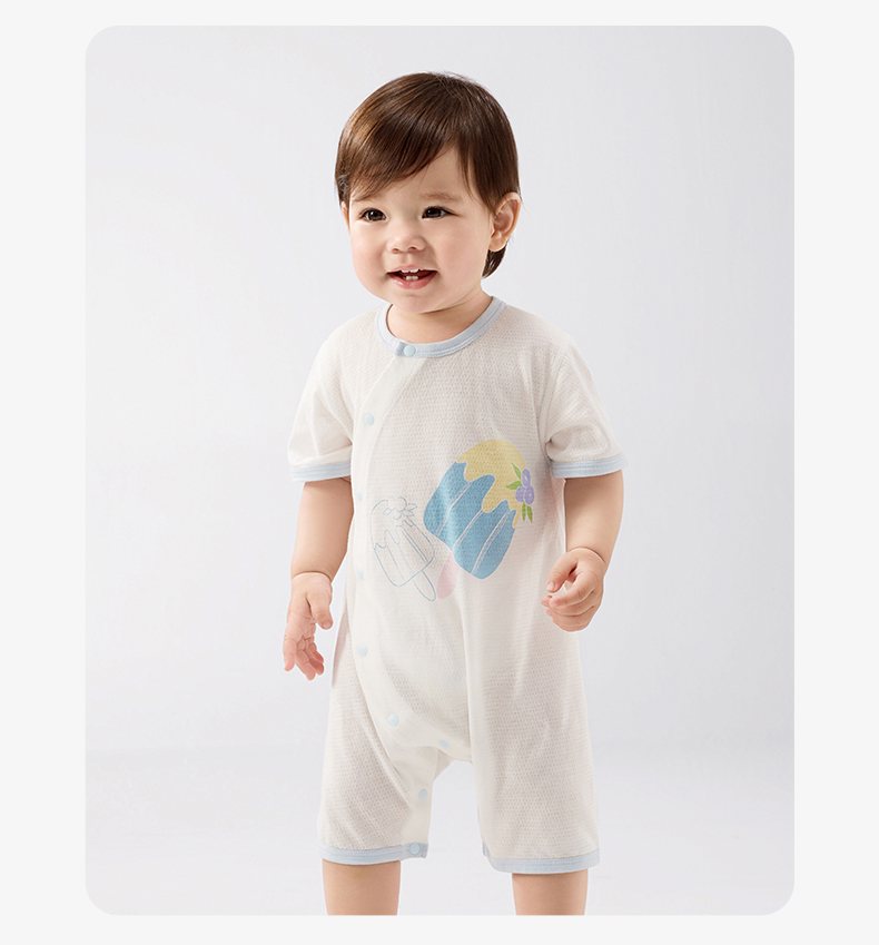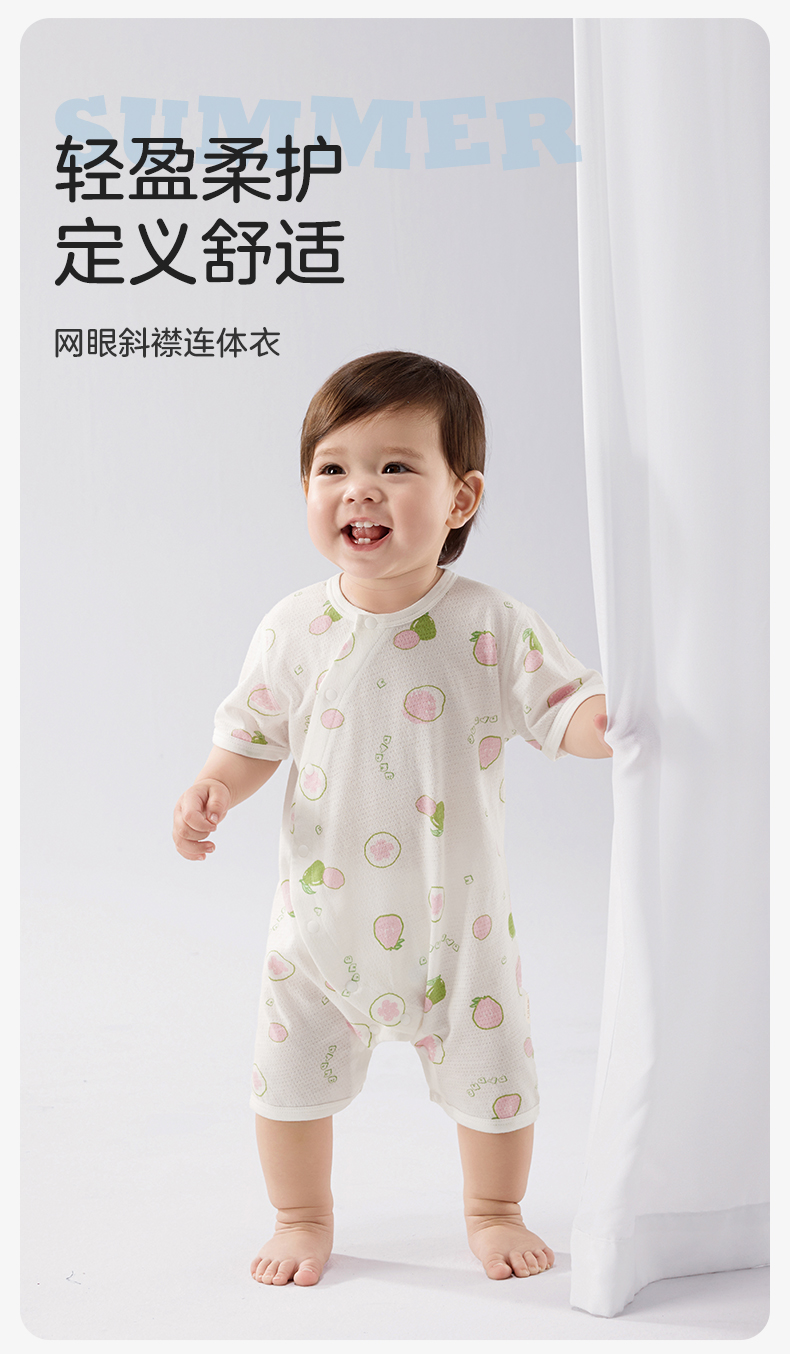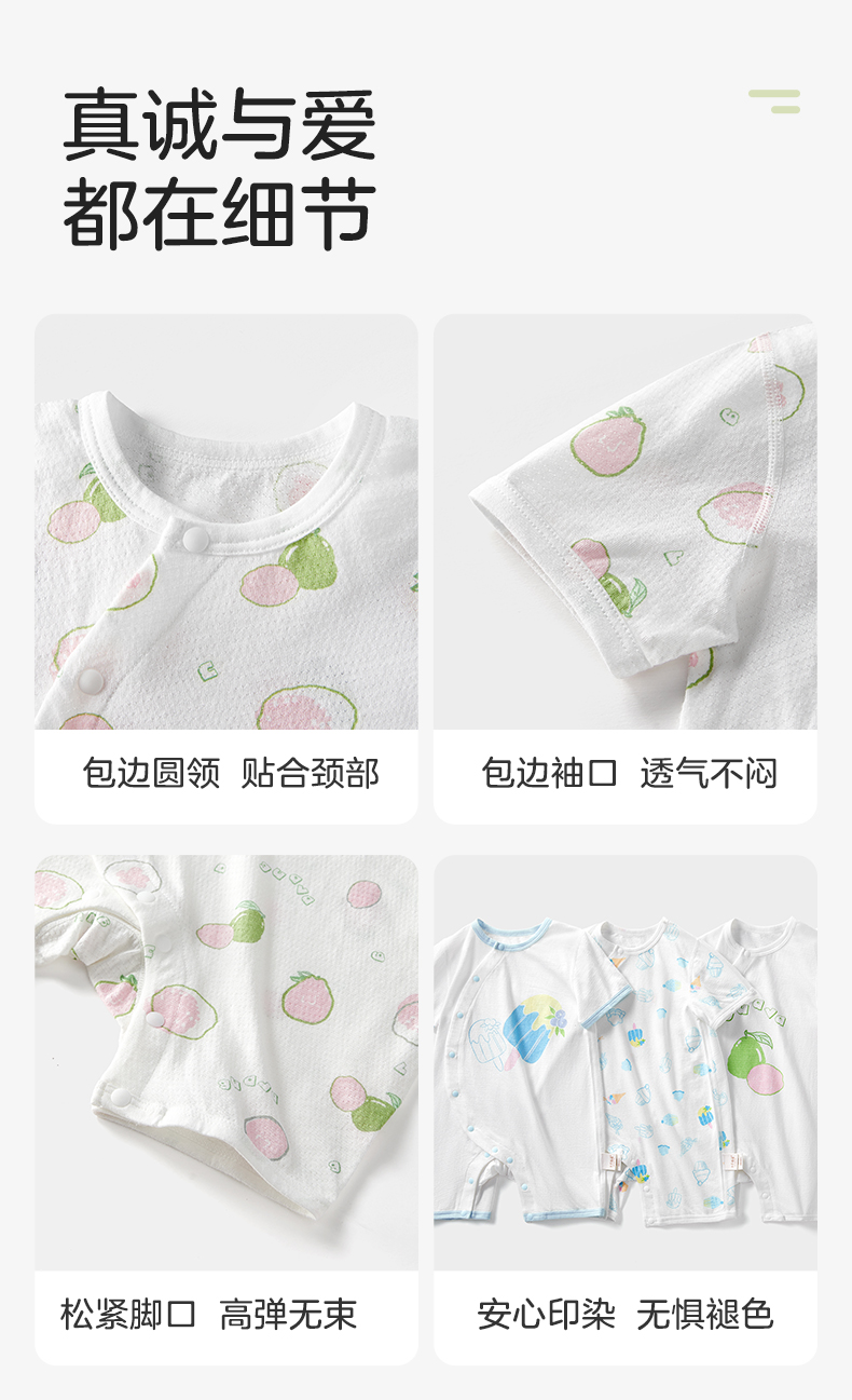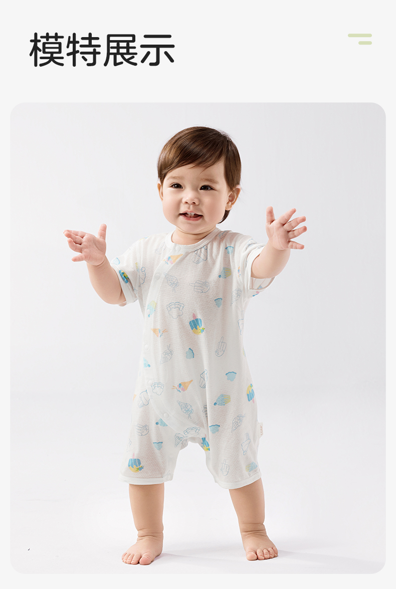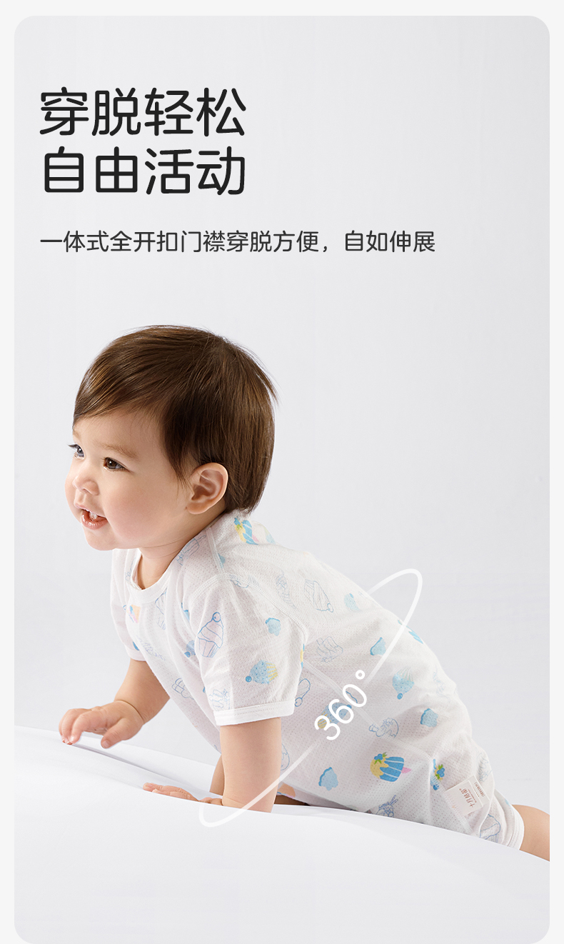 婴儿夏季短袖纯连体衣 赠【便携洗衣皂80g*5块】
