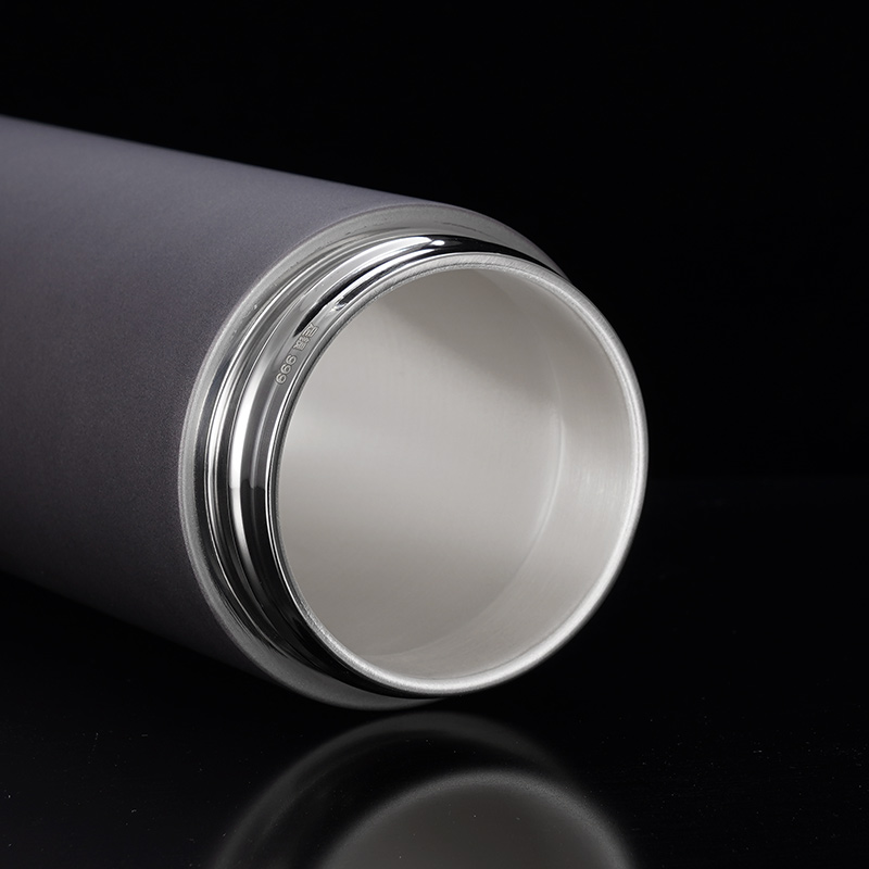 【寓意】:足银内胆杯,简约素雅,磨砂质感,尽显绅士风范。低调奢华,品位之选,是送给心爱之人的温暖礼物。