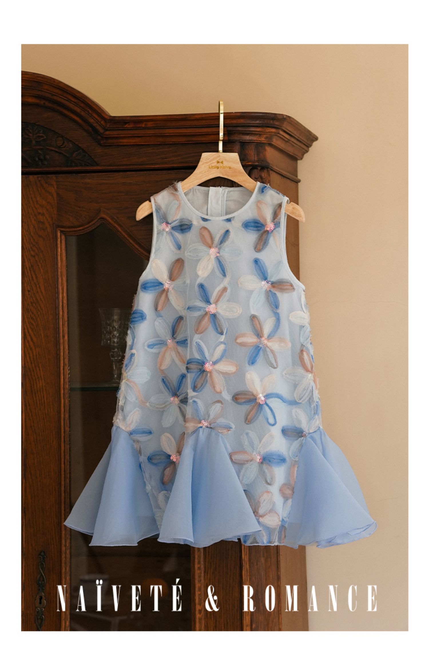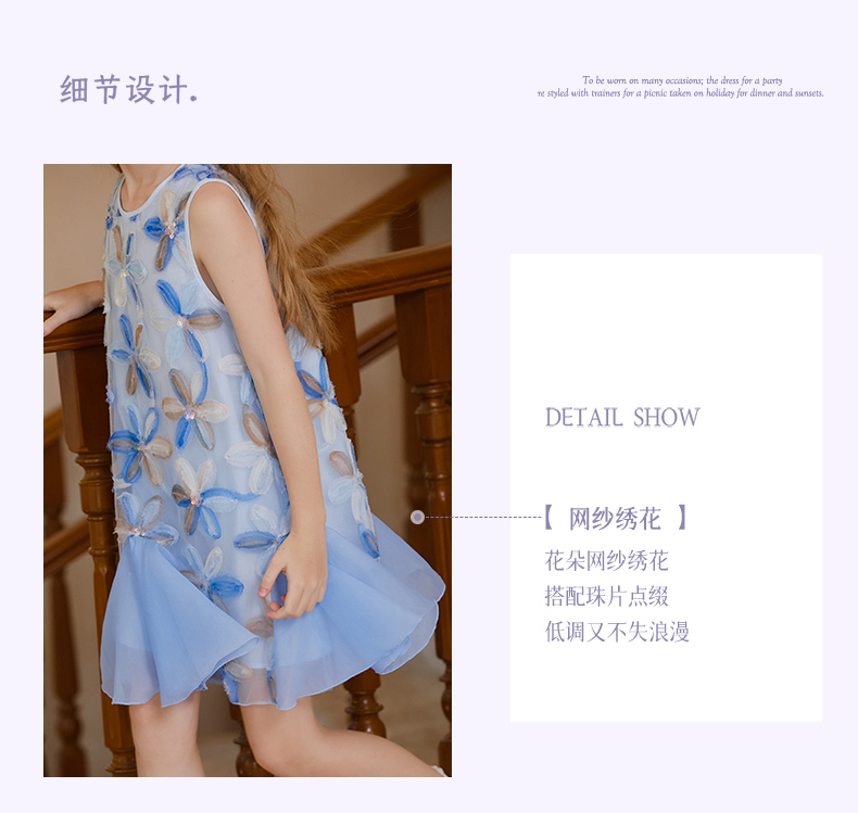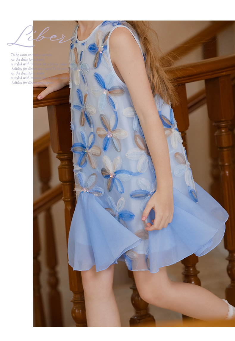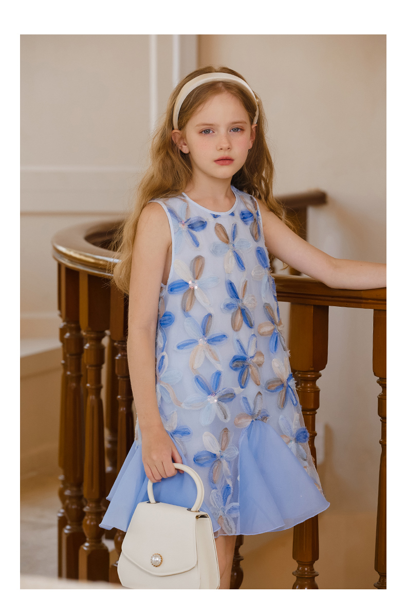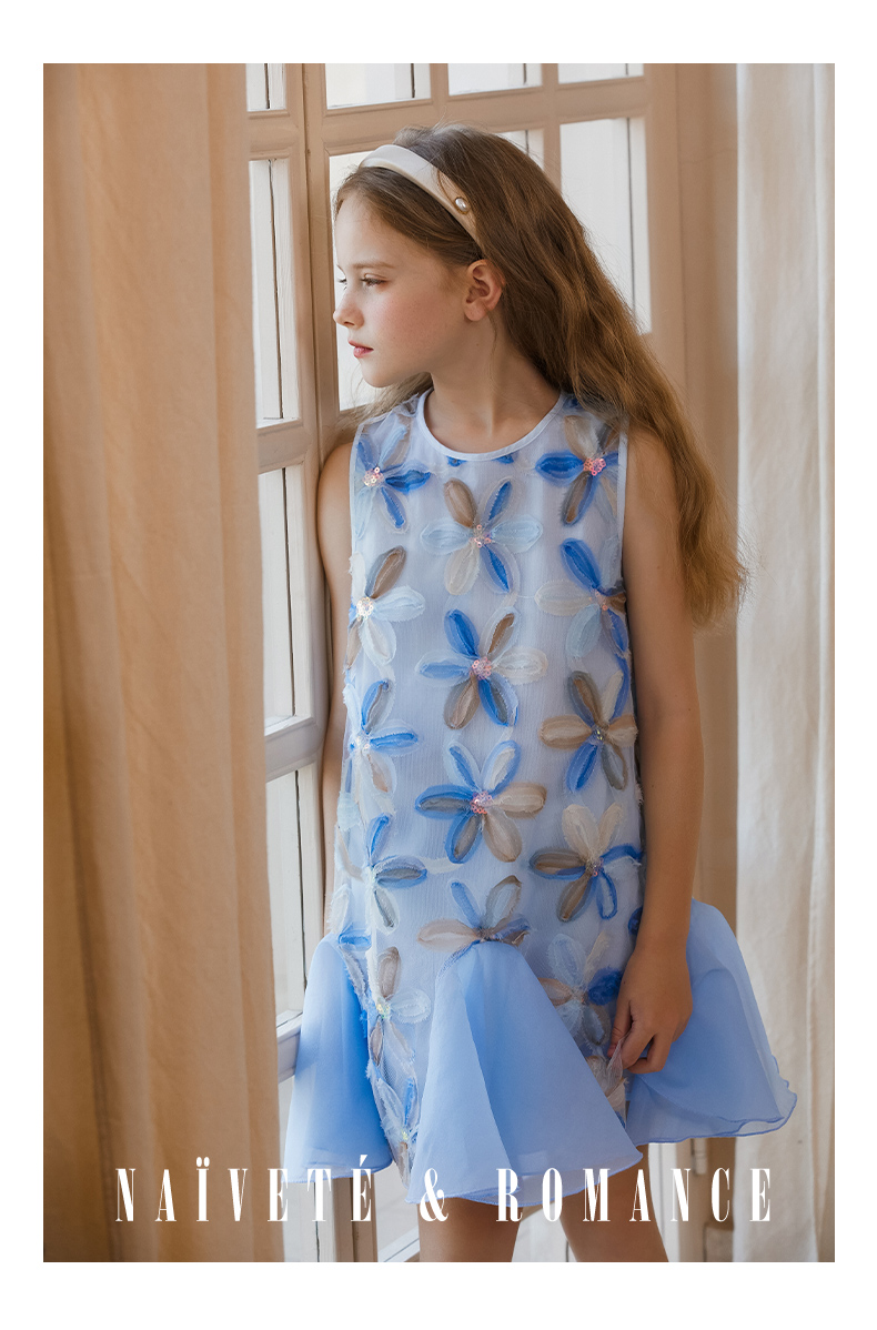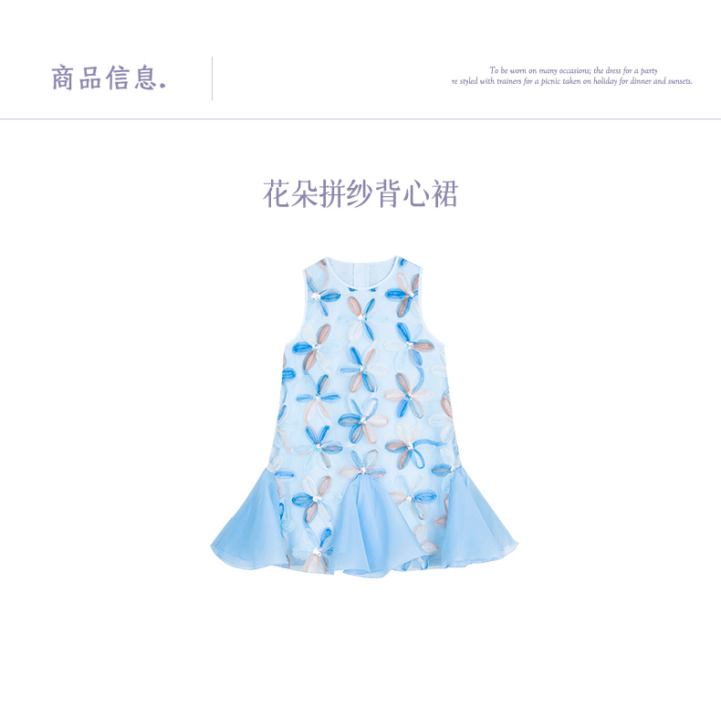 【云优选】LittleNaive儿童背心裙无袖花朵拼纱中长款夏季气质女童连衣裙
