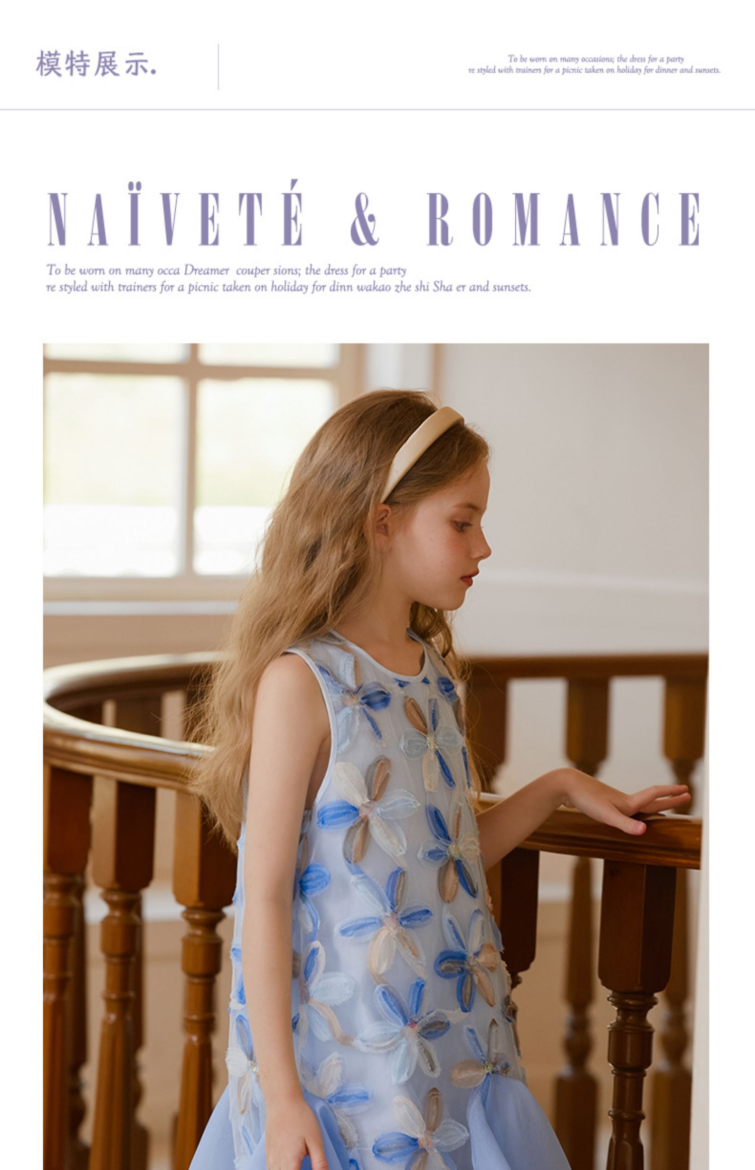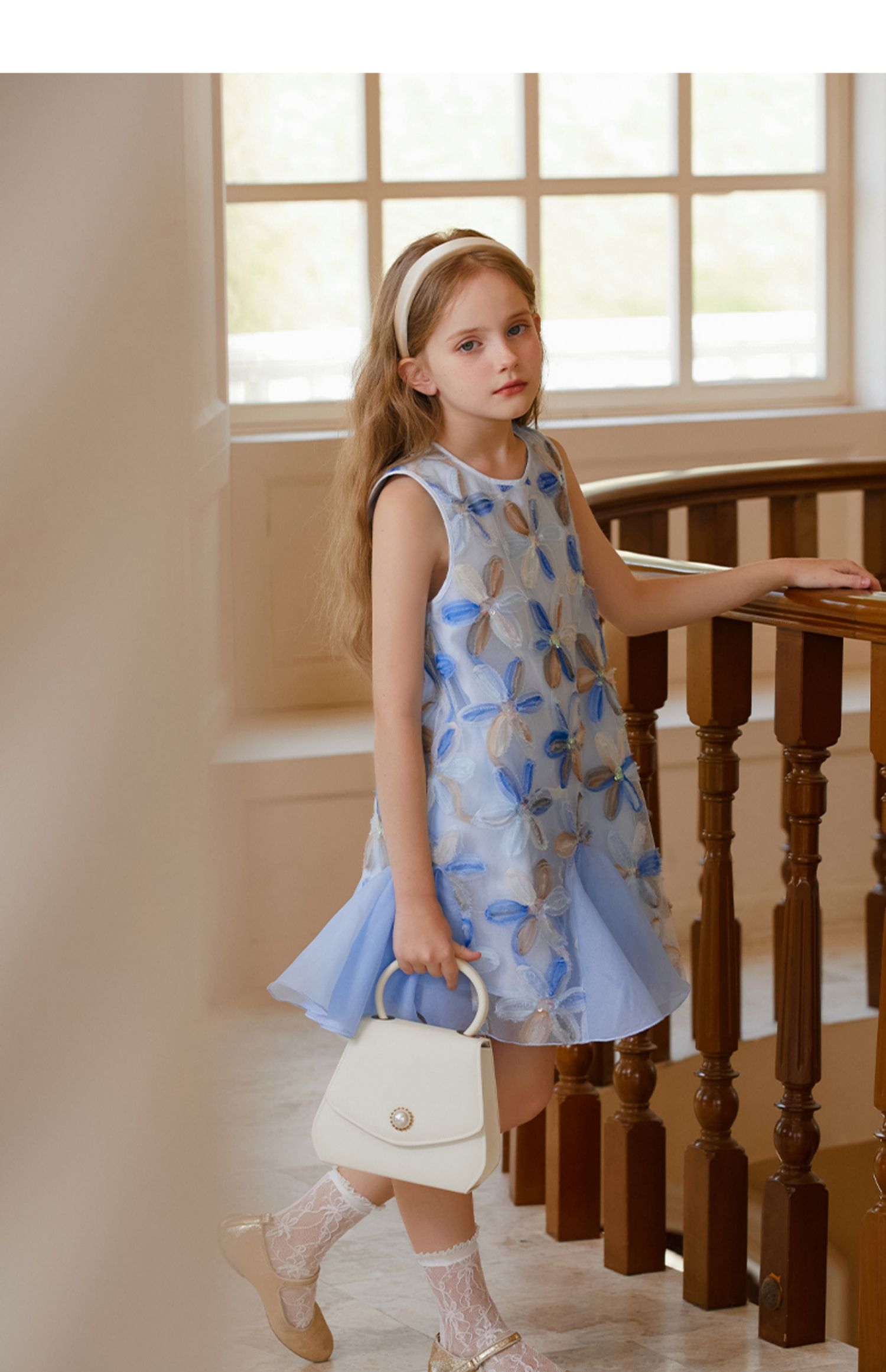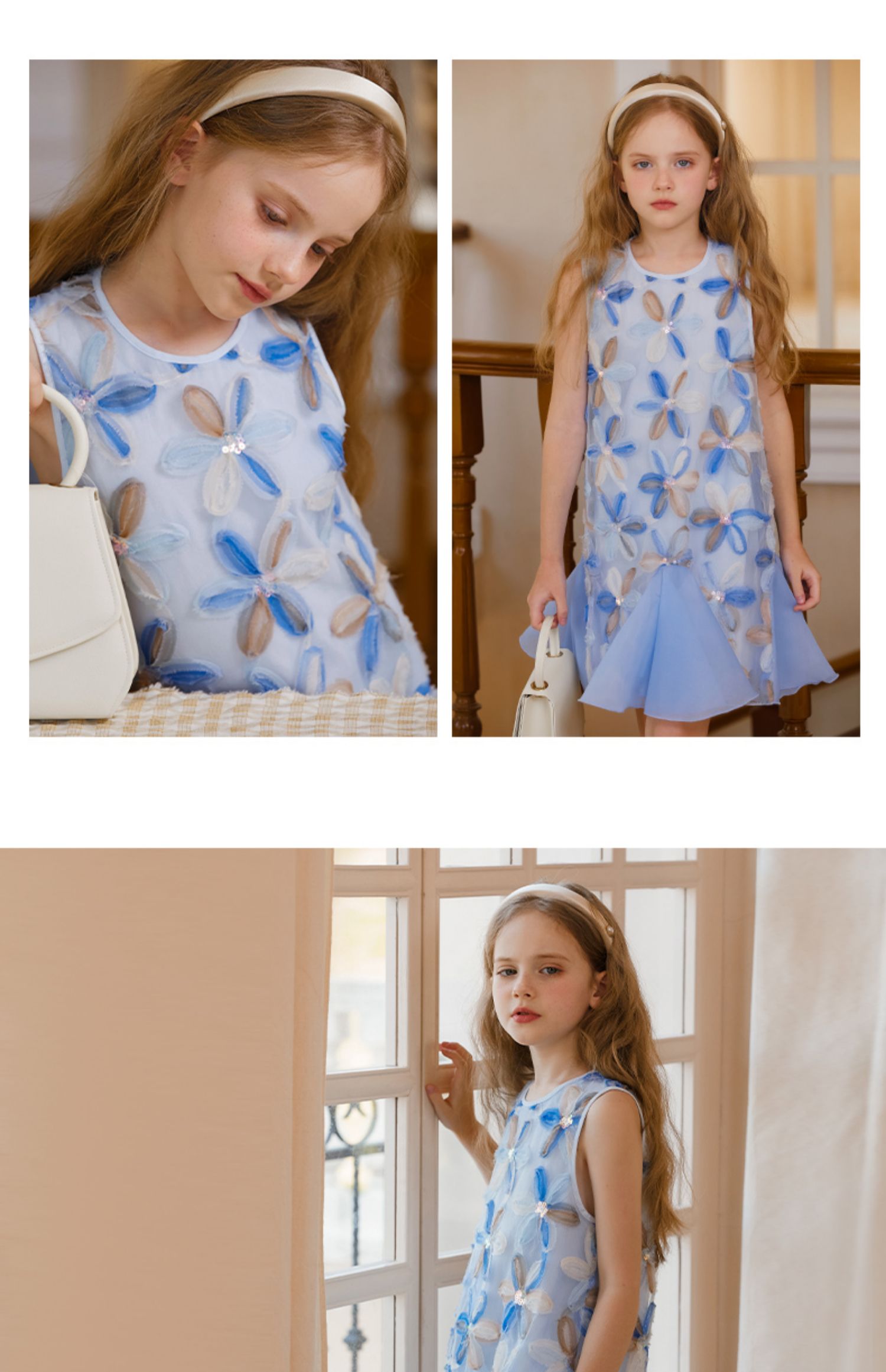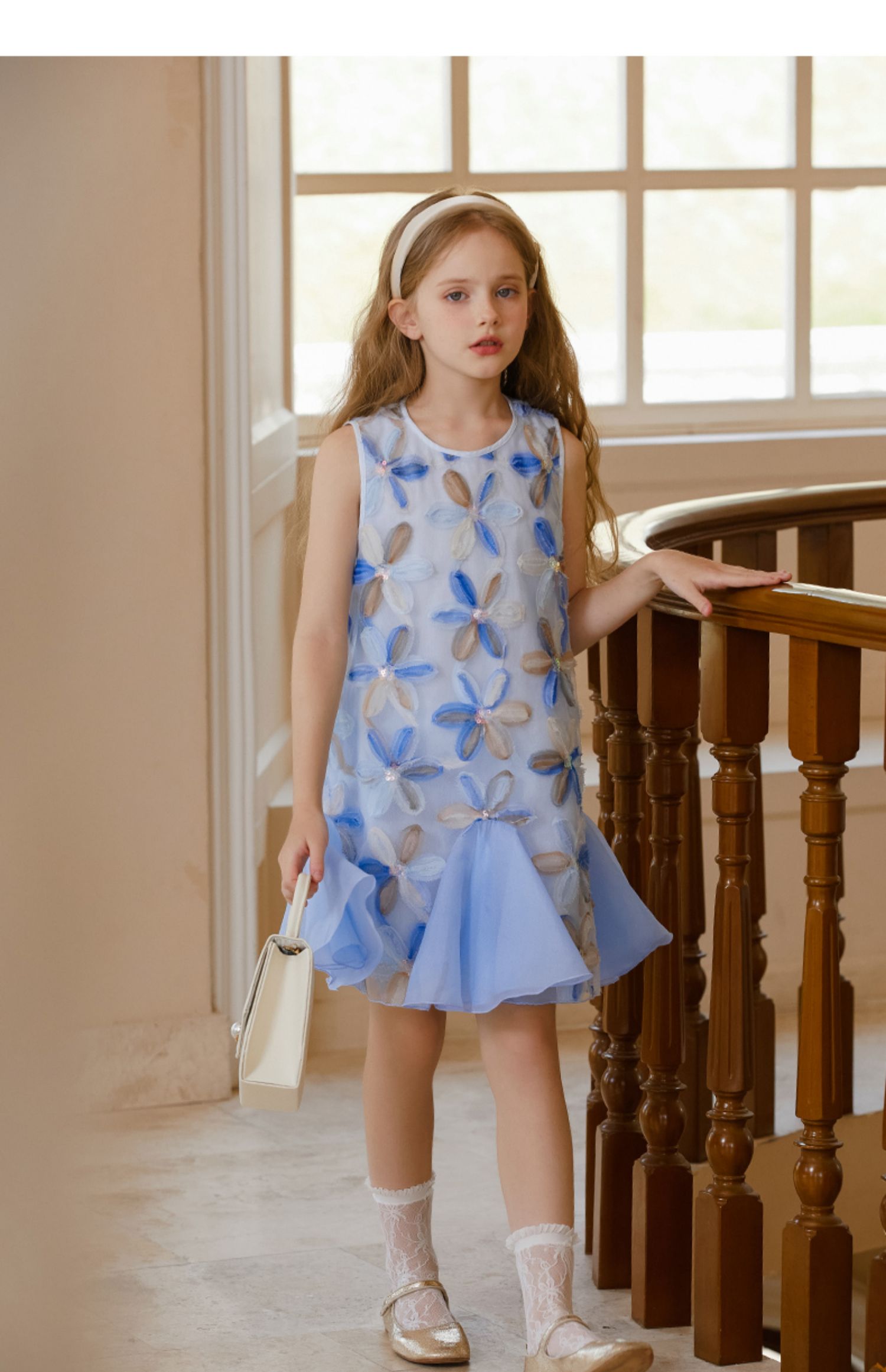 【云优选】LittleNaive儿童背心裙无袖花朵拼纱中长款夏季气质女童连衣裙