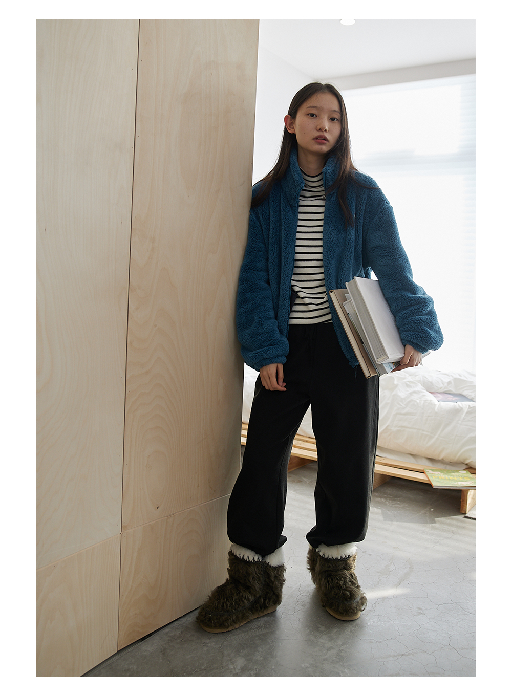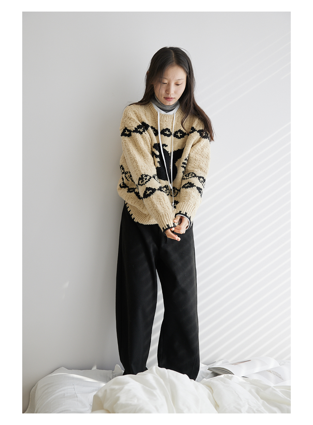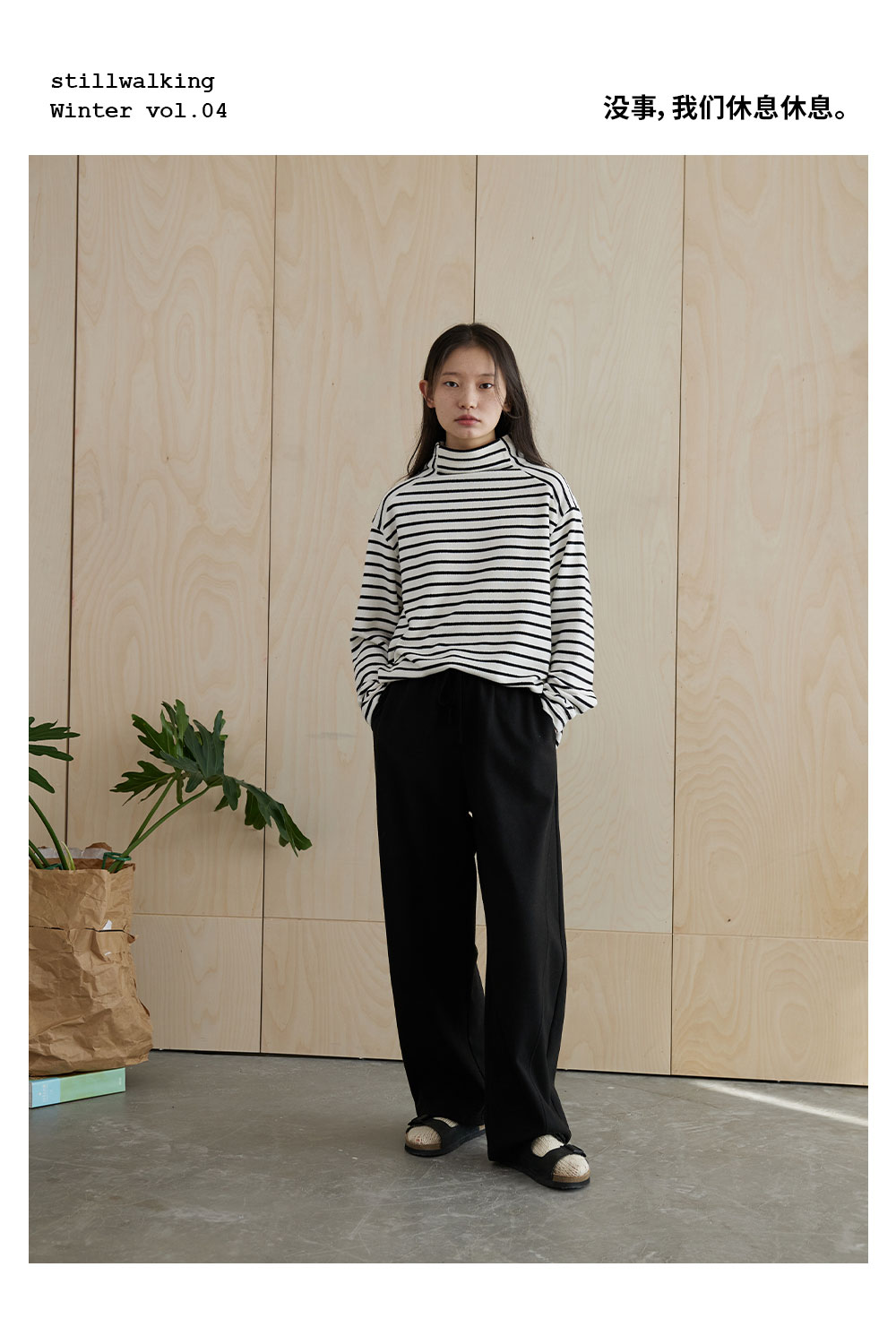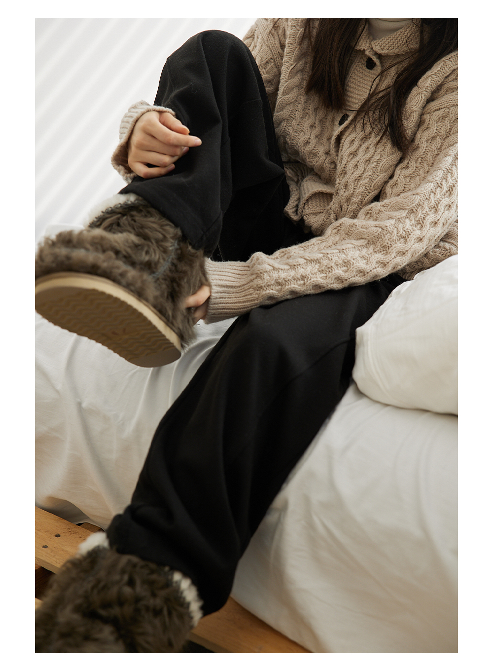 步履不停/3D43081C/休闲裤加厚加绒黑色白色针织裤