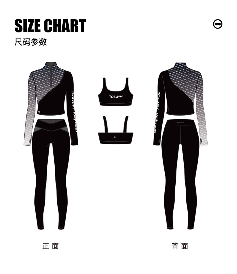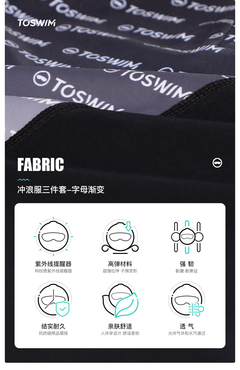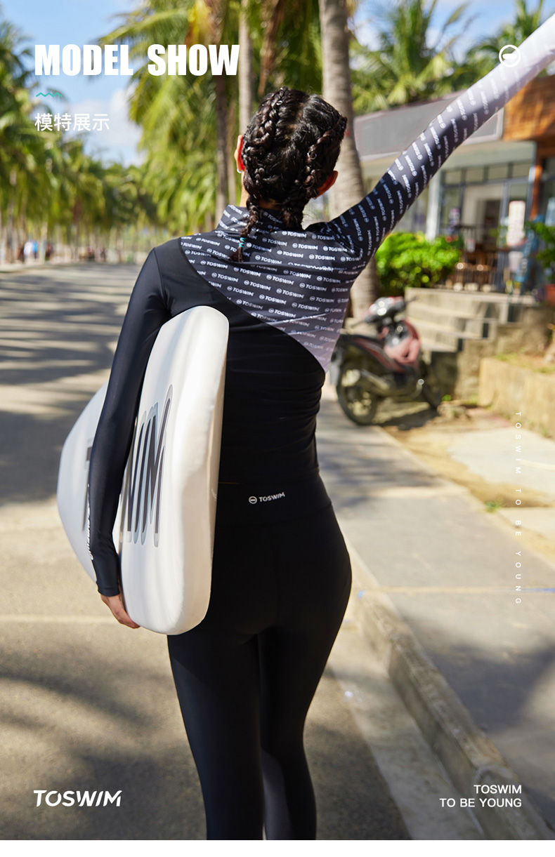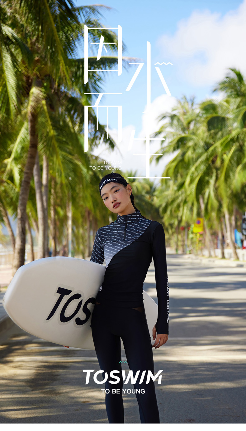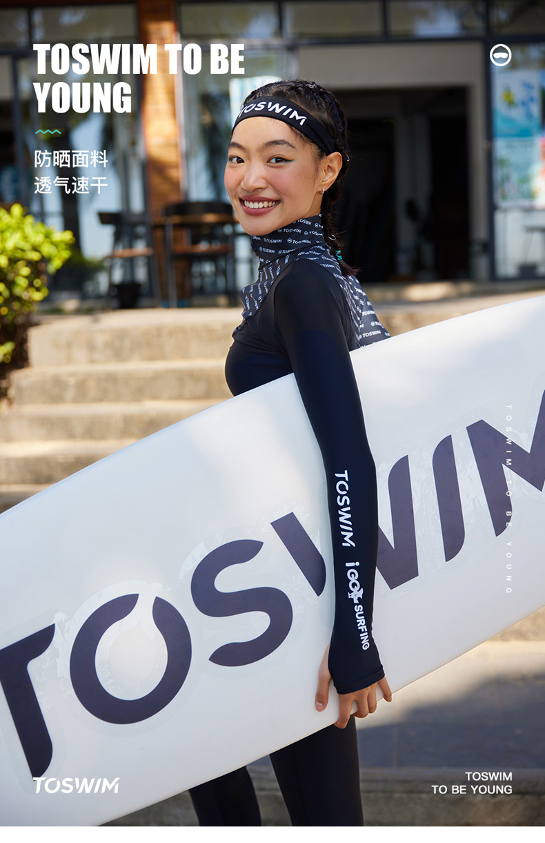 泳镜侠推荐!TOSWIM显瘦速干冲浪潜水运动跑步泡温泉泳衣女保守字母渐变