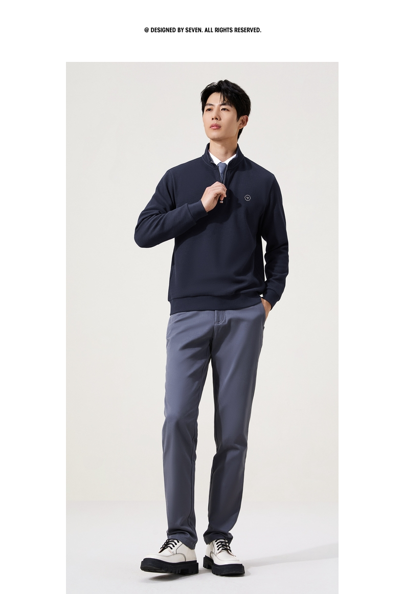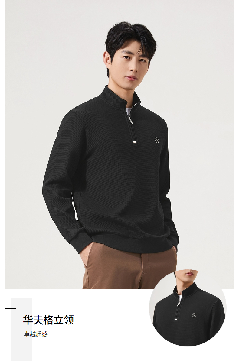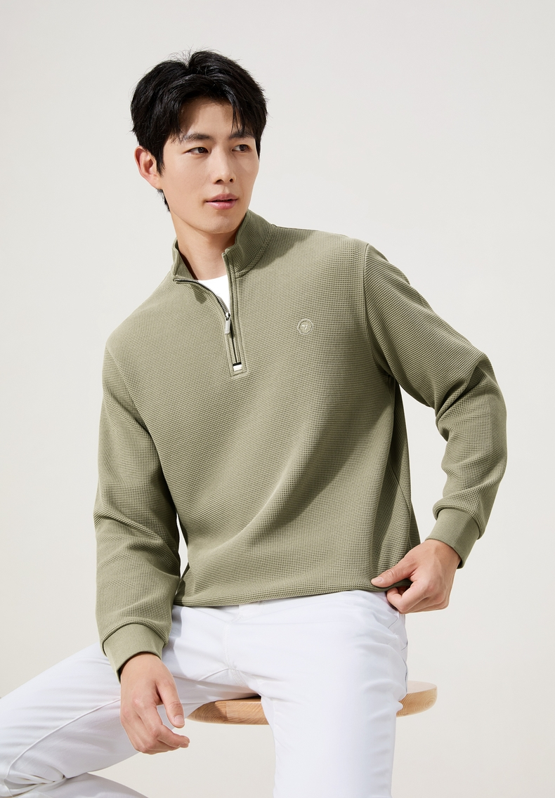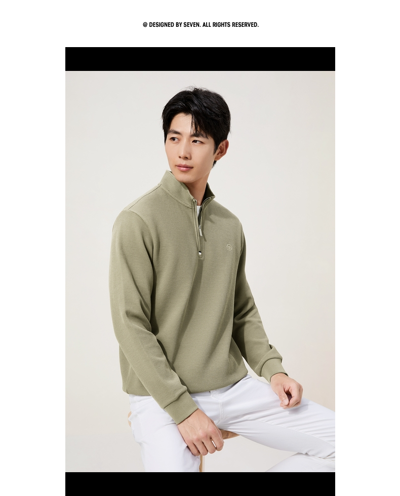 【华夫格/新疆棉/抗静电】柒牌男装立领卫新疆棉弹力肌理套头衫129W70440