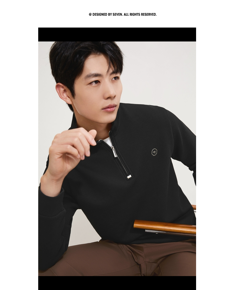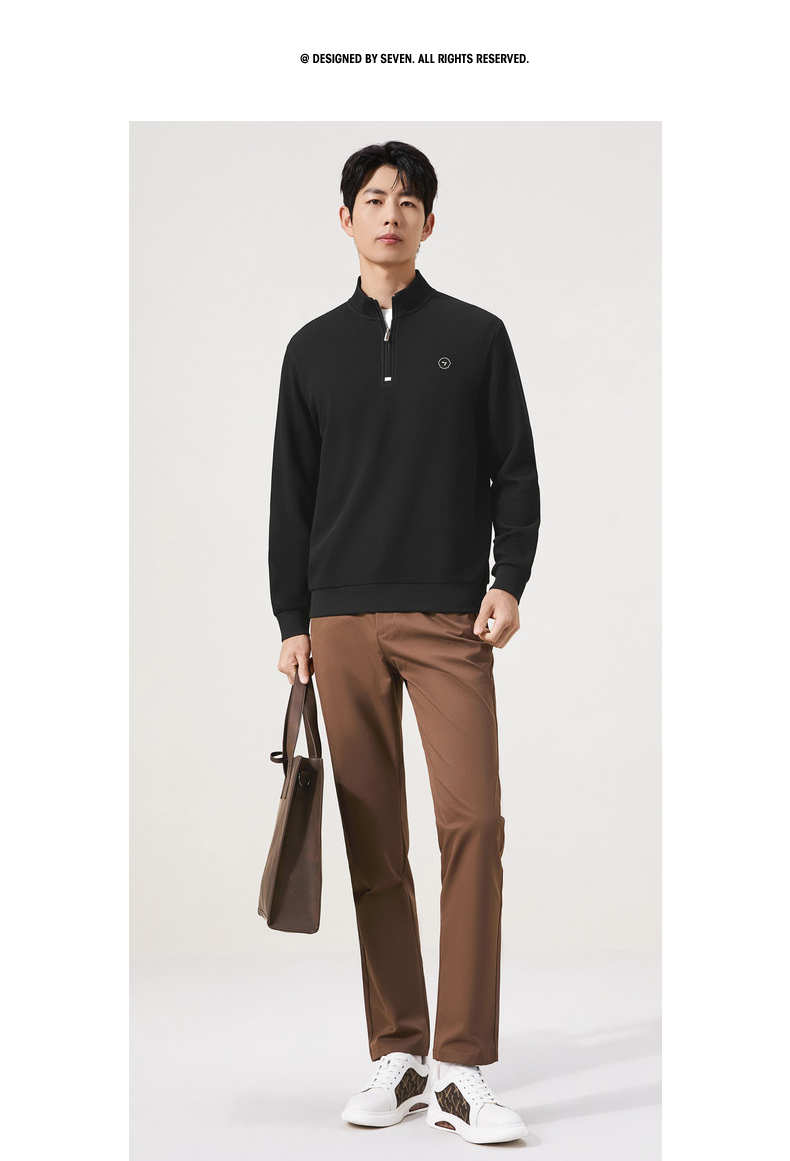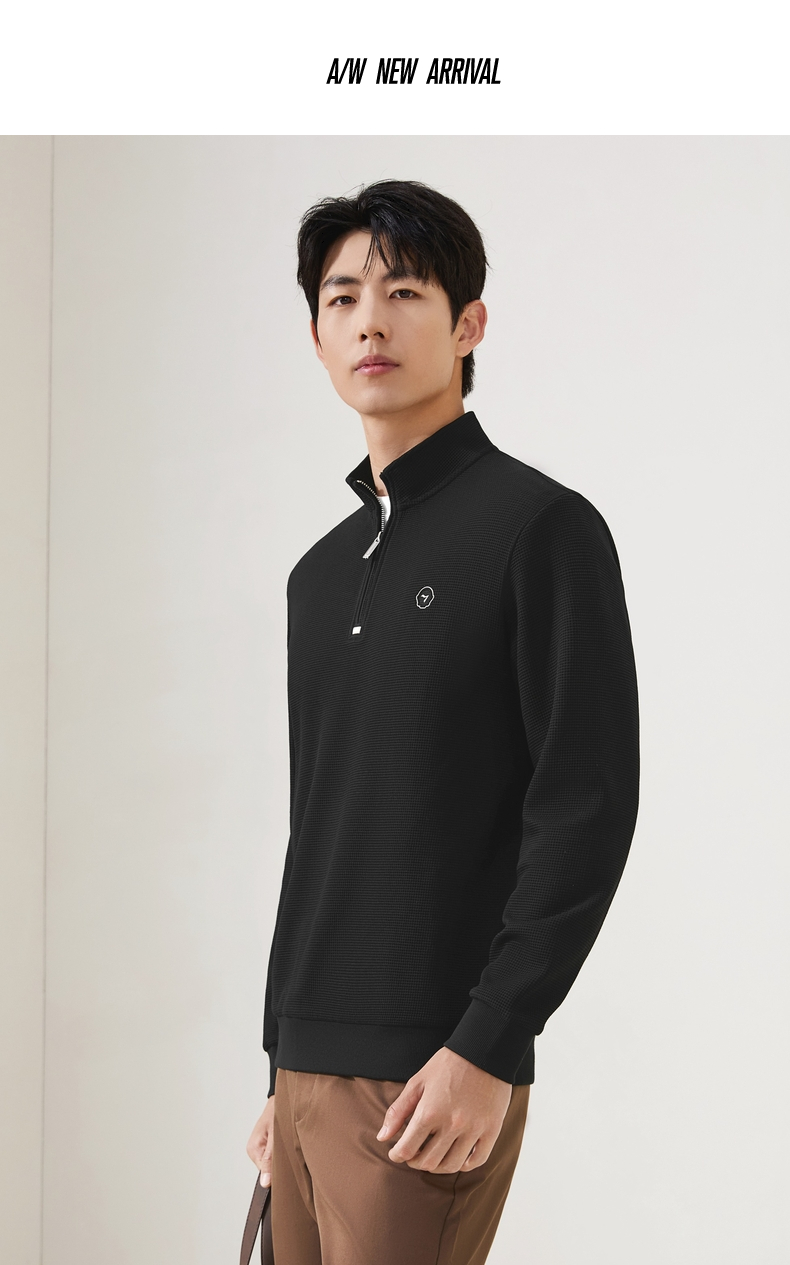 【华夫格/新疆棉/抗静电】柒牌男装立领卫新疆棉弹力肌理套头衫129W70440
