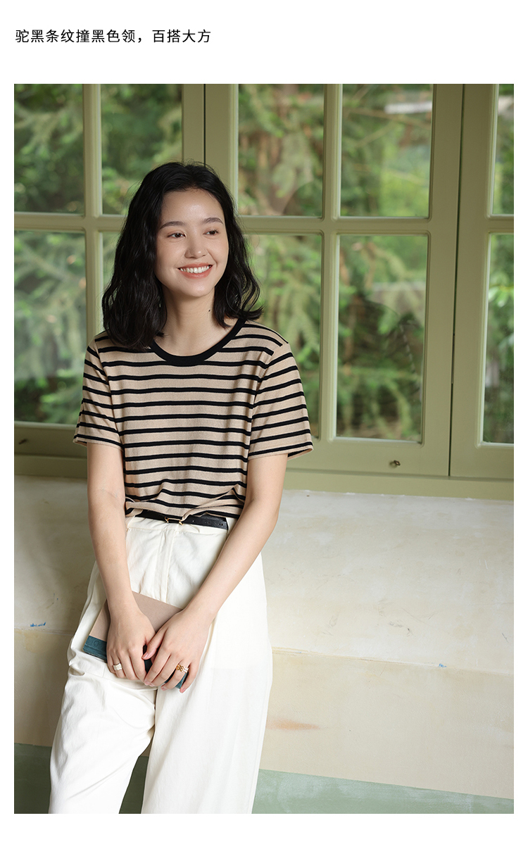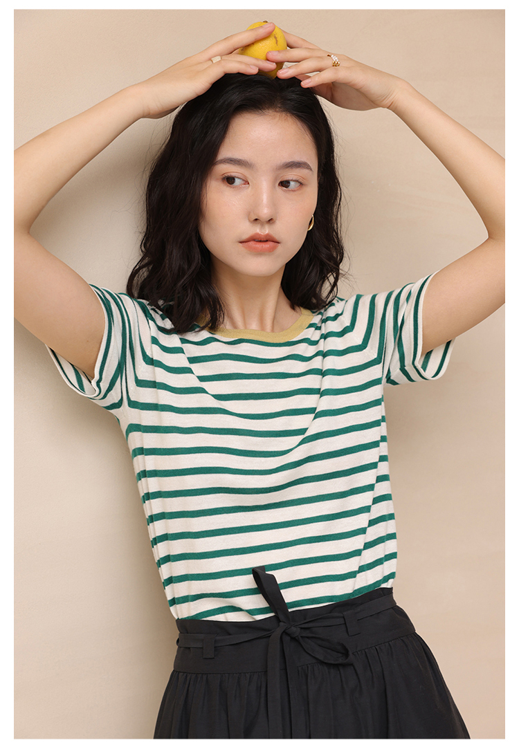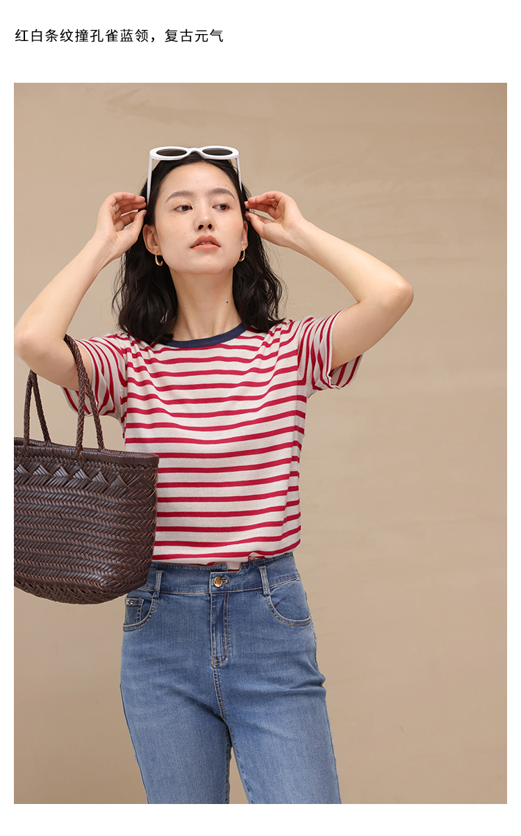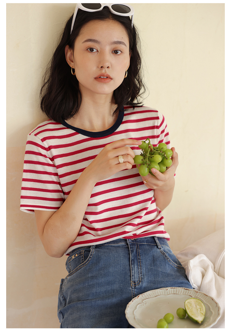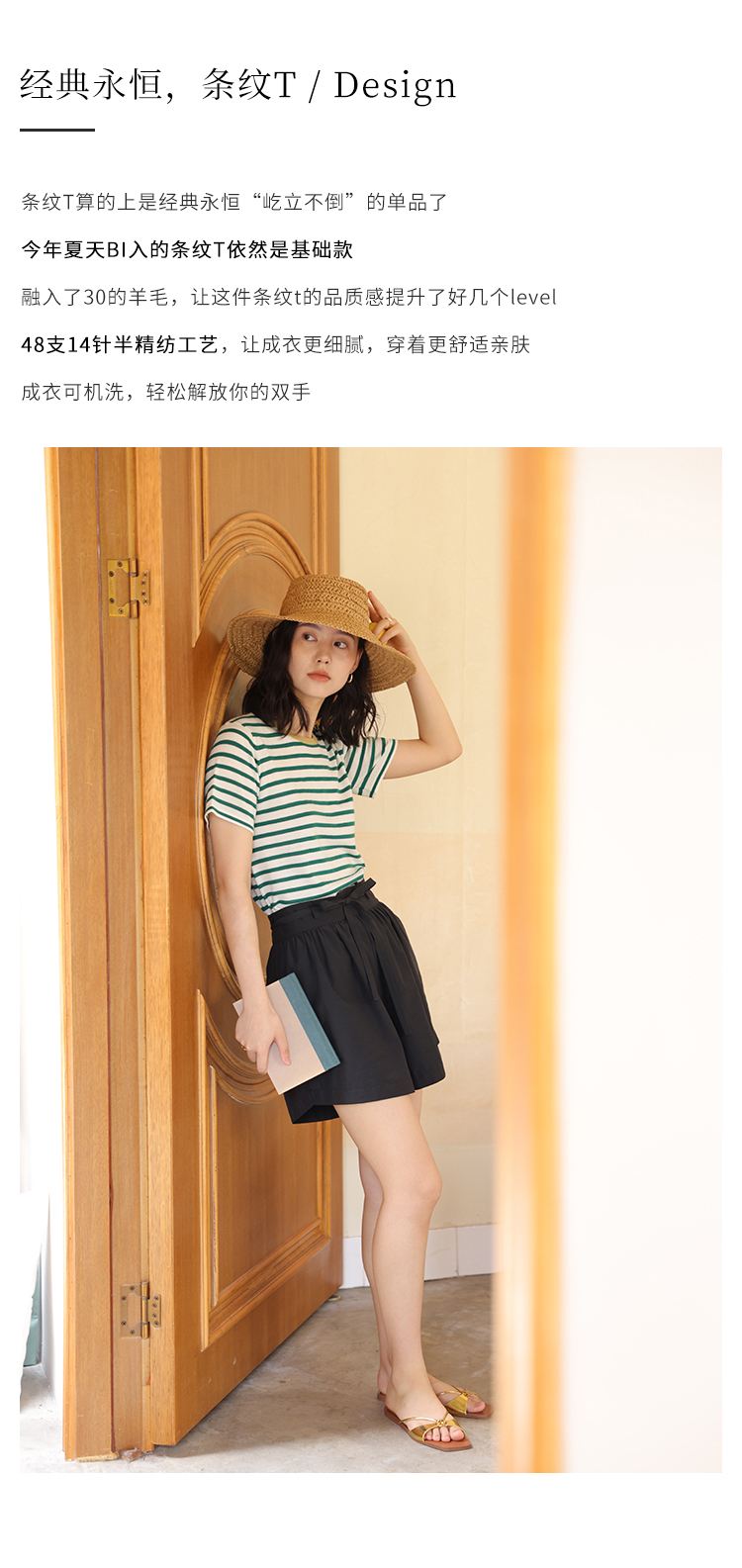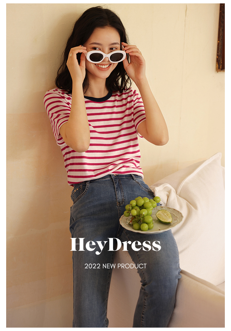 HeyDress法式条纹短袖t恤女夏季新款圆领海魂衫百搭针织半袖上衣