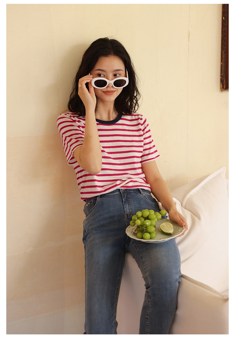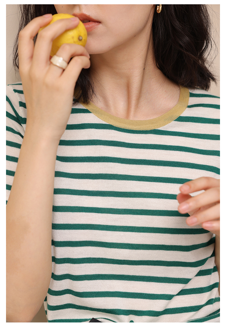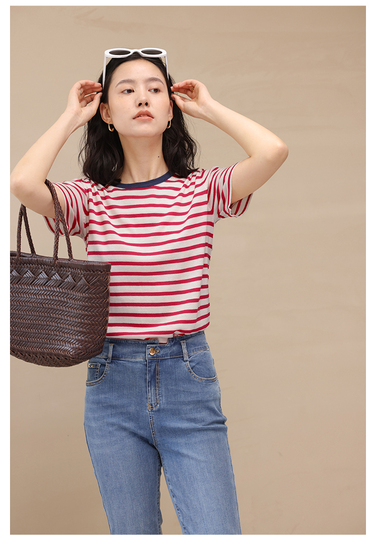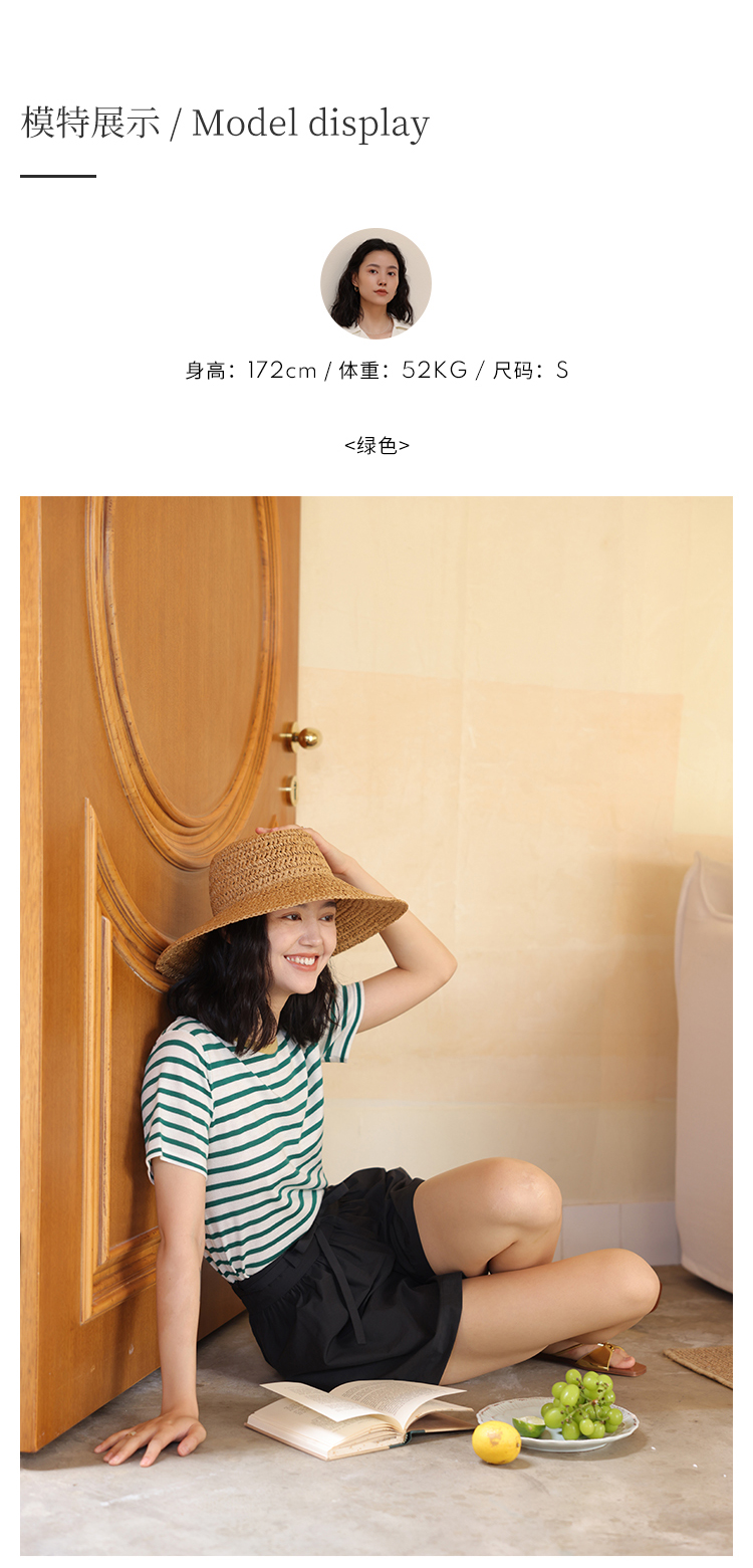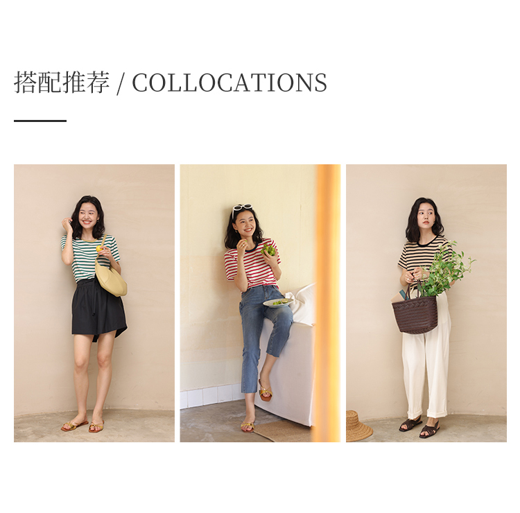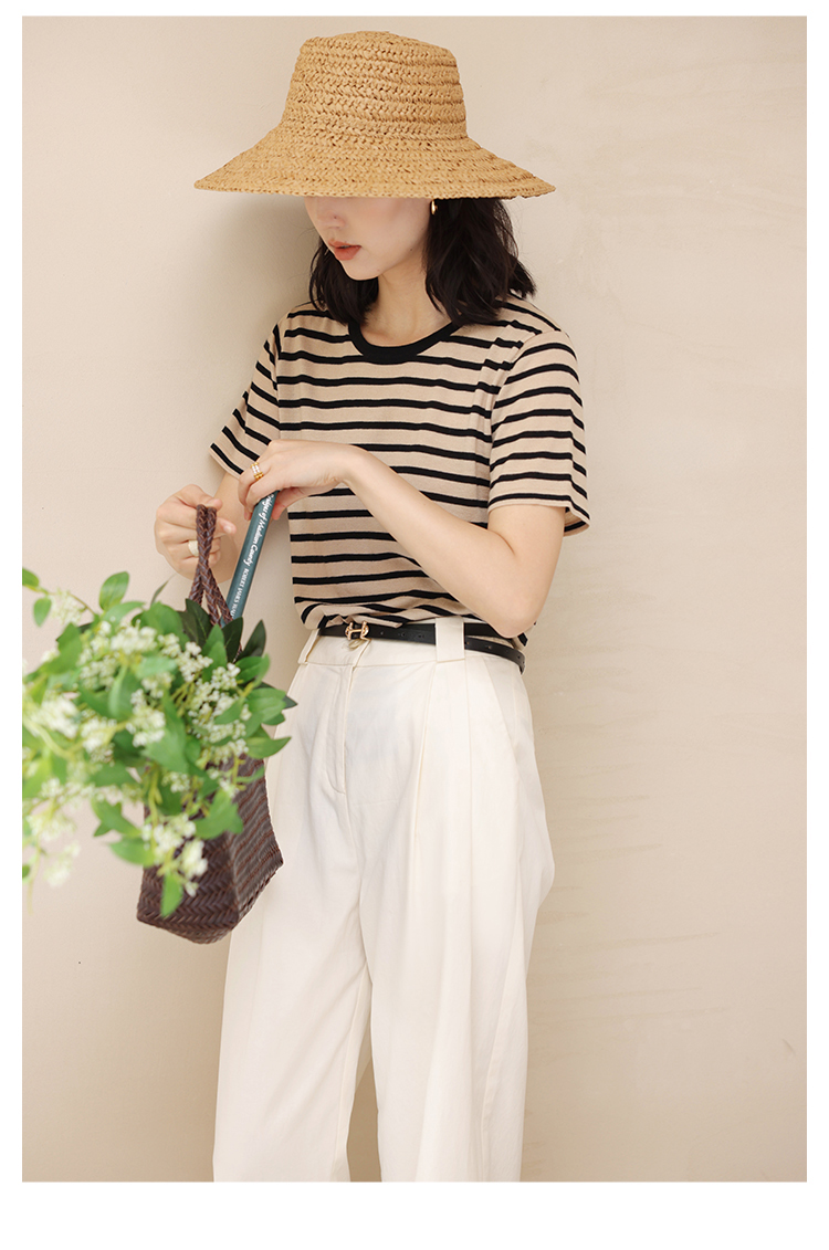 HeyDress法式条纹短袖t恤女夏季新款圆领海魂衫百搭针织半袖上衣