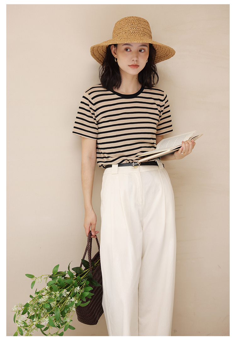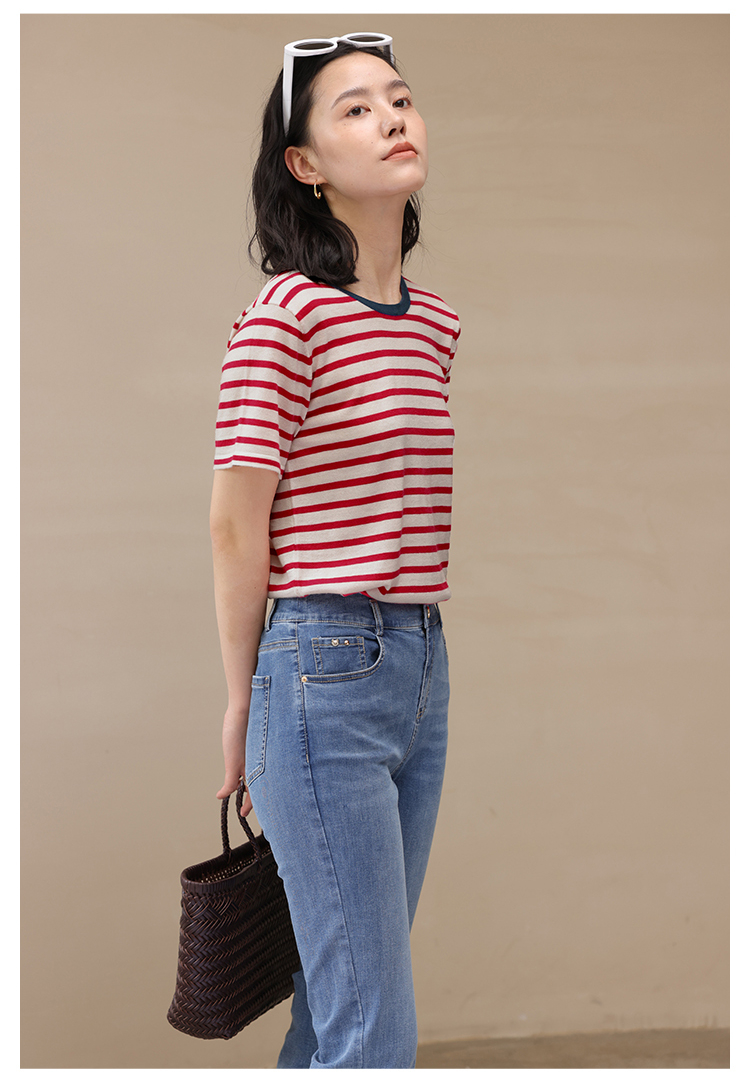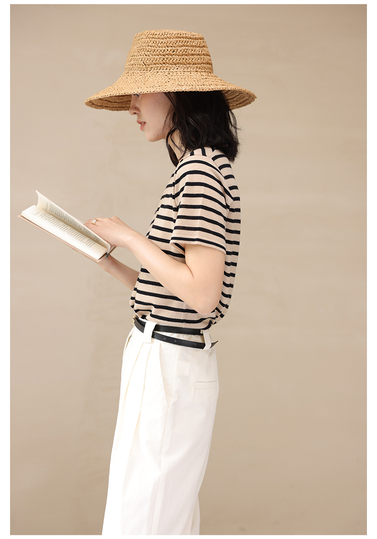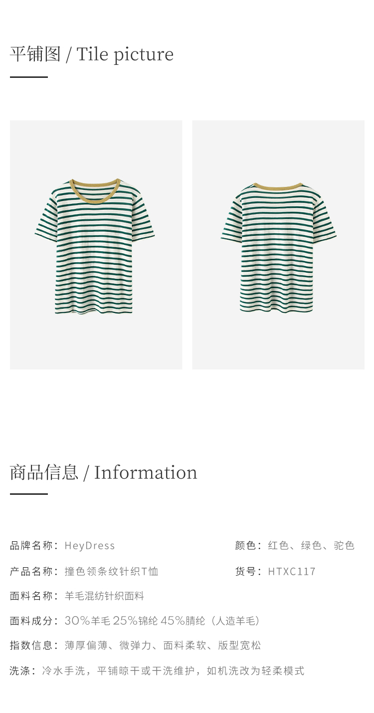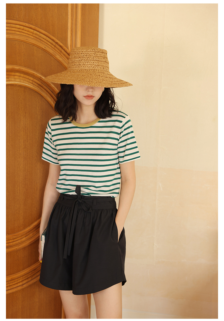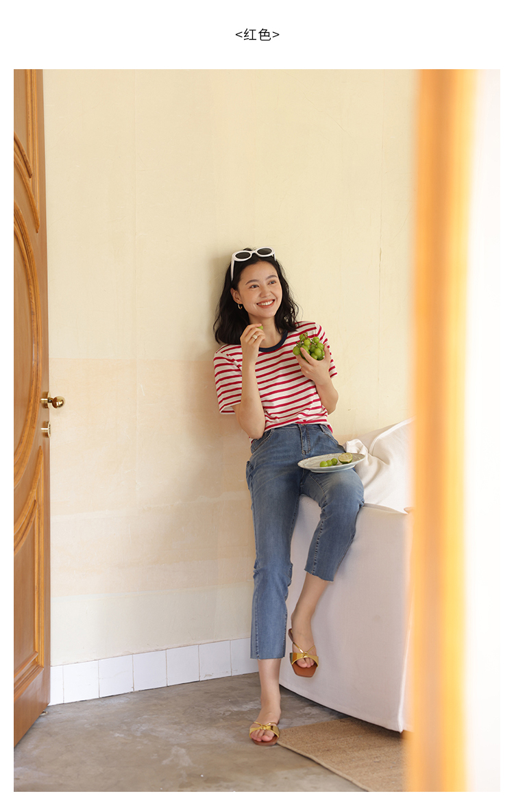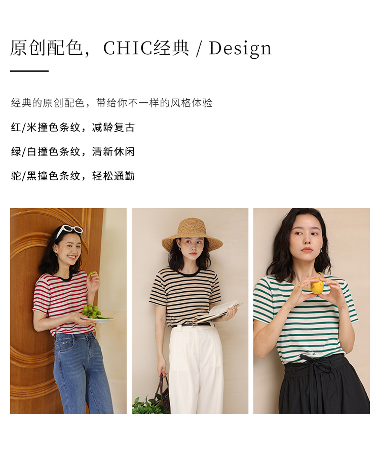 HeyDress法式条纹短袖t恤女夏季新款圆领海魂衫百搭针织半袖上衣