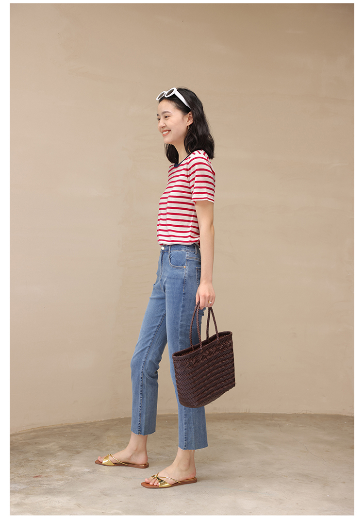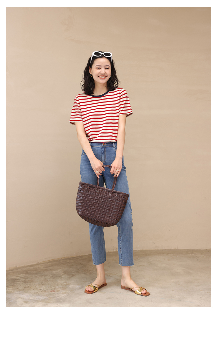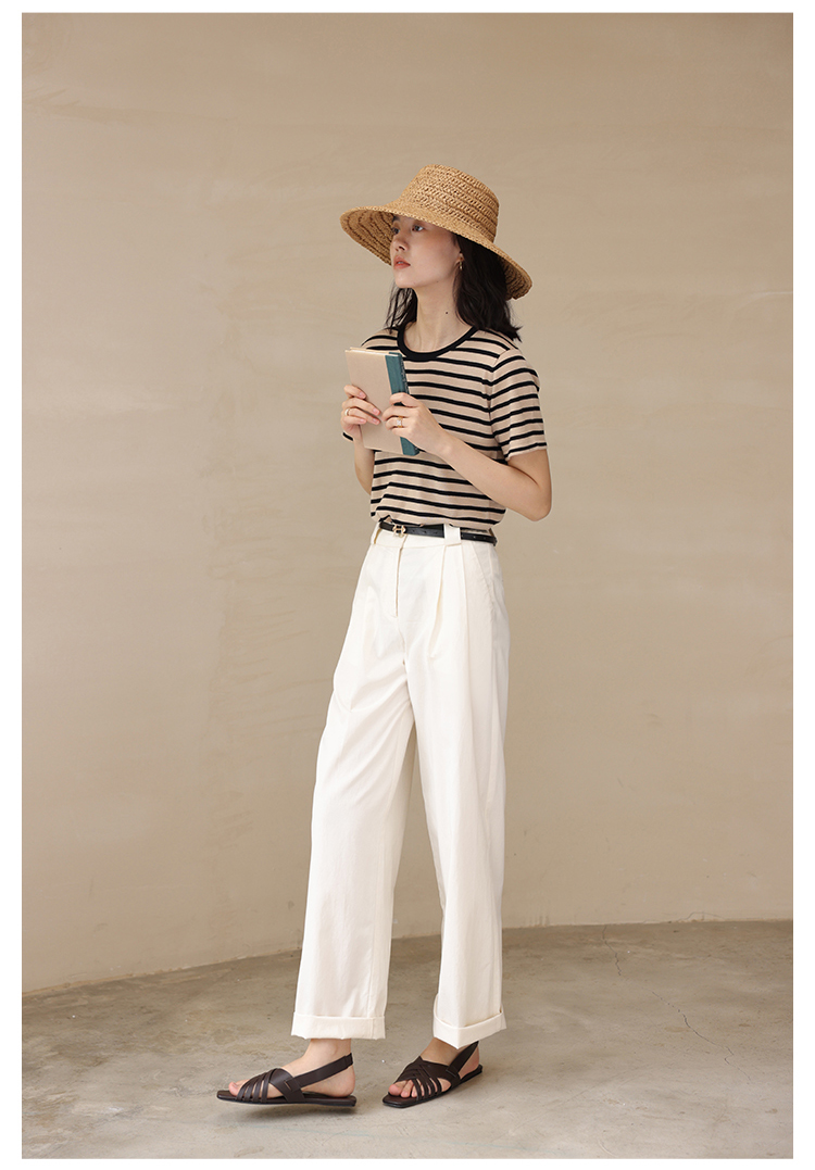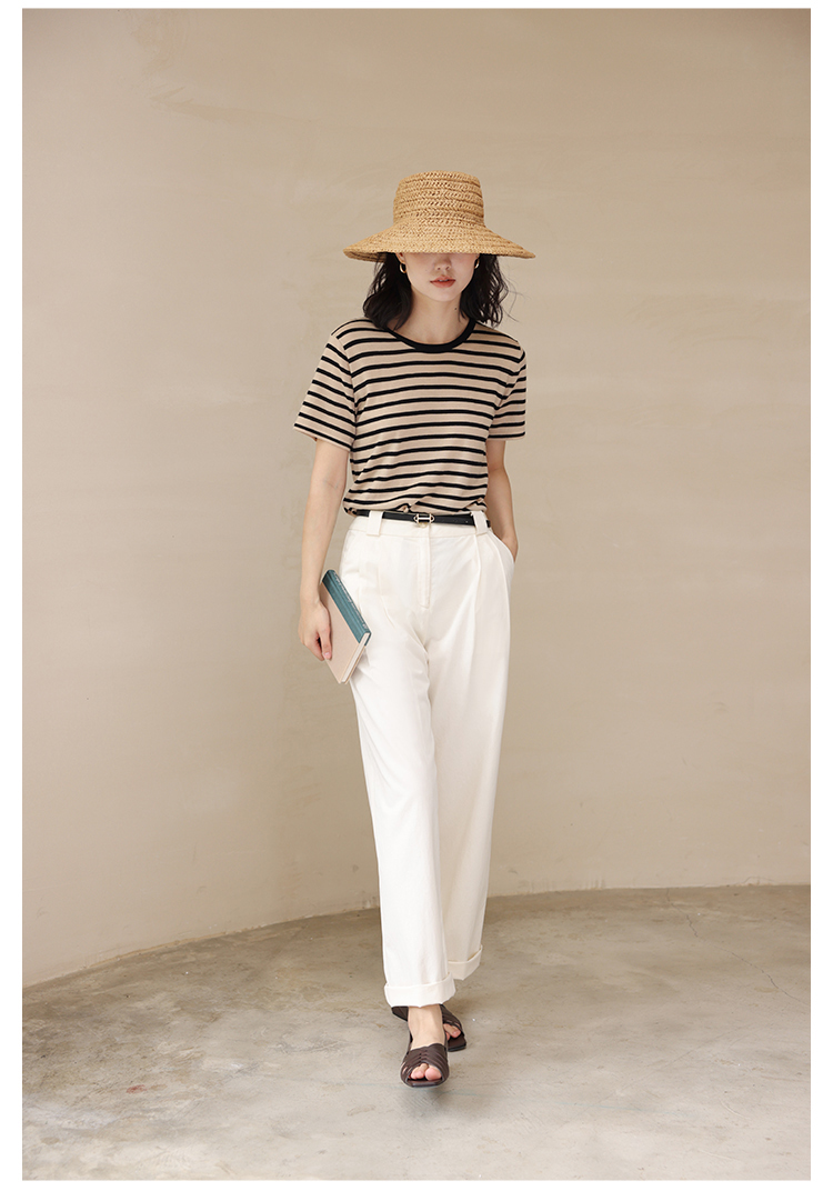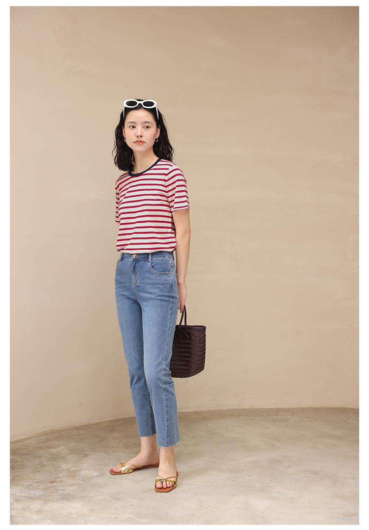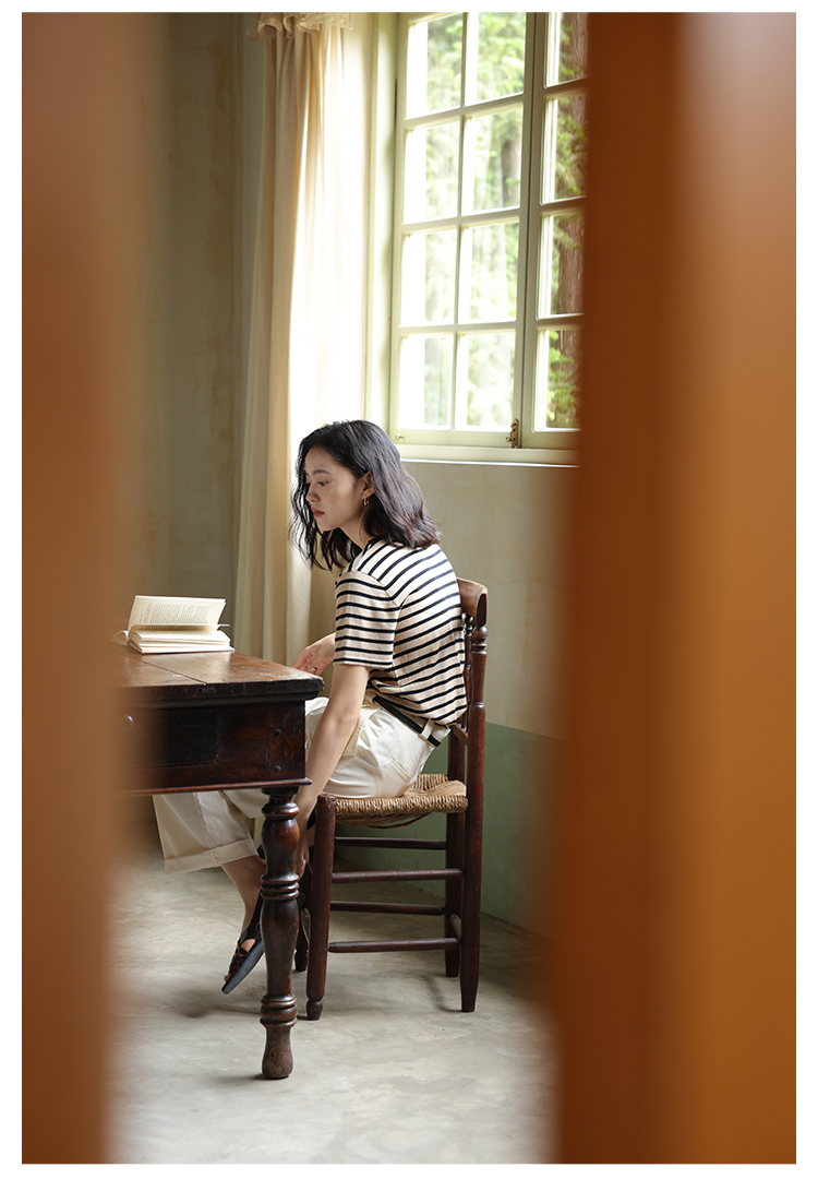 HeyDress法式条纹短袖t恤女夏季新款圆领海魂衫百搭针织半袖上衣