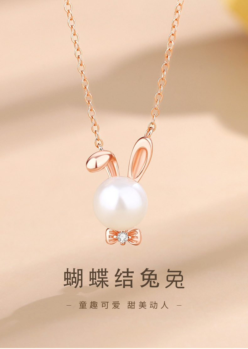 【授权商品】BOMURNNY/宝慕尼蝴蝶结珍珠兔子项链