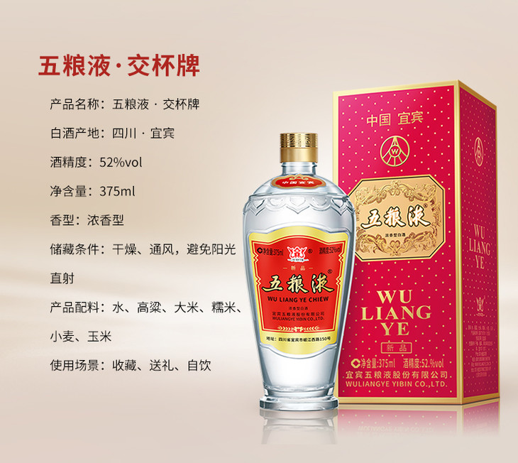 52度五粮液 小五粮/长城系列 375ml 单瓶