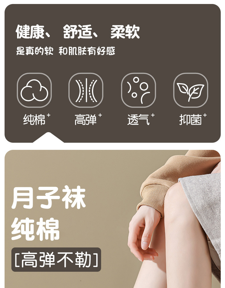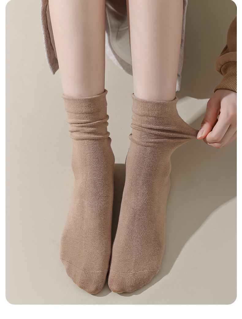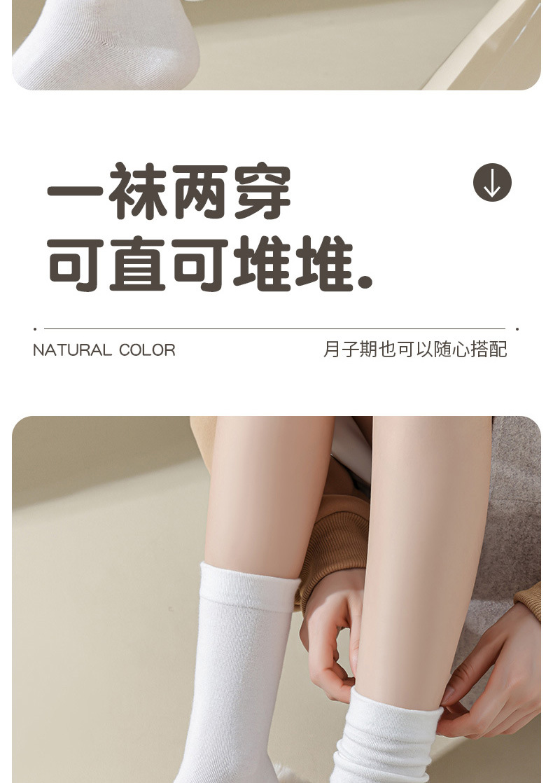 27元任选3双【纯棉堆堆袜】 秋冬季纯色中筒袜 松口月子袜 纯色长筒袜