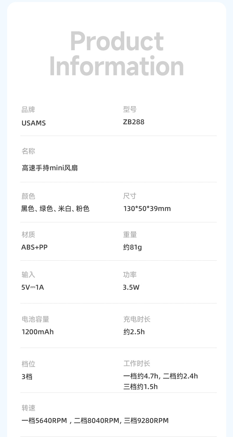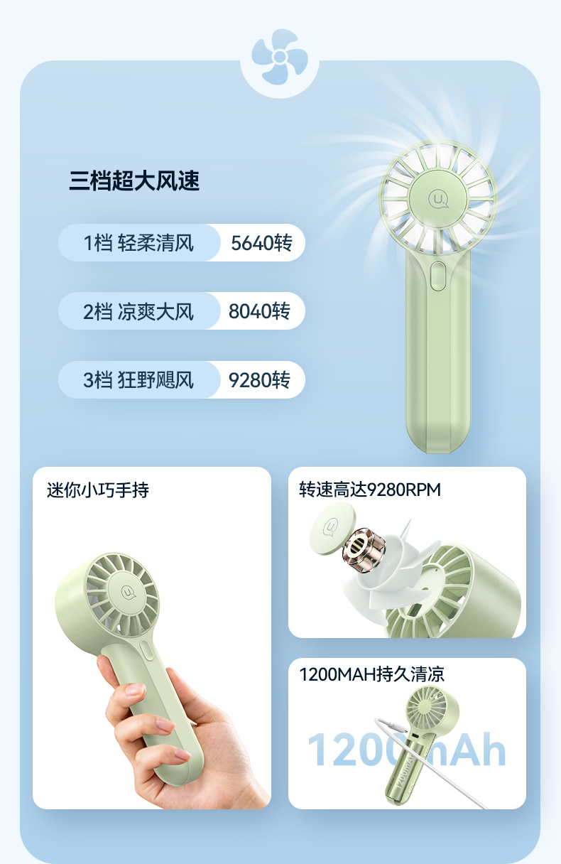 高速手持mini风扇 多色可选ZB288 优胜仕
