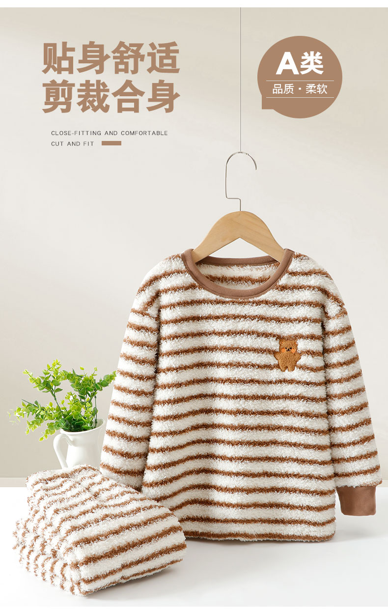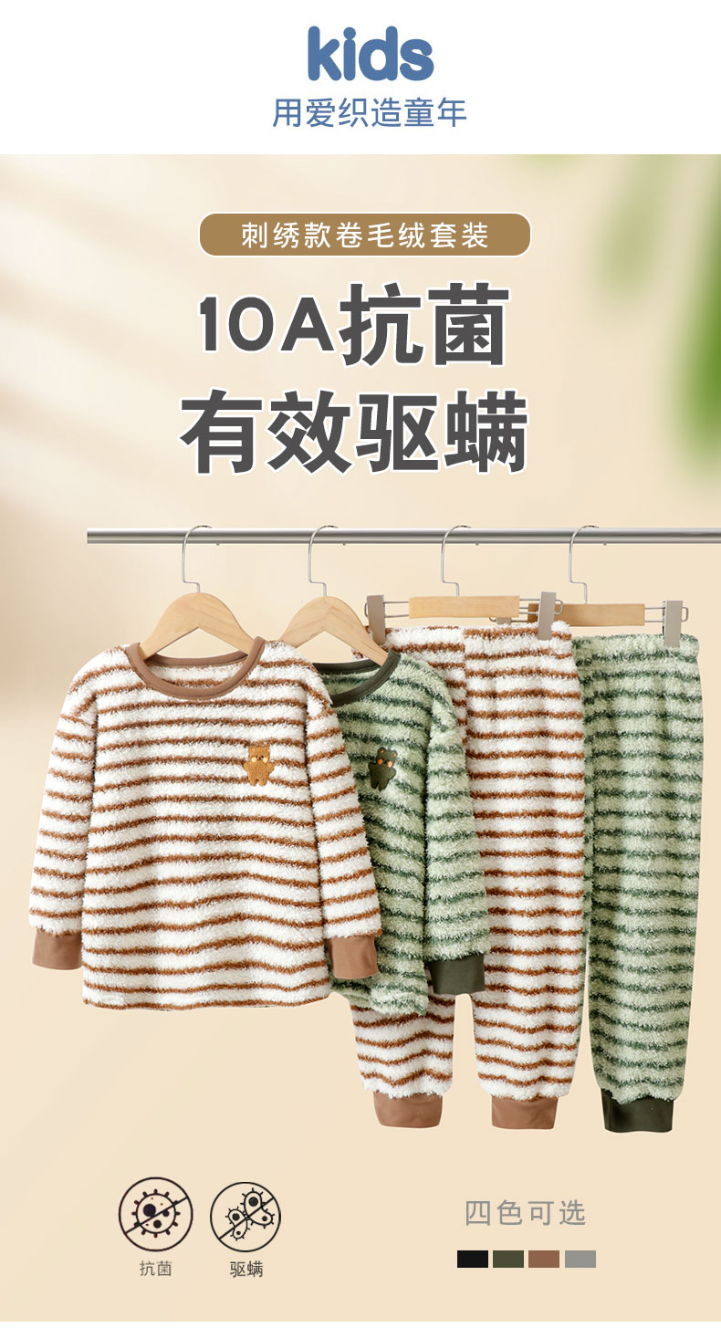 110-170秋冬保暖家居服刺绣款卷毛绒半边绒套装