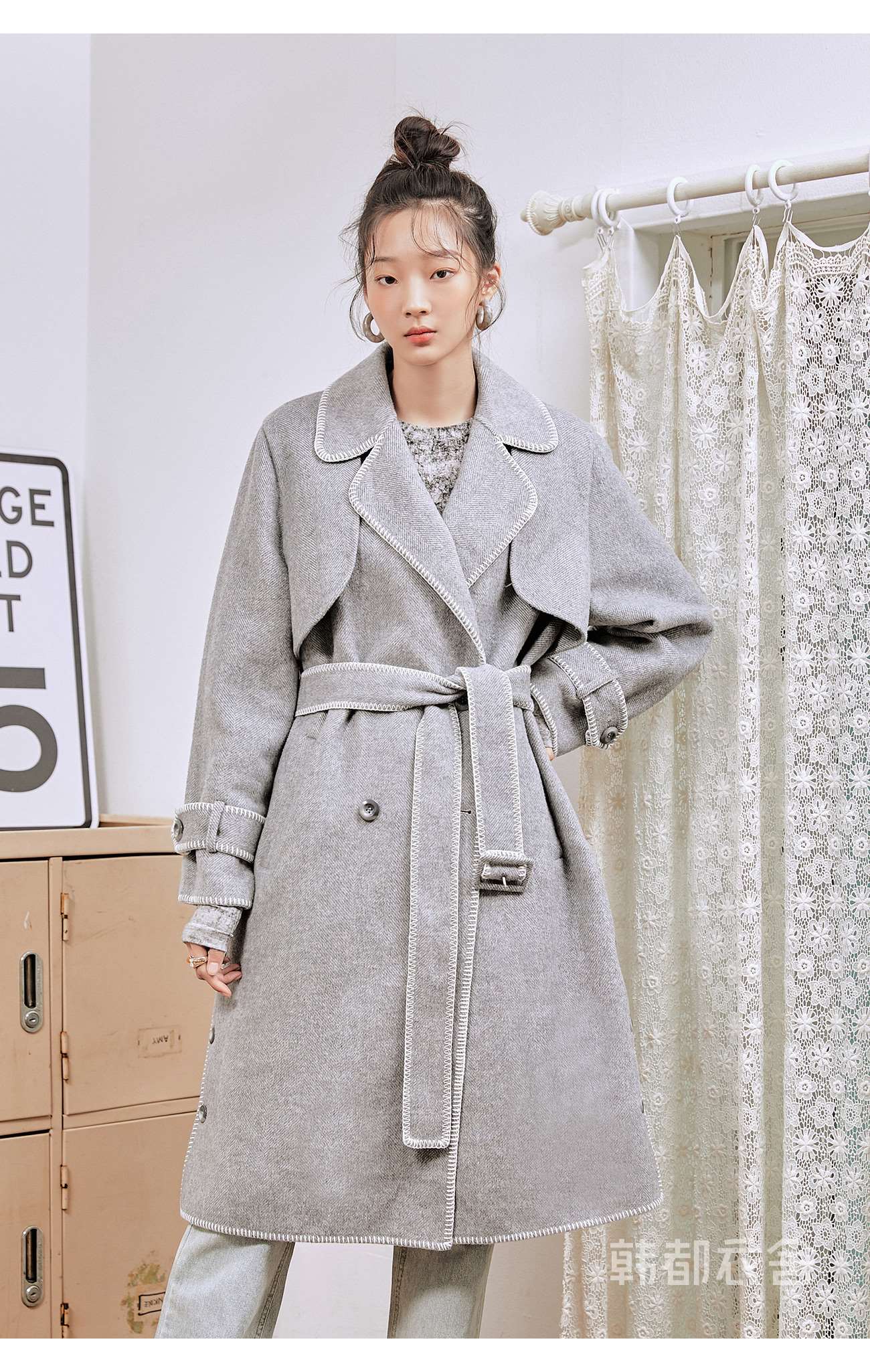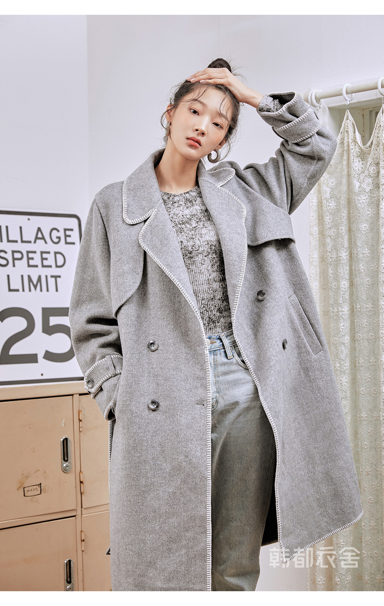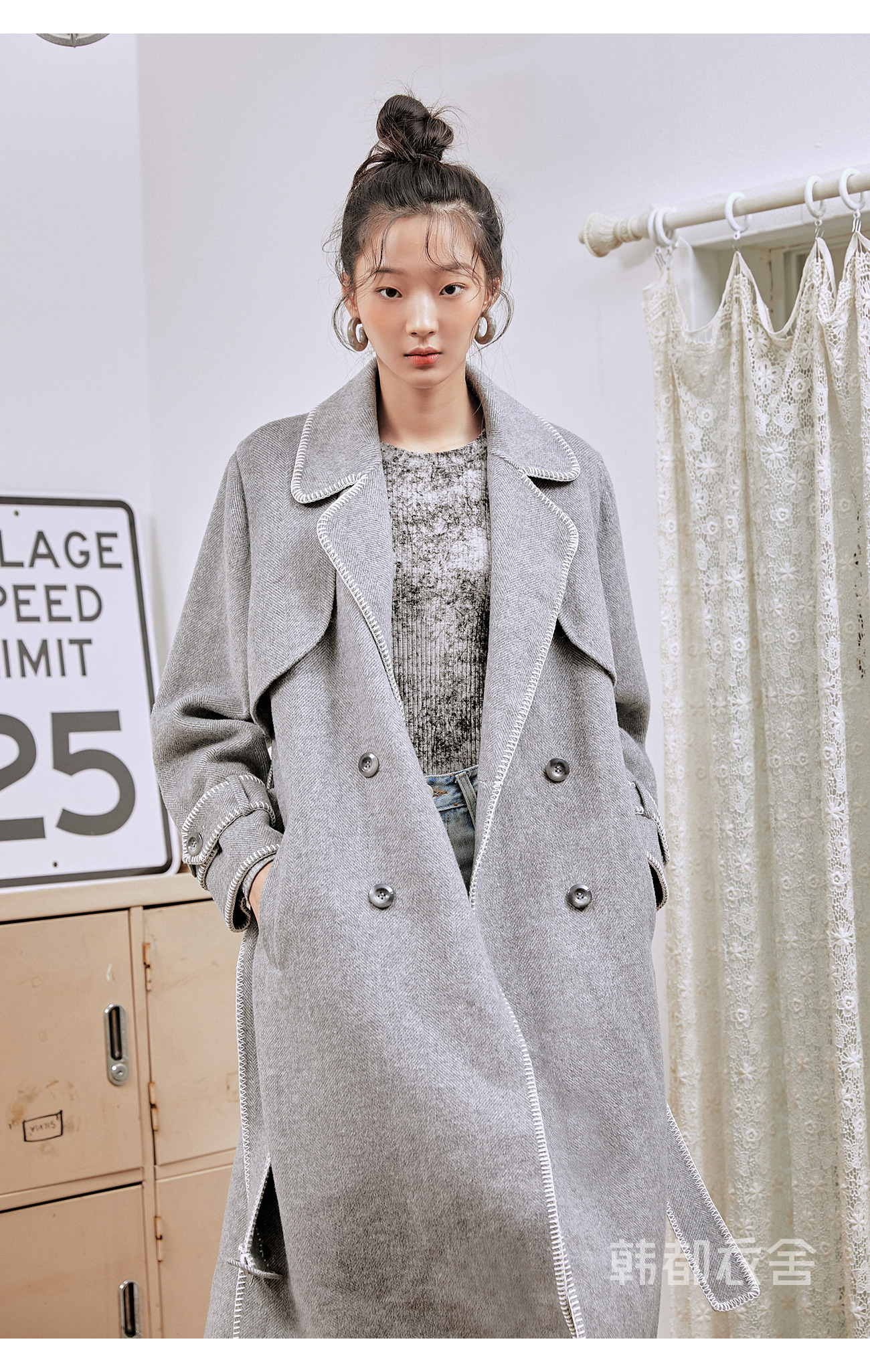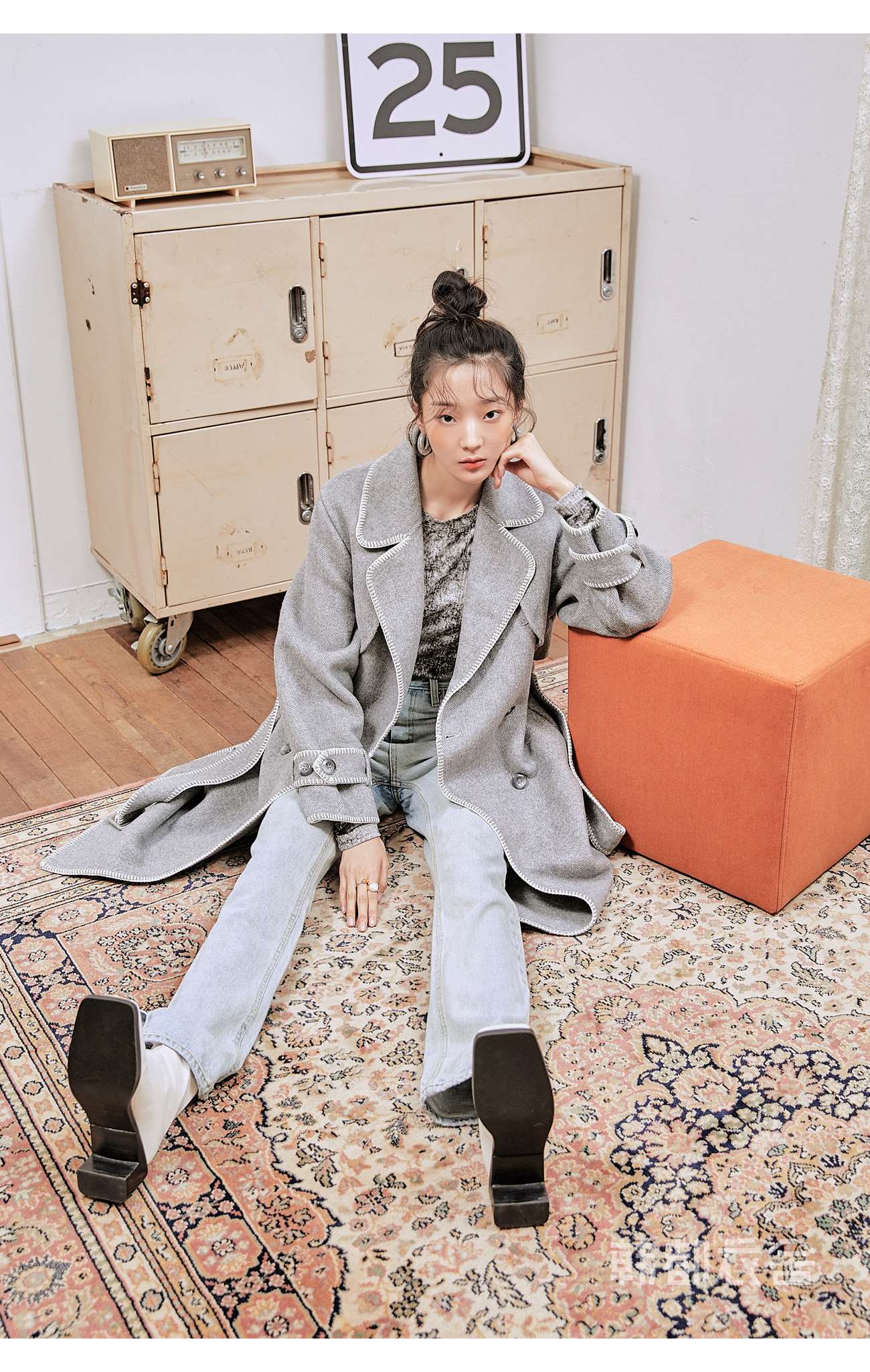 韩都衣舍冬季新款小个子宽松韩版中长款毛呢外套女OM81733耒