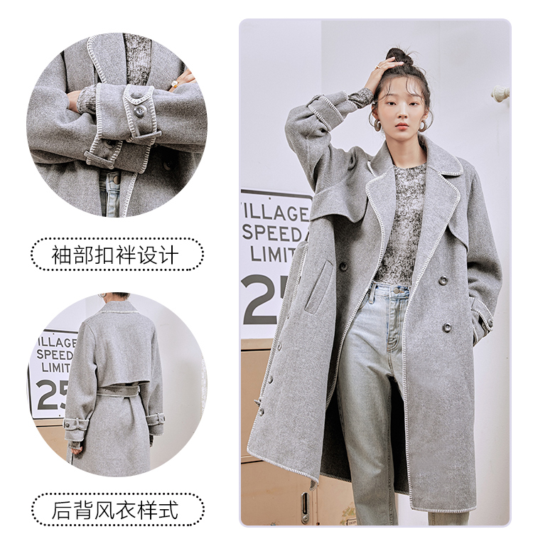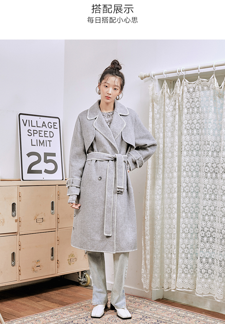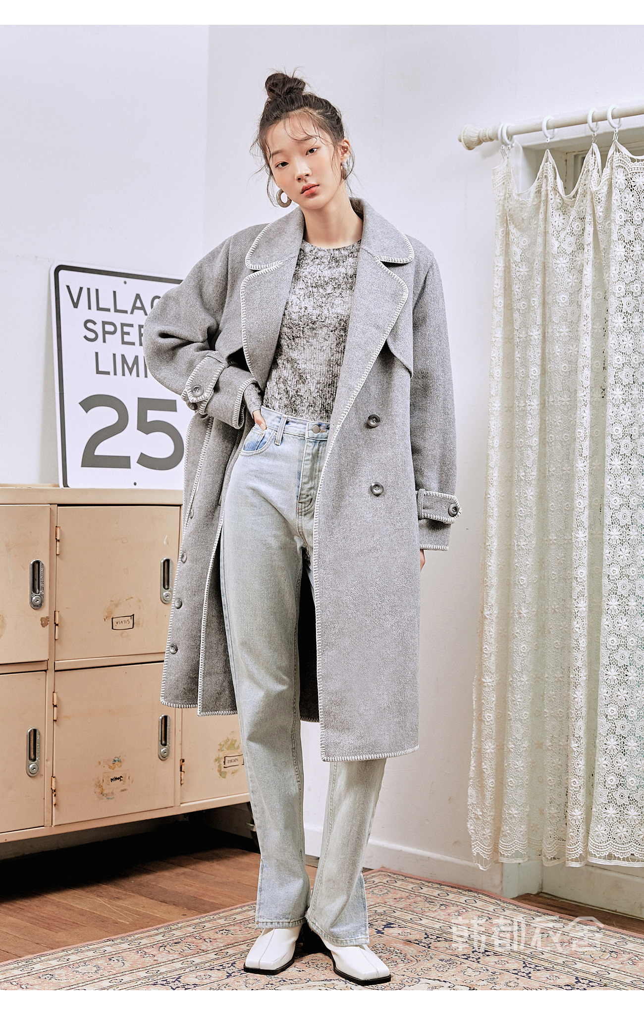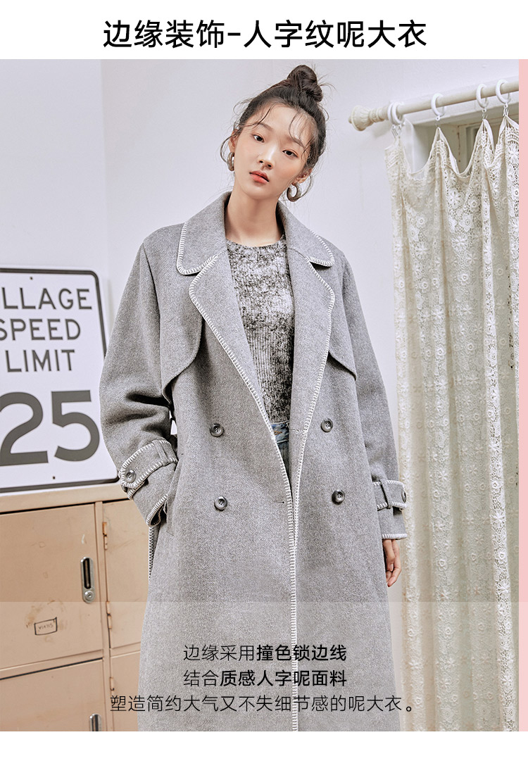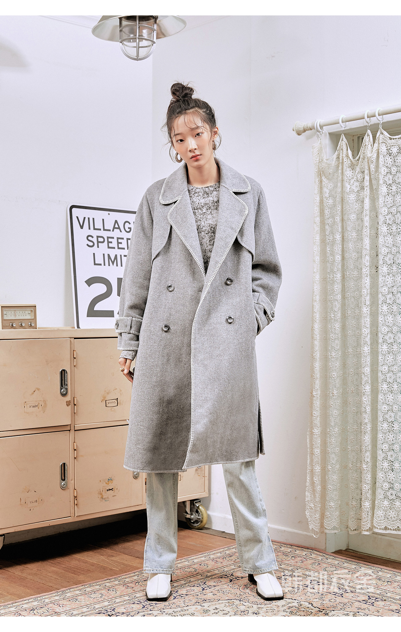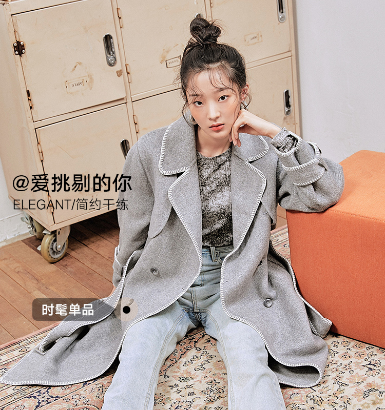 韩都衣舍冬季新款小个子宽松韩版中长款毛呢外套女OM81733耒