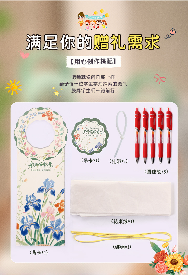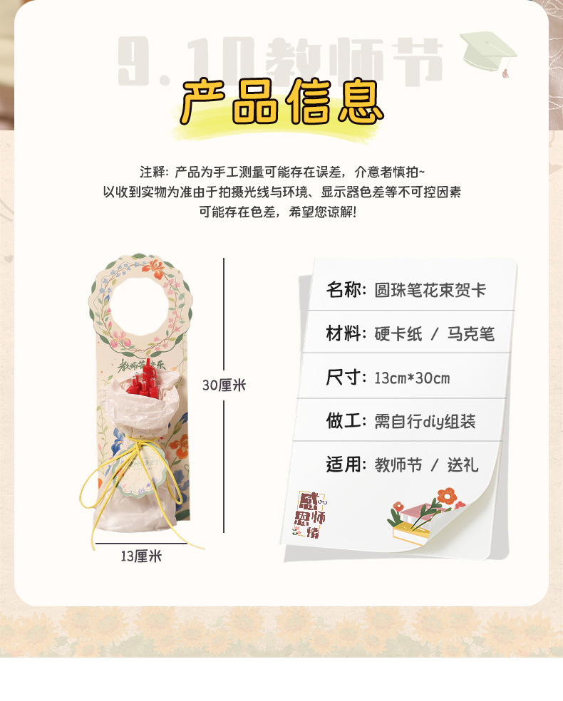 心选丨「创意教师节礼物」创意卡片教师节红笔花束成品儿童送老师教师节礼物材料包diy手工