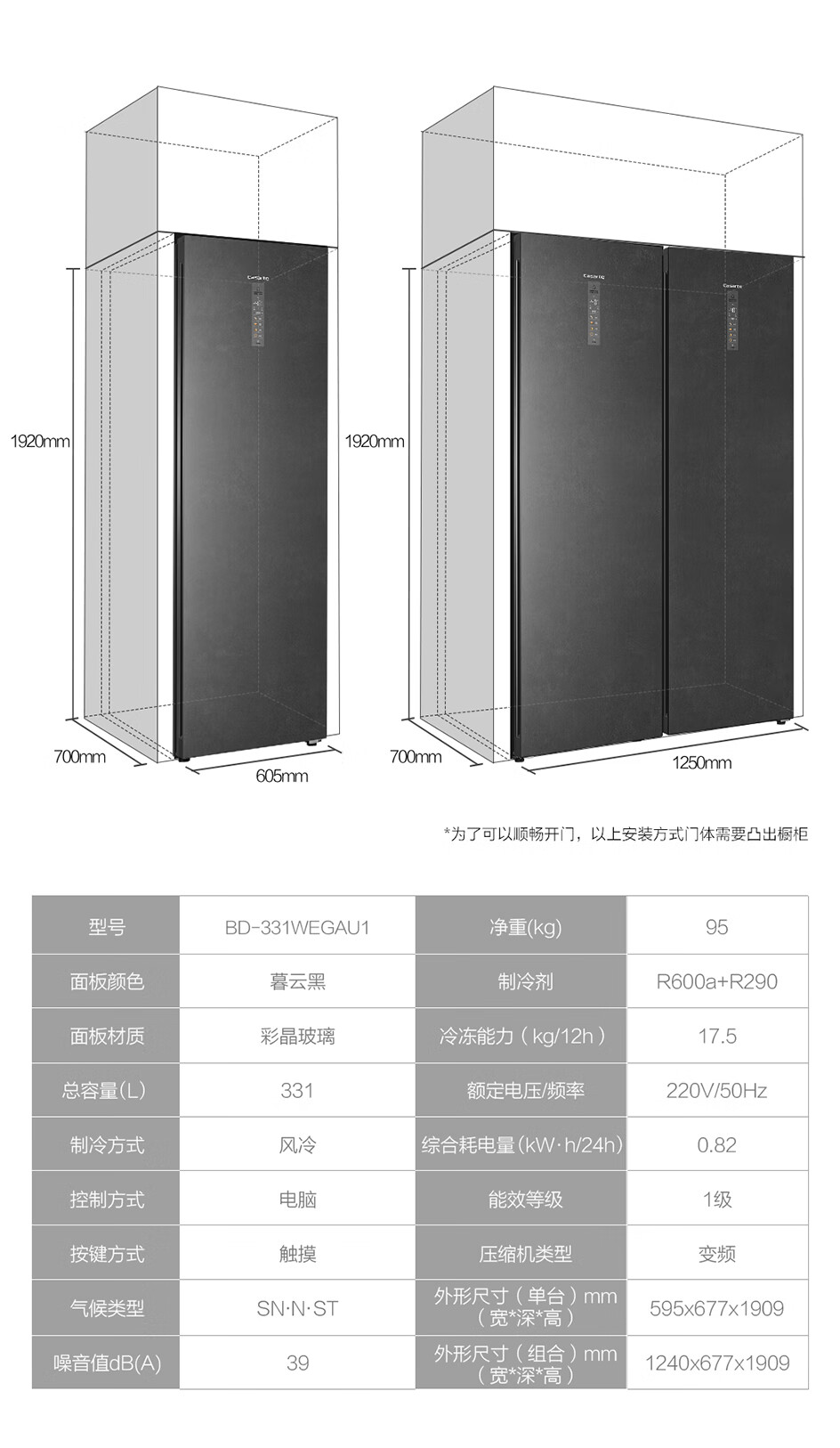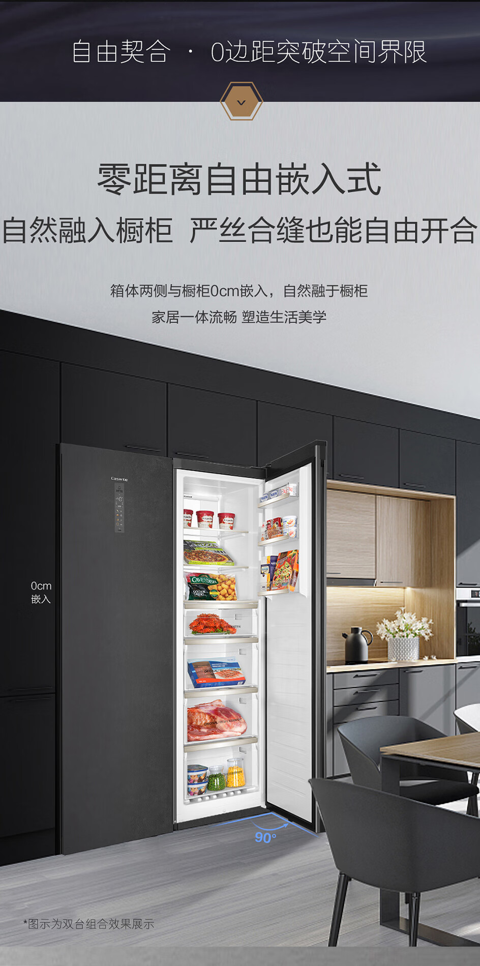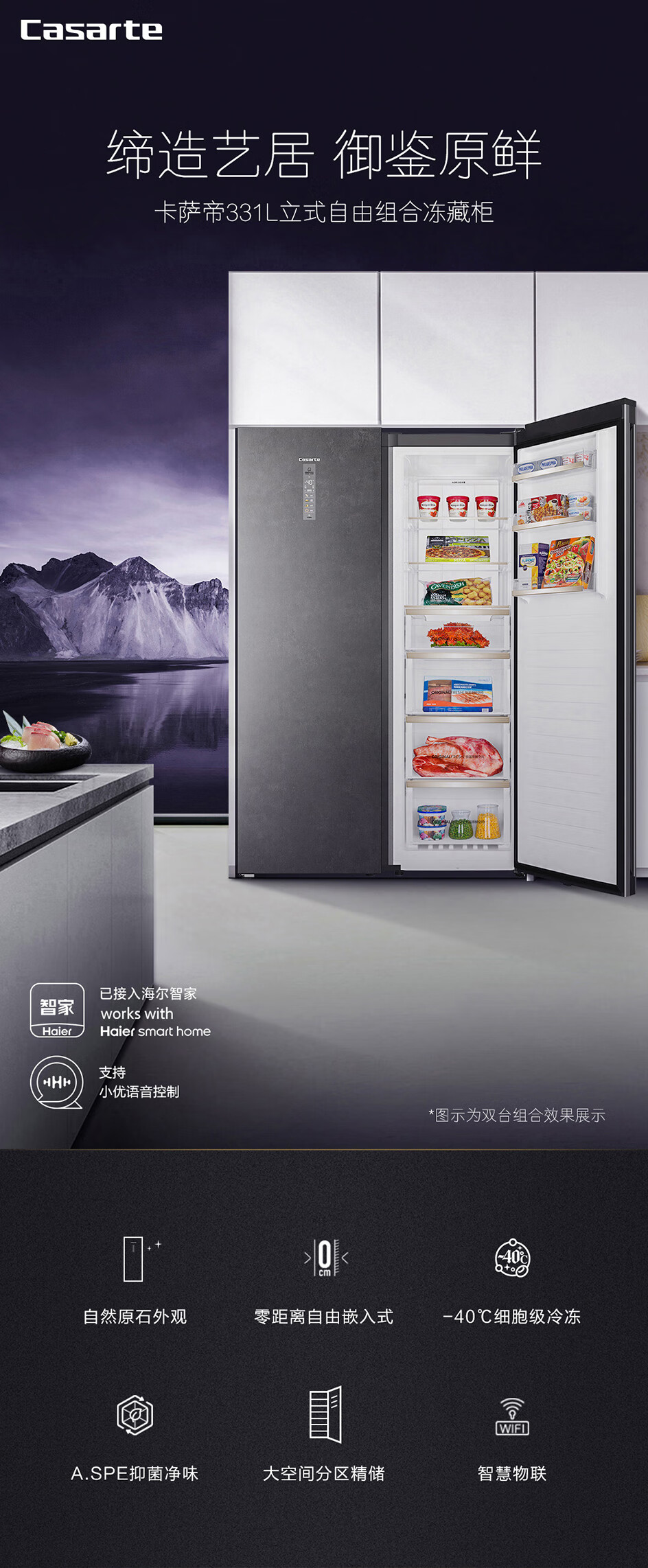 卡萨帝(Casarte)原石系列331升零距离嵌入变频风冷家用立式冰柜 -40℃冷柜冰箱冷藏冷冻柜BD-331WEGAU1