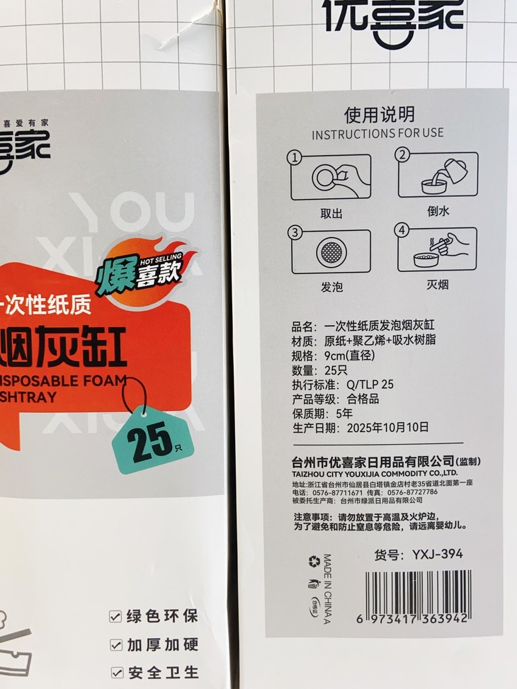 烟民家属必看! 这款【优喜家 一次性烟灰缸】超绝 不用拆灭烟沙,加水秒变固体就能用 插烟即灭,不再闻焦味 超强吸附,烟灰不乱飞,比普通烟灰缸好打扫太多。 用完直扔垃圾桶,超方便 家里、办公室、会客厅都适配 不过提醒一下,虽然它很好用,但是吸烟有害健康哦~