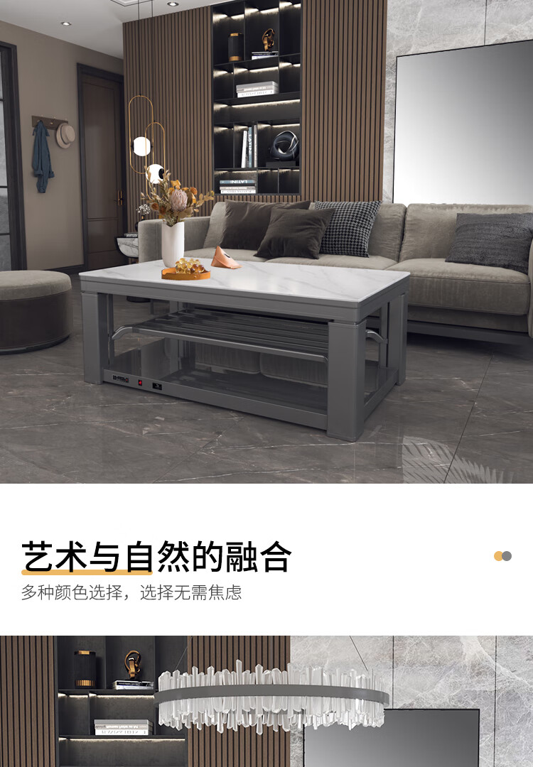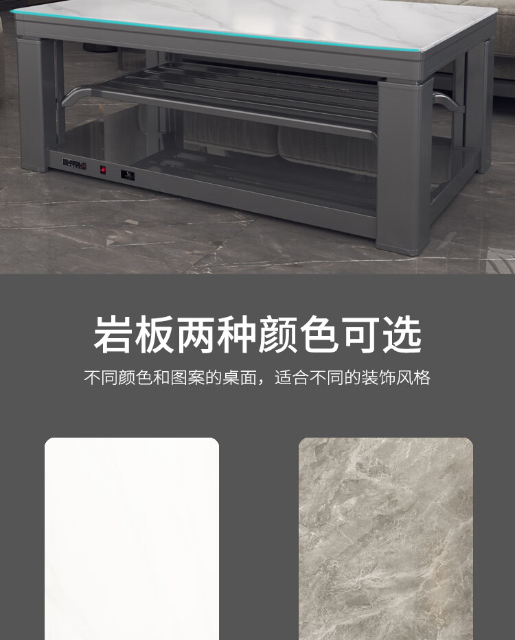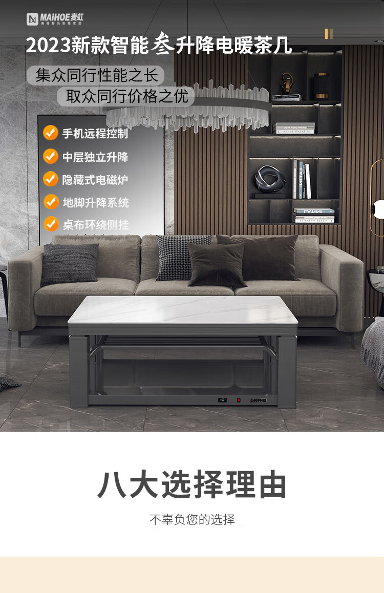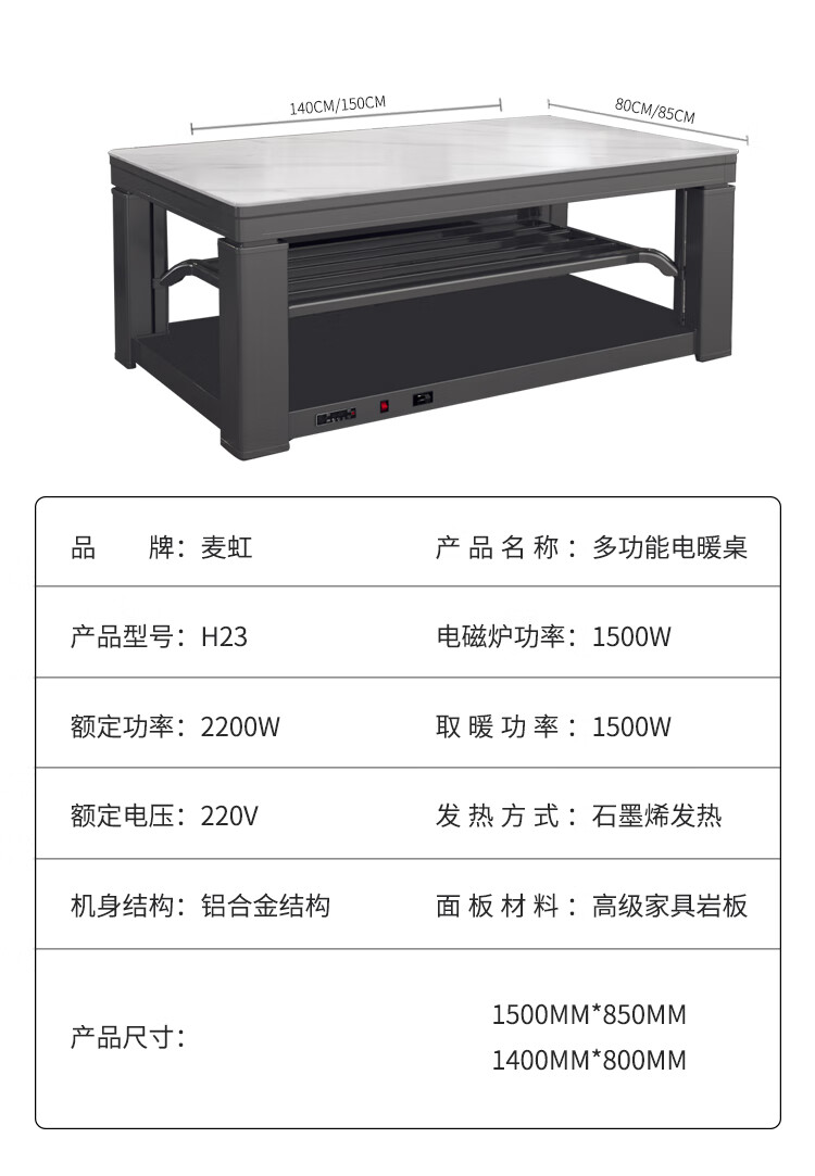 麦虹H23智能语音控制升降带电磁炉取暖桌电暖茶几1.5m白岩板/桌布侧挂/有地脚
