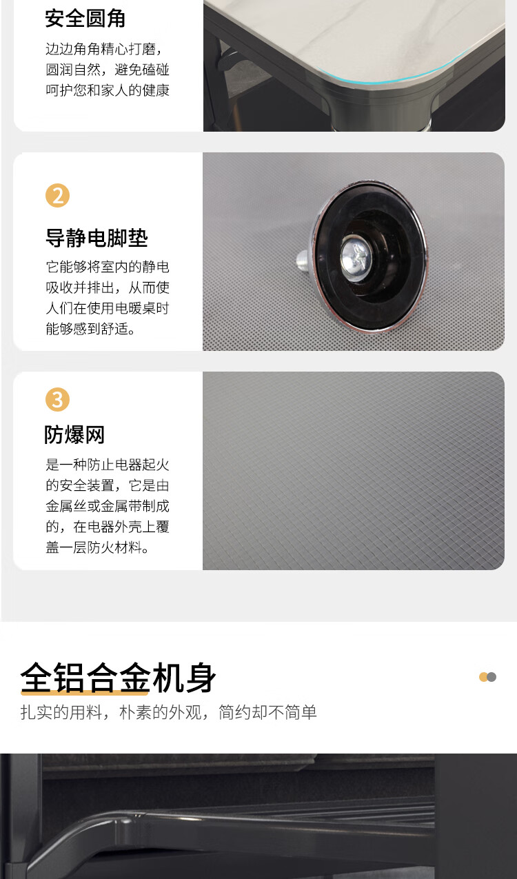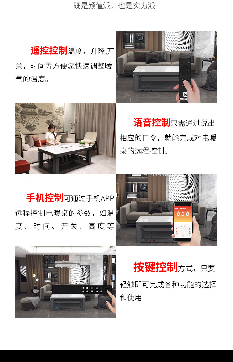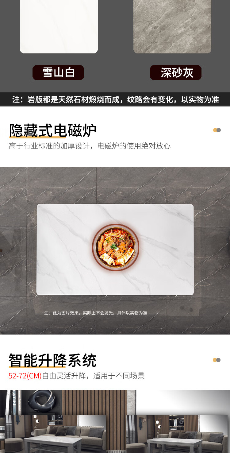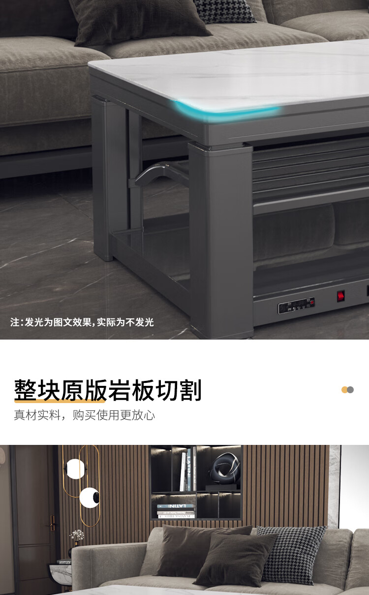 麦虹H23智能语音控制升降带电磁炉取暖桌电暖茶几1.5m白岩板/桌布侧挂/有地脚