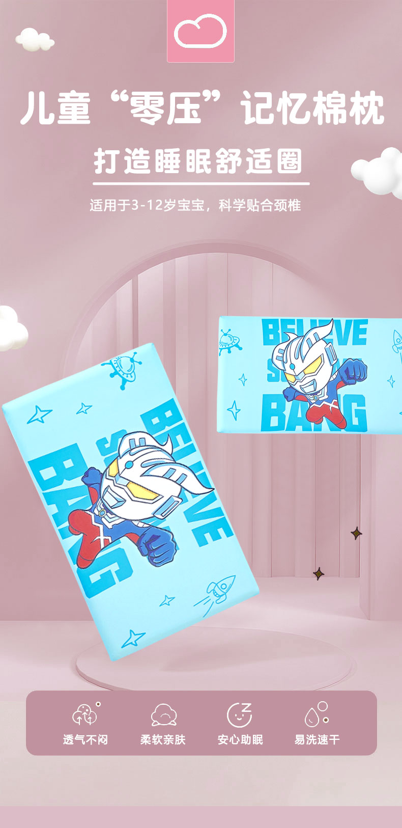 【品牌直发】加倍生活 小凉皮儿童护颈枕 30*50*5cm适合3-15岁
