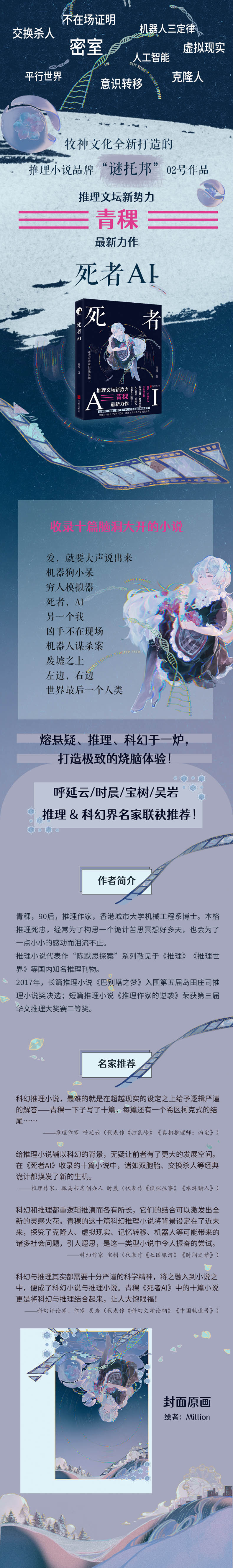科幻与推理其实都需要十分严谨的科学精神,将之融入到小说之中,便成了科幻小说与推理小说。青稞《死者AI》中的十篇小说更是将科幻与推理结合起来,让人大饱眼福!