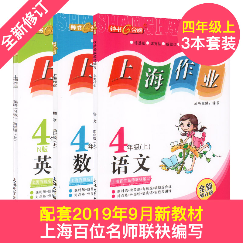 上海作业 部编版语文 数学 英语牛津N版 4年级上册/四年级第一学期 语数英3本套装 钟书金牌教辅上海小学四年级教材辅导书