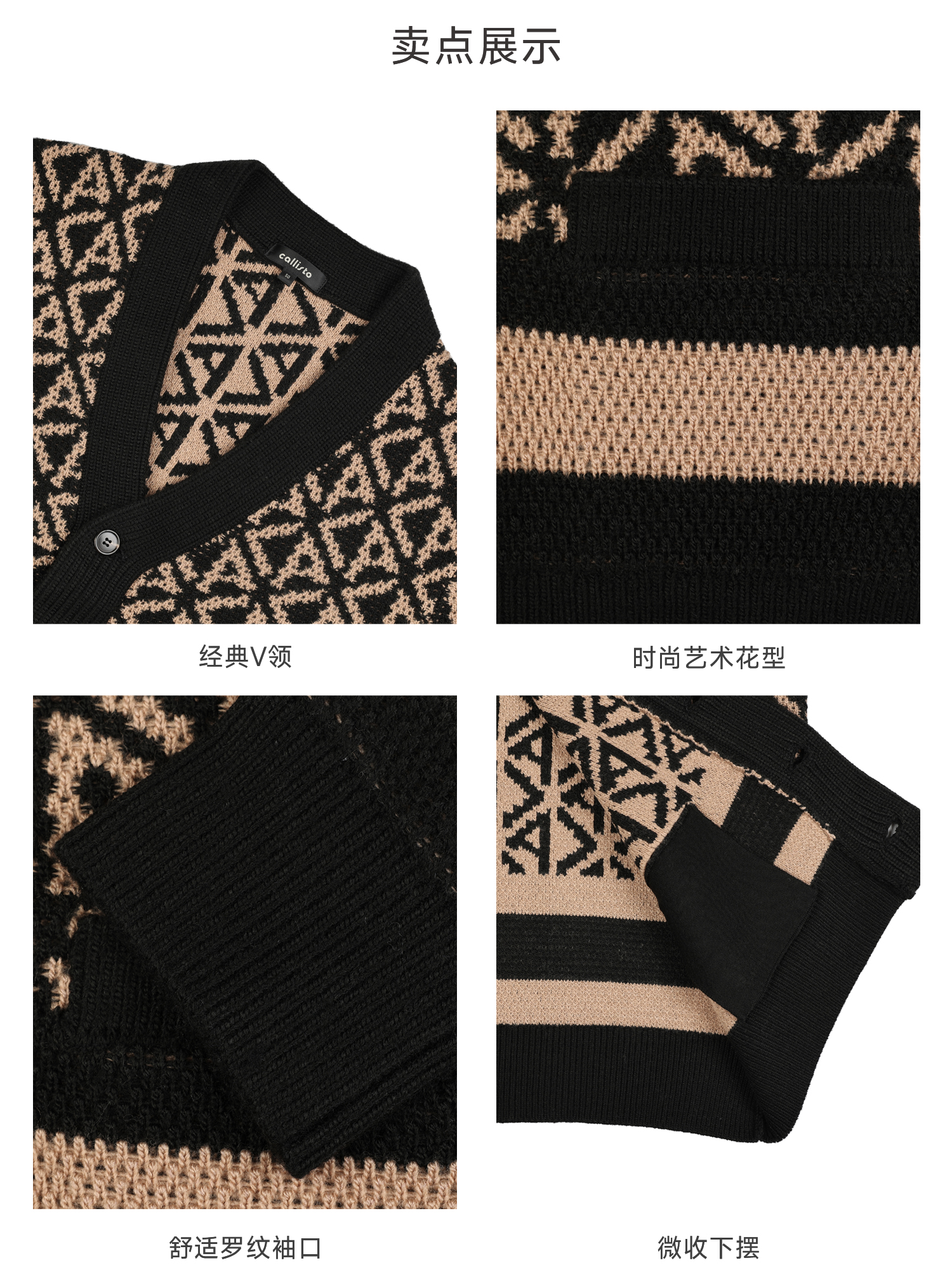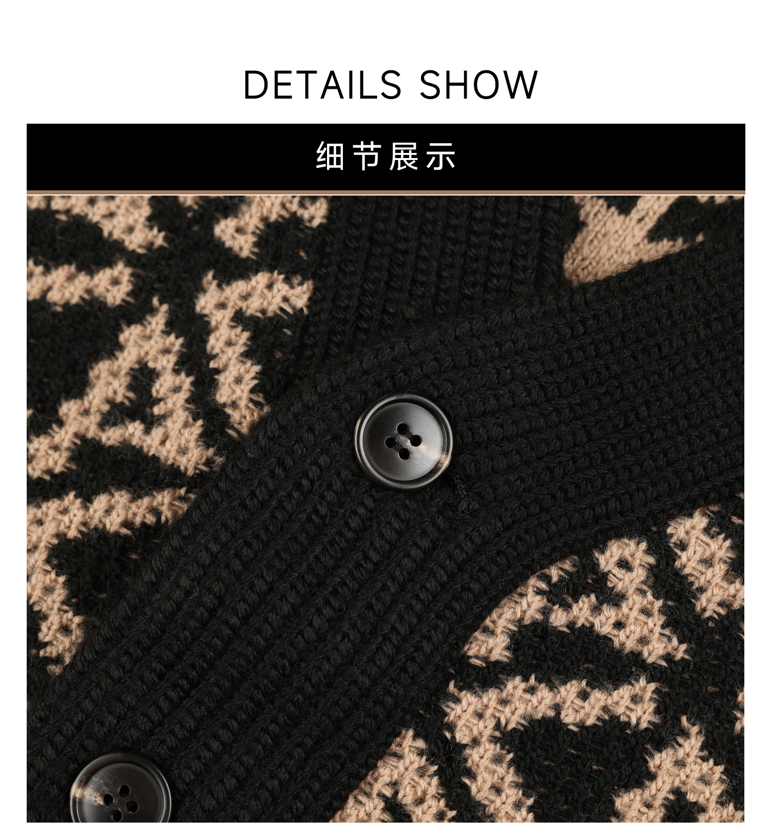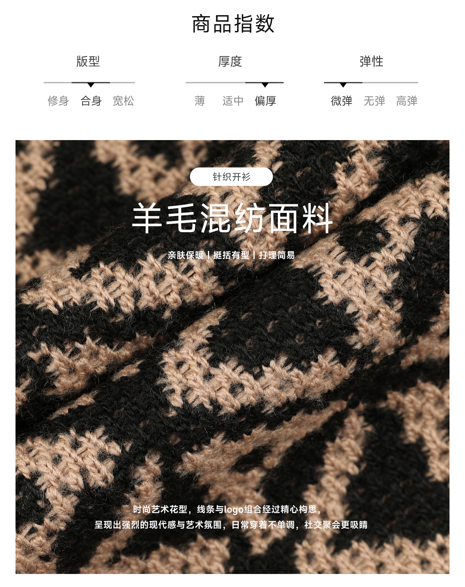 callisto雪茄棕绵羊毛时尚艺术花型开衫外套