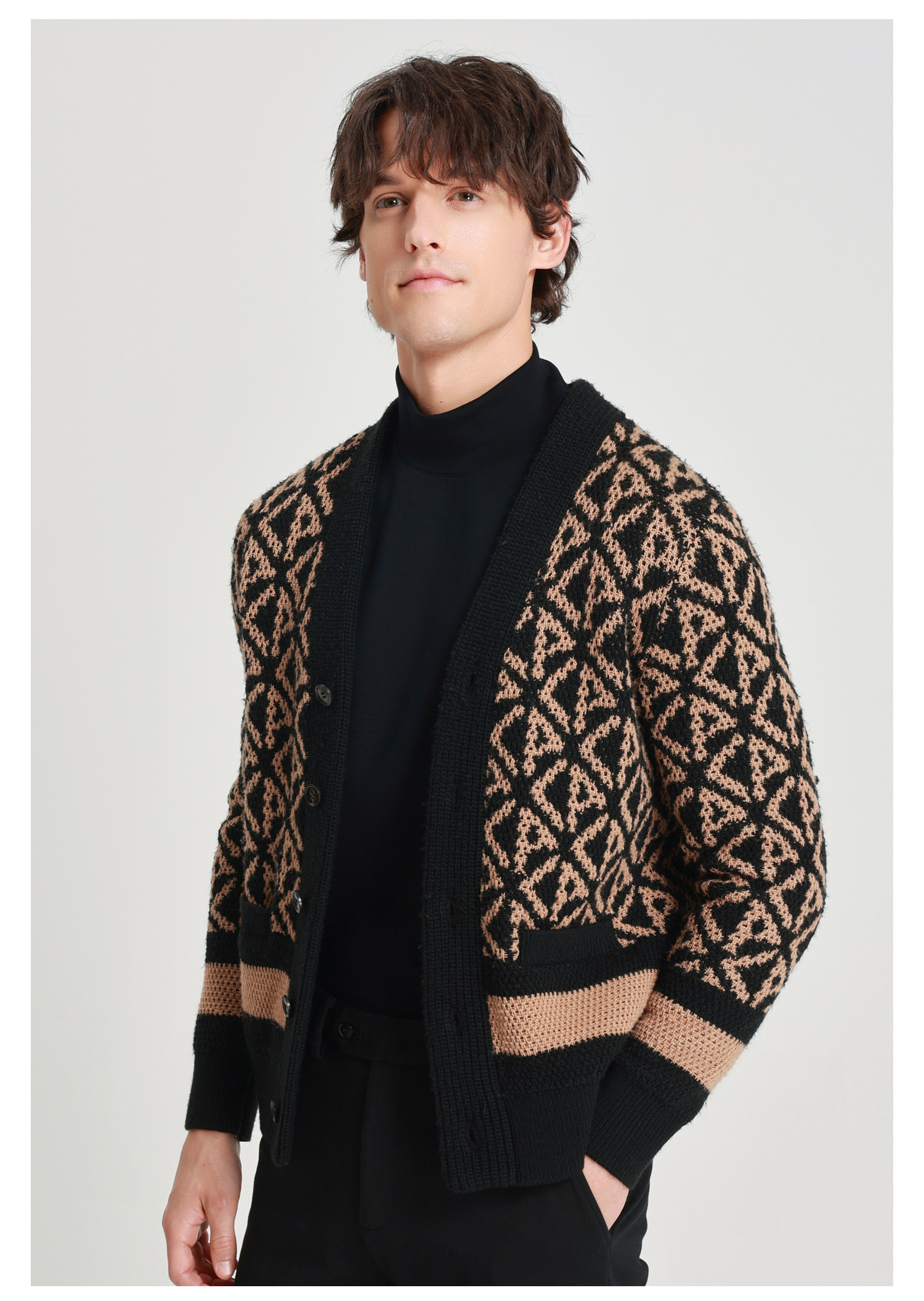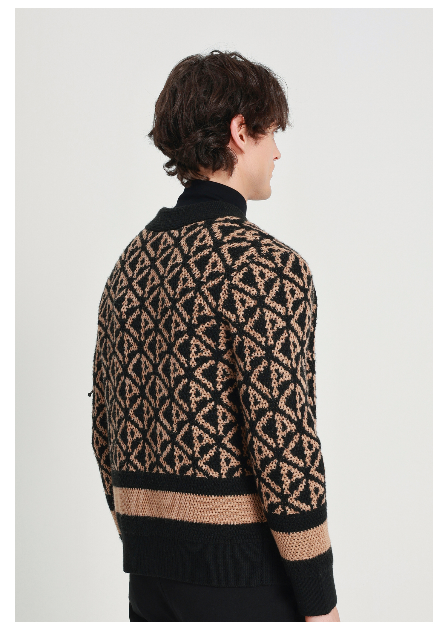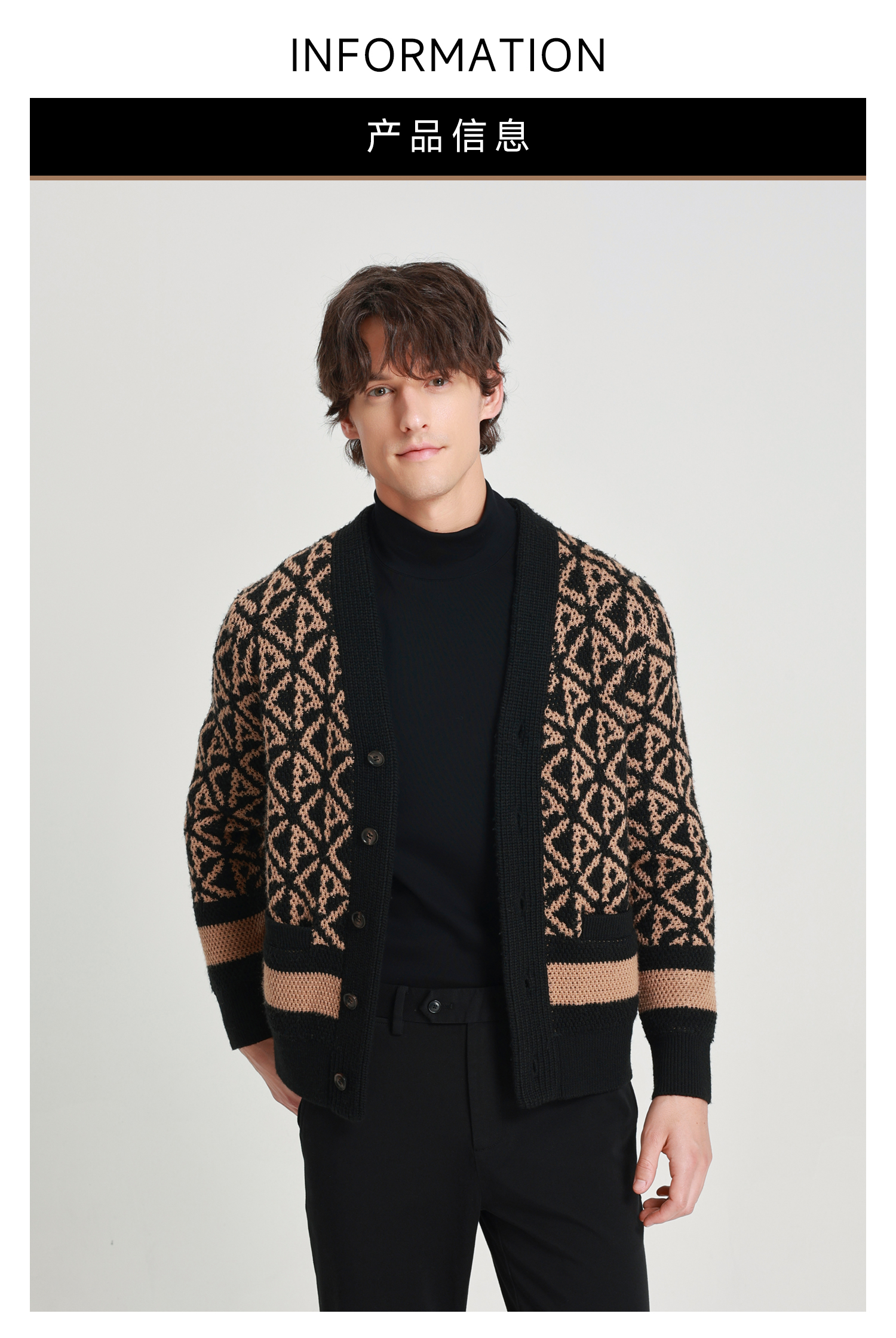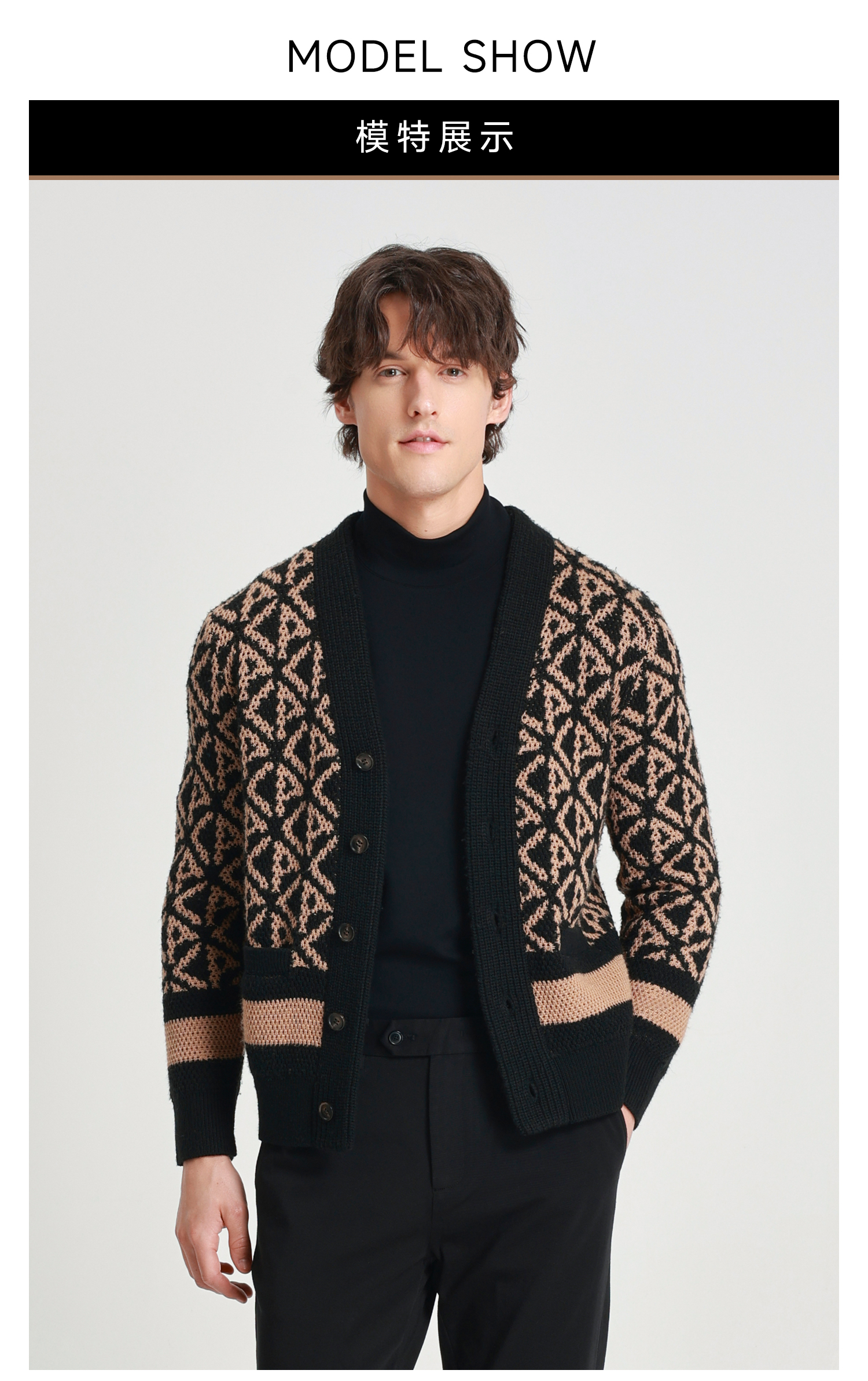 callisto雪茄棕绵羊毛时尚艺术花型开衫外套