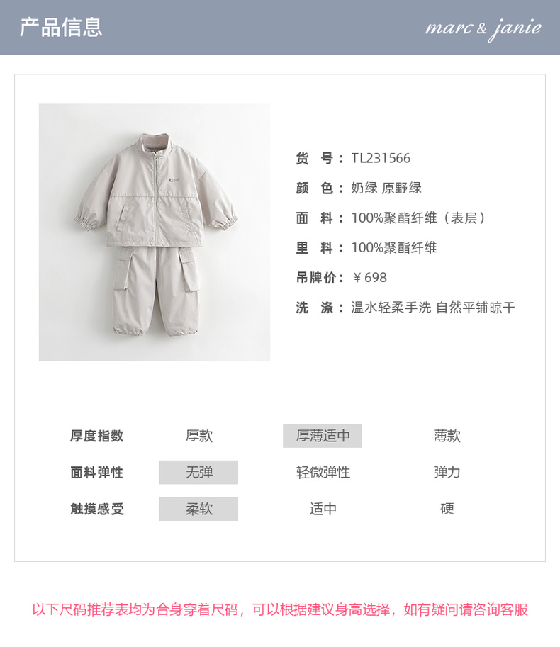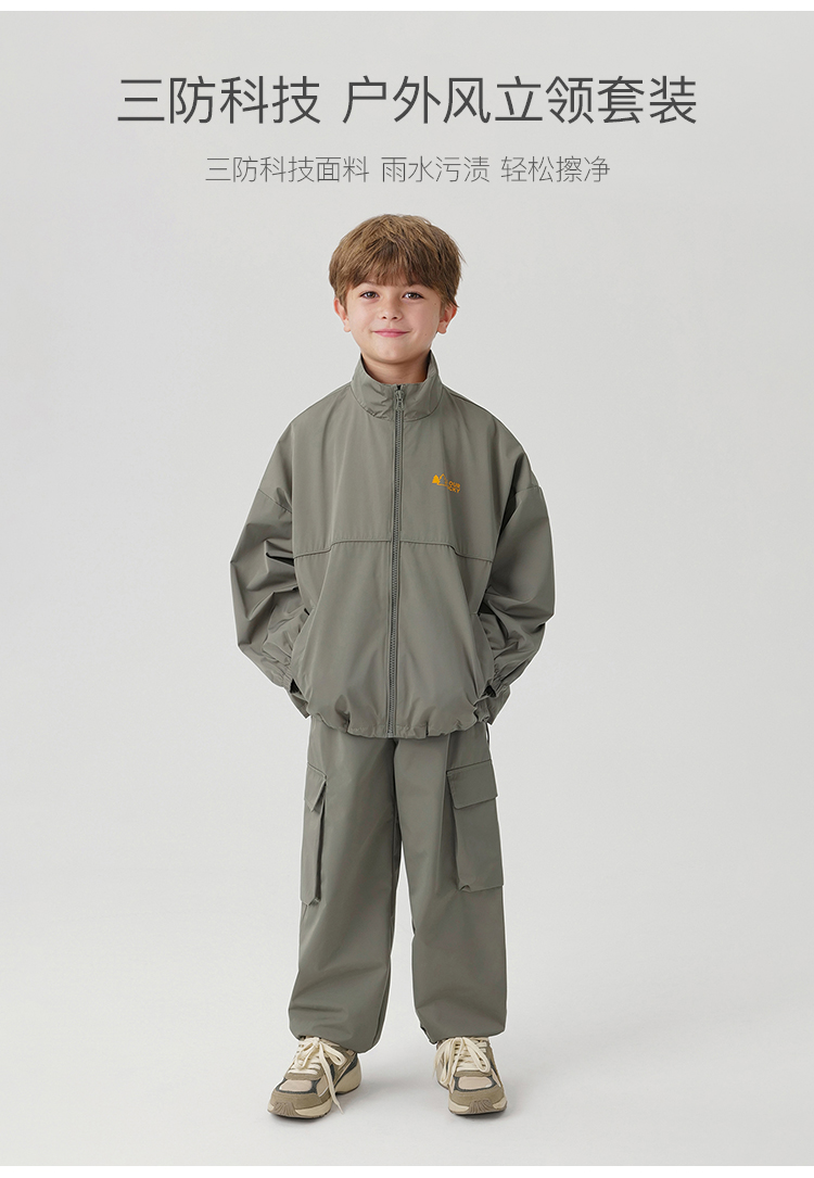 【三防】马克珍妮秋装新款 男童户外风立领外套束脚裤套装231566