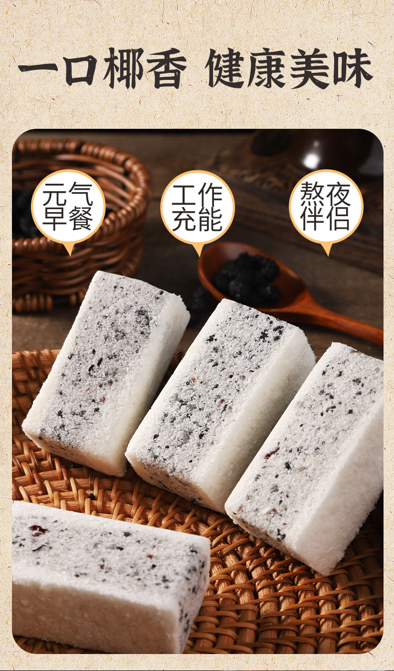 【健康美味!黑枸杞桑葚椰蓉糕】山药/黑枸杞/黑芝麻/桑葚/茯苓/椰蓉 营养搭配 !口感香糯细腻软糯!不单独添加蔗糖早餐代餐零食休闲特色点心食品Y