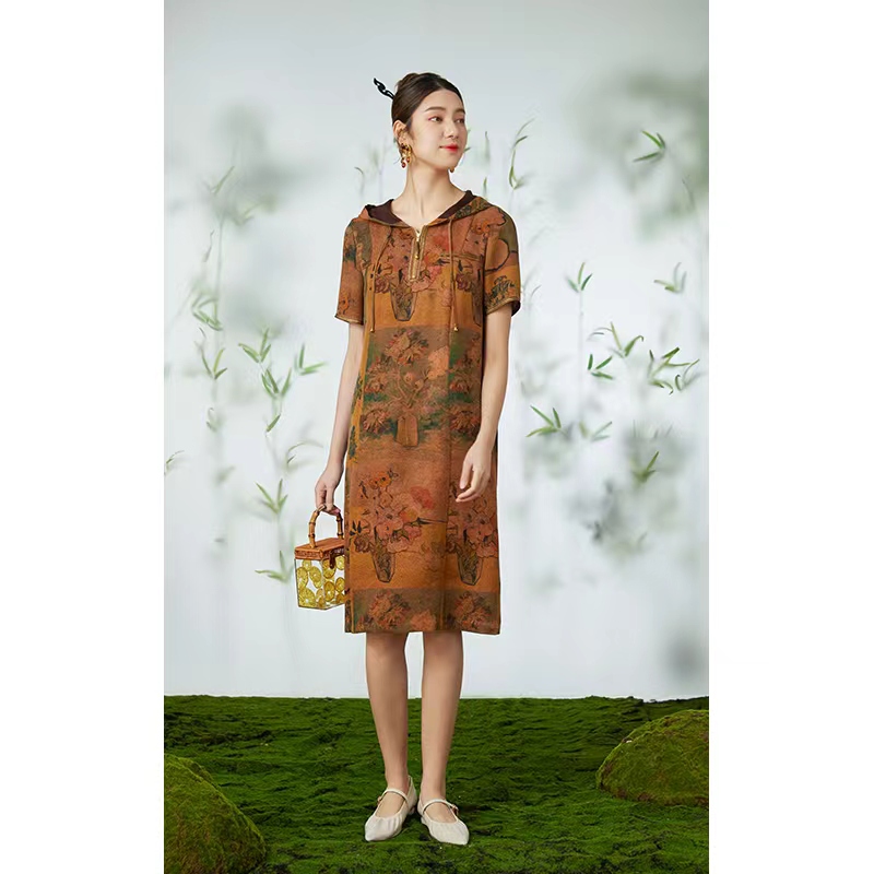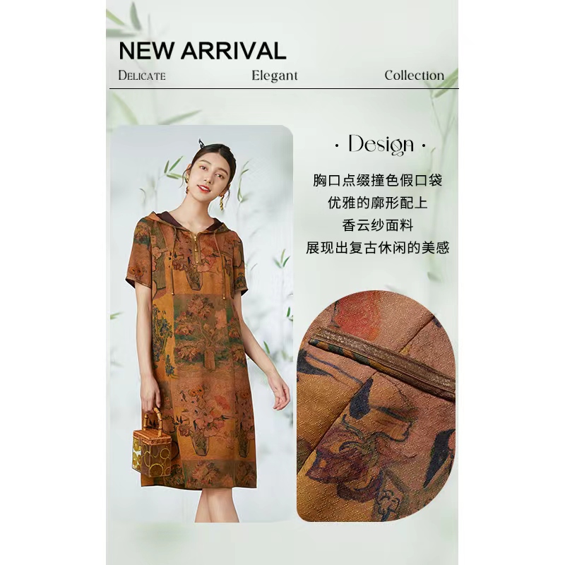 5F 乔万尼小草绞罗香云纱连衣裙 商品缩略图0