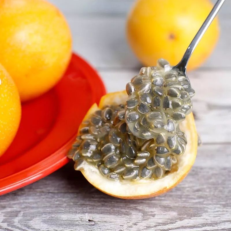 热情果和百香果长得相似,但口感有很大区别,它含有多种热带水果的复合花果香气,内里肉汁丰富,香甜无比。