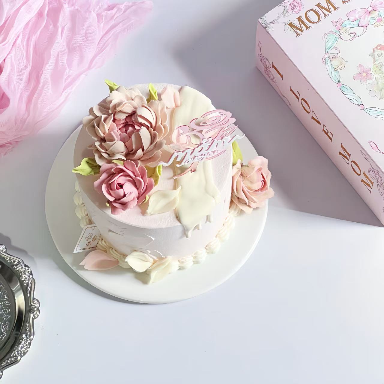 温柔以待·洋牡丹豆沙韩裱 母亲节蛋糕·专为妈妈研发健康夹心·夹心可选【仅限深圳配送】 | 烤爱
