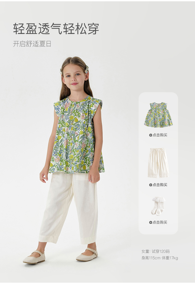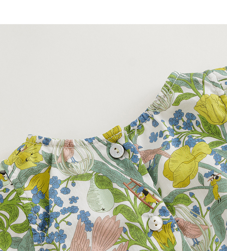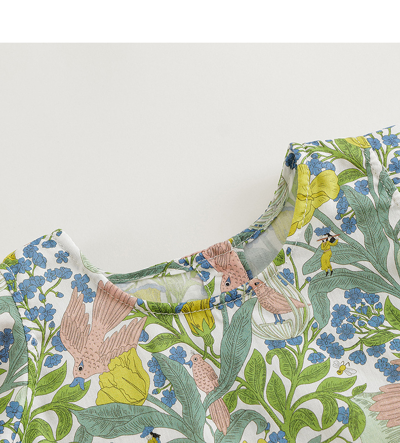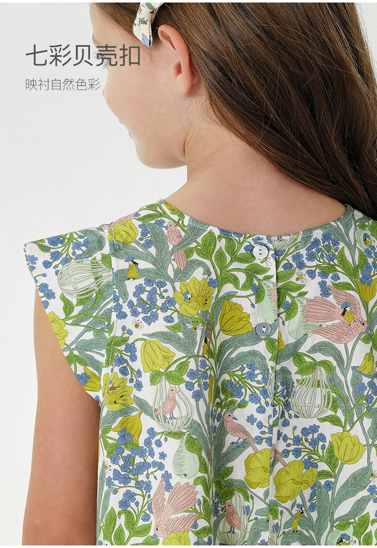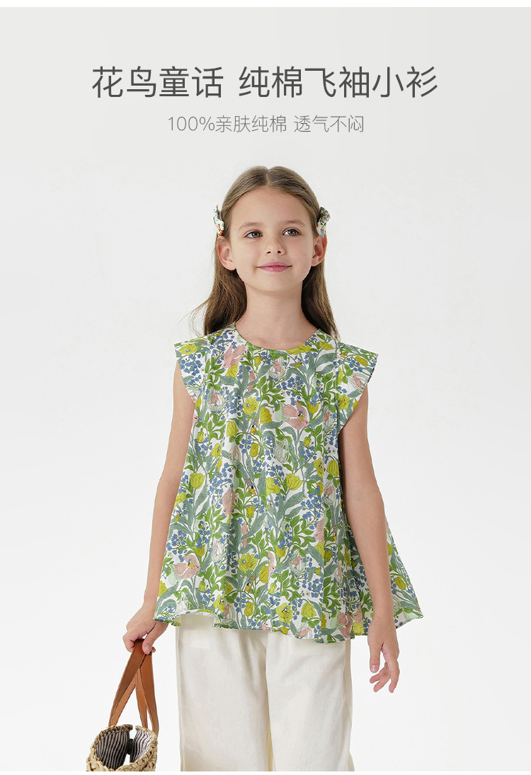 【马克珍妮 芦芙】女童花鸟童话飞袖衬衫儿童上衣夏装新款240371