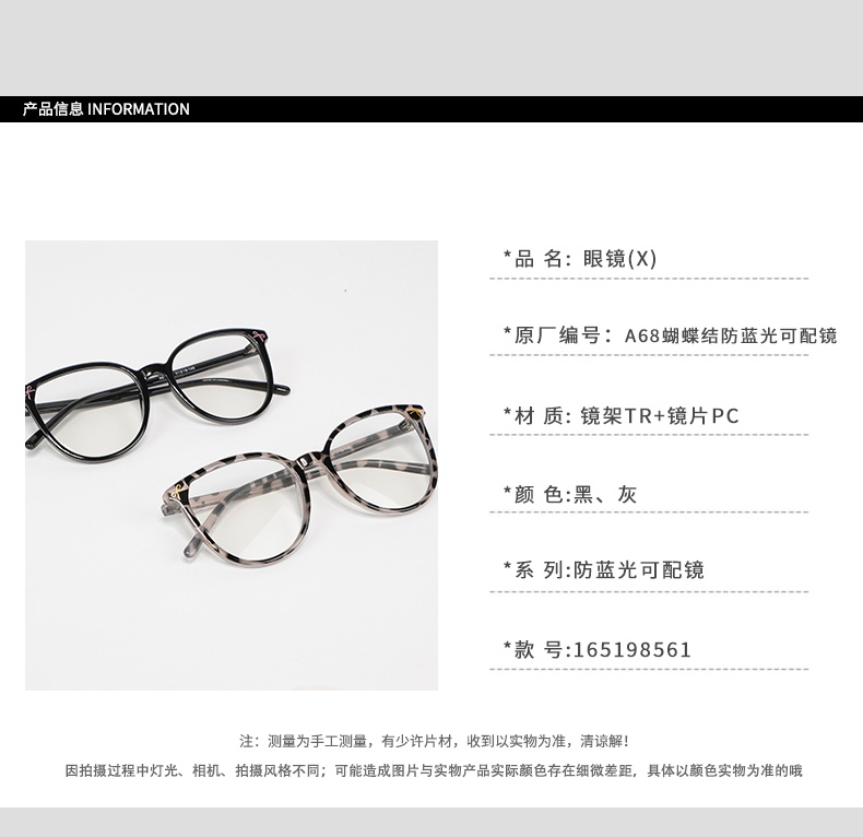 A68蝴蝶结防蓝光可配镜眼镜-纪念日百货门店同款165198561