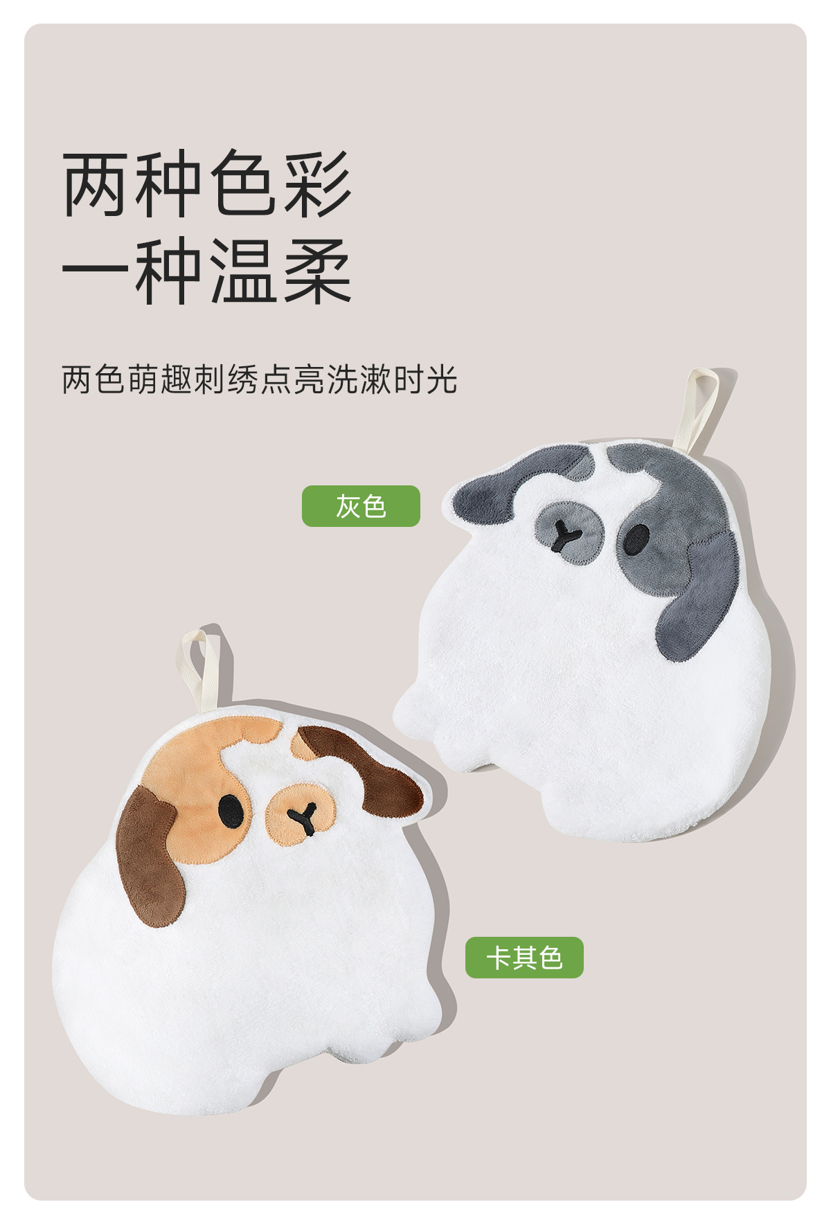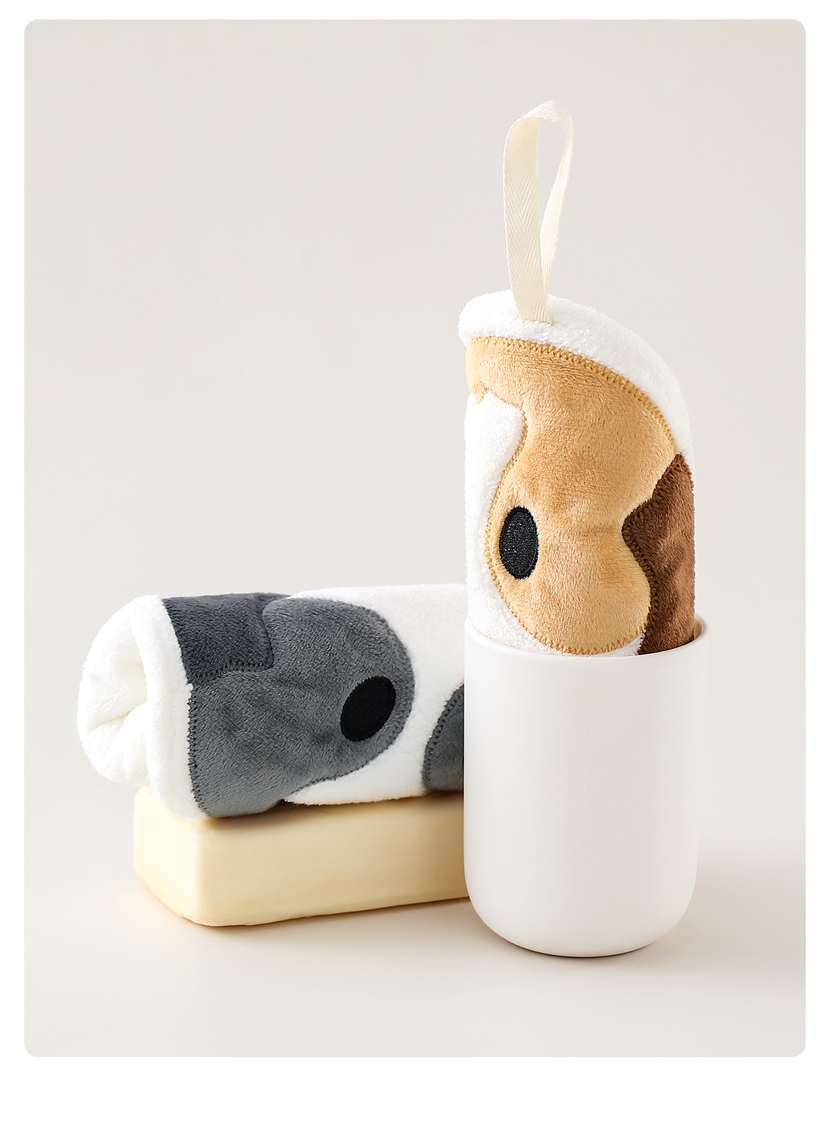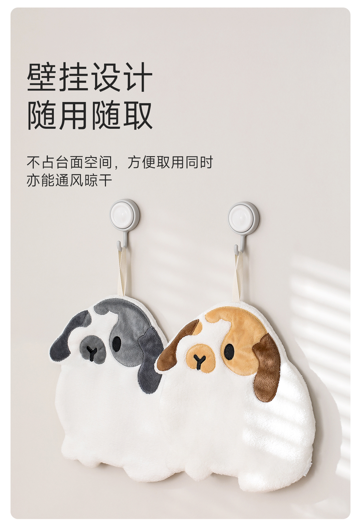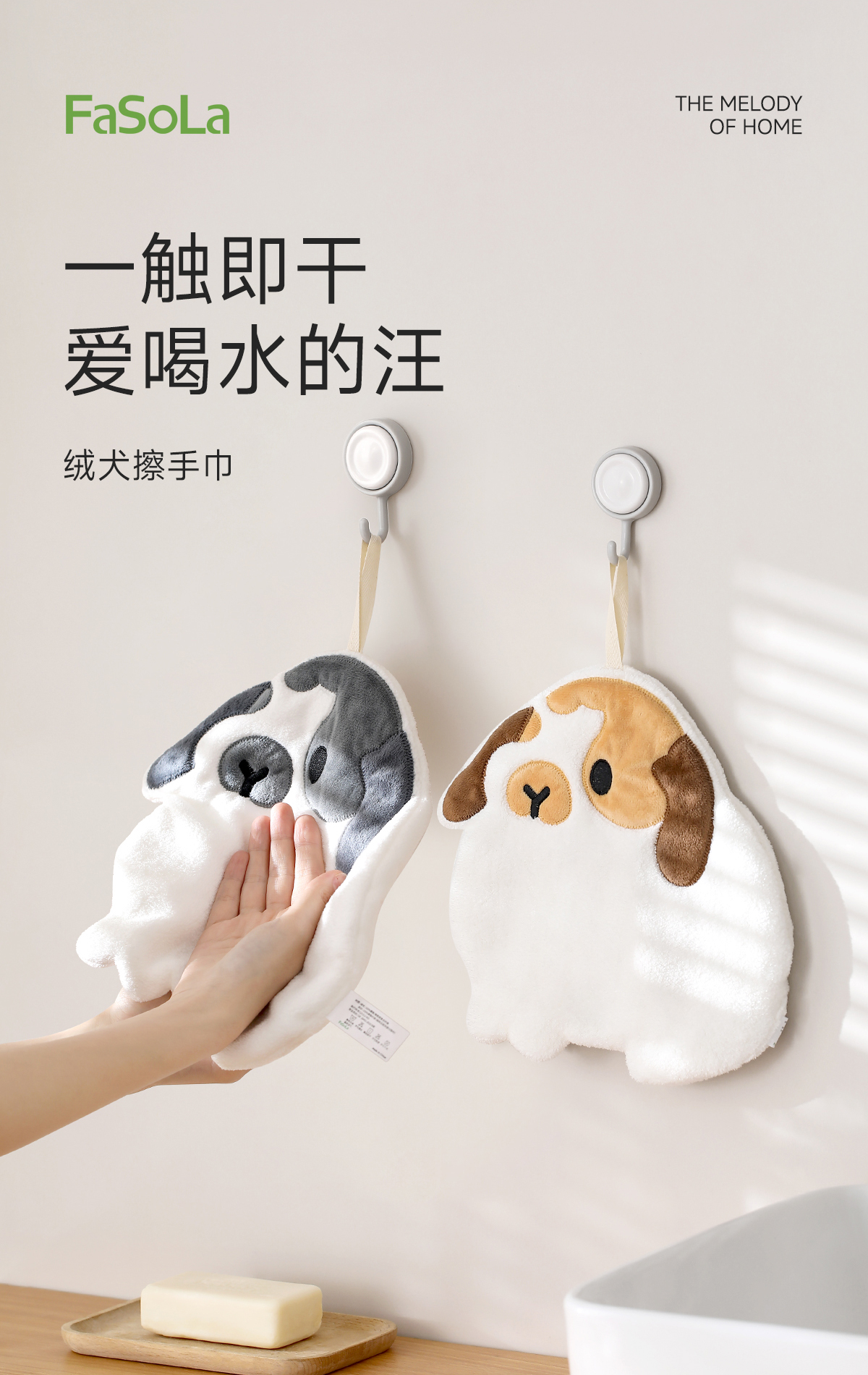 FaSoLa挂式吸水速干卡通可爱双面珊瑚绒小毛巾卫生间抹手布绒犬擦手巾