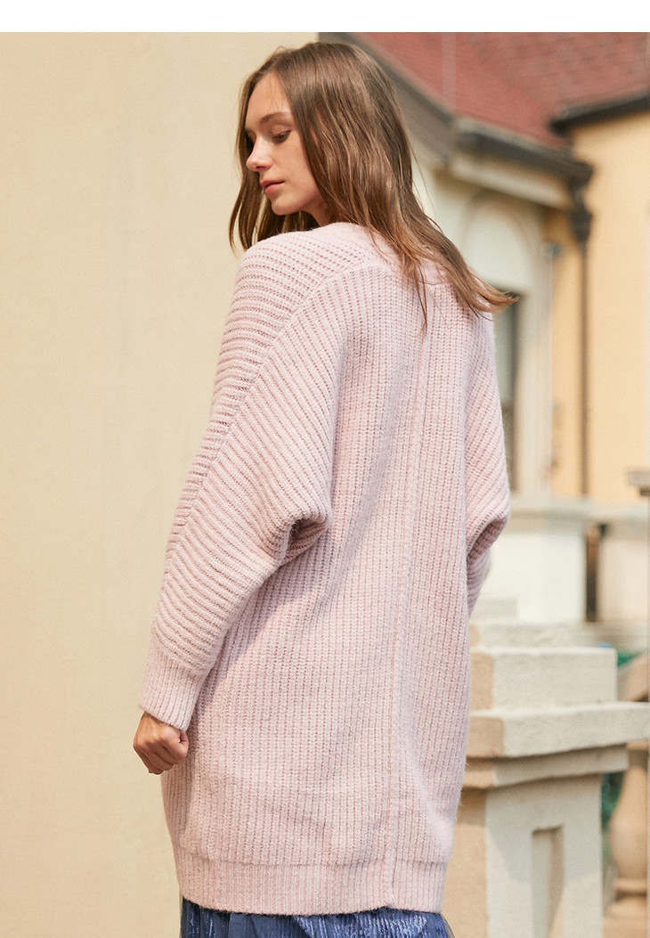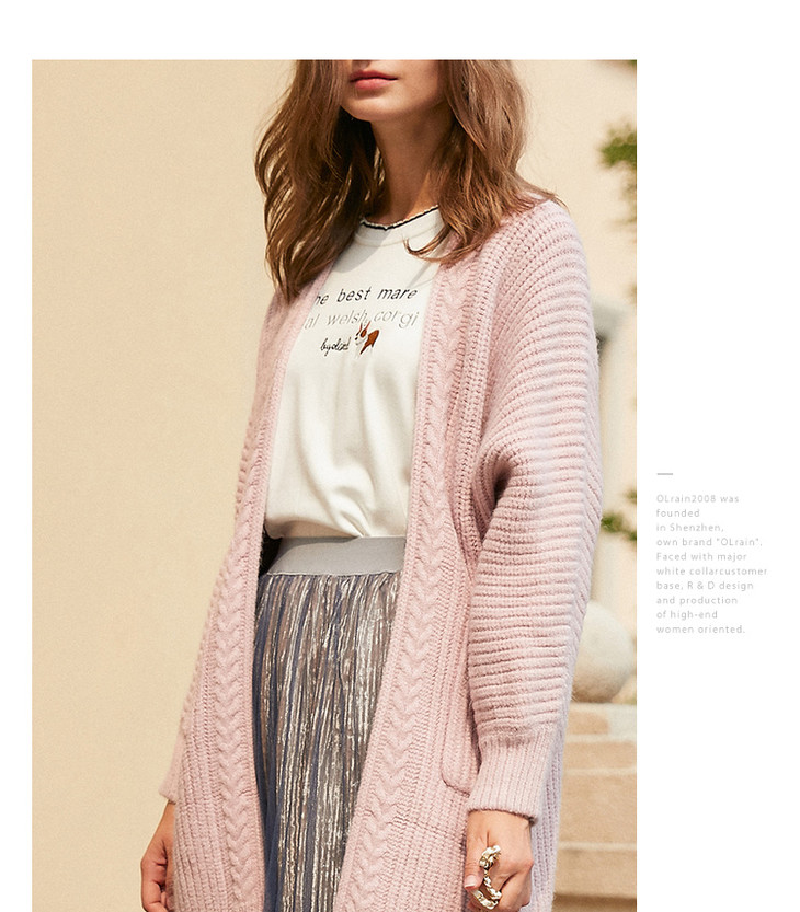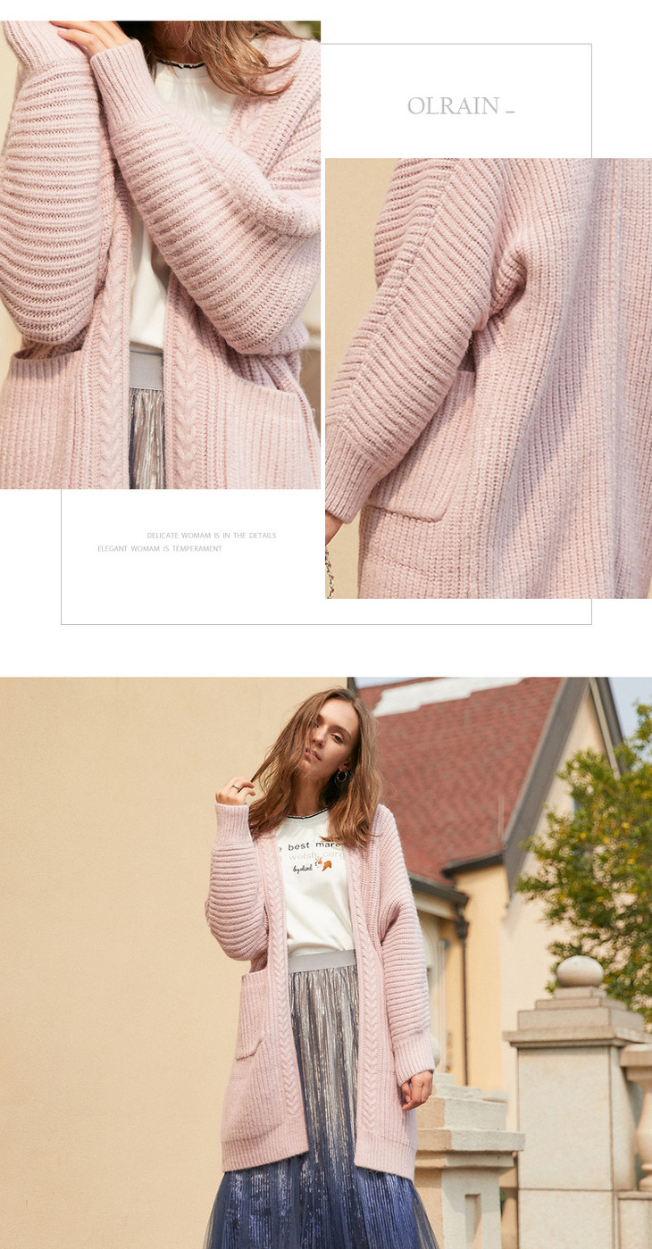 欧芮儿V领开衫慵懒风毛衣冬装女2019中长款宽松针织衫毛衫