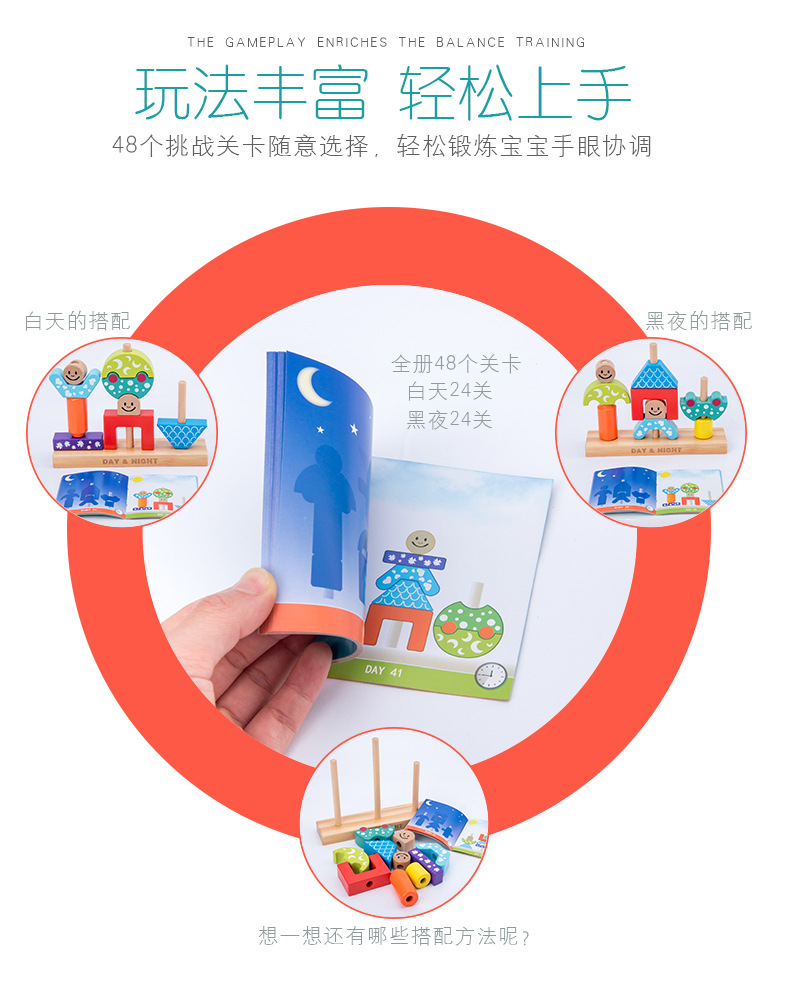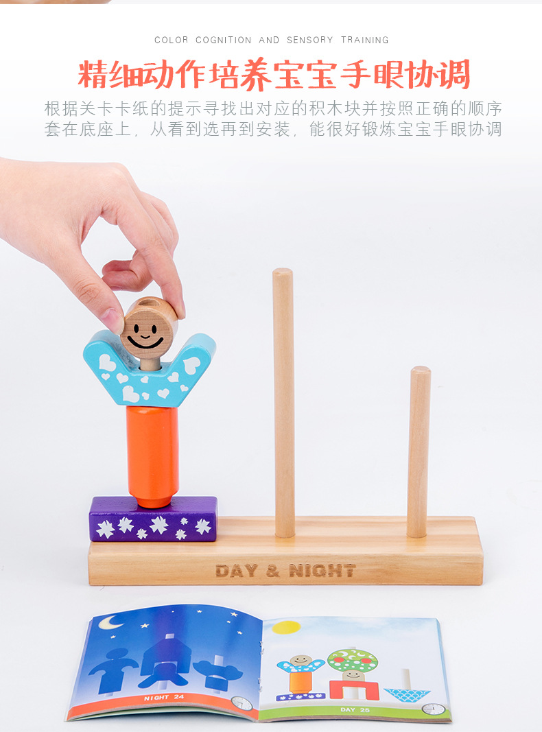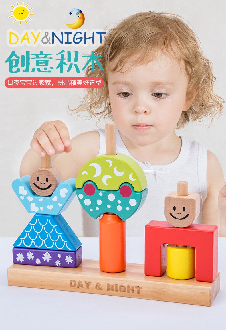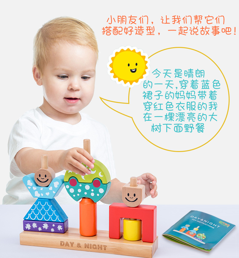 【色彩认知 感官锻炼】日与夜拼插积木 儿童玩具3-4-5-6岁益智力开发 过家家宝宝拼装组合