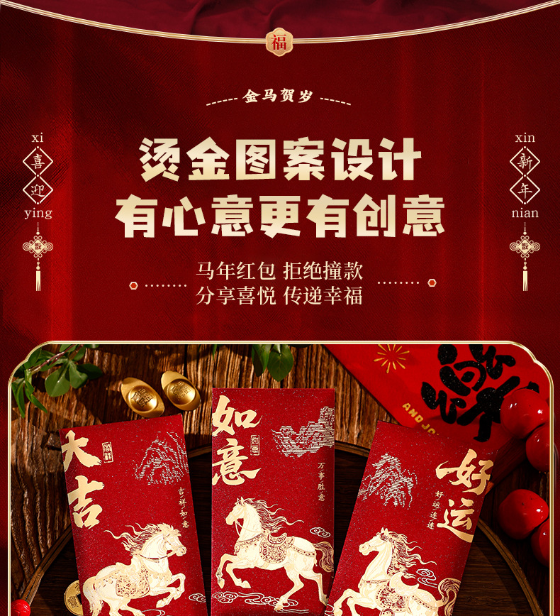 「拍1发2!9.9到手12个」2026马年新款个性创意新年高档利是封卡通压岁可爱春节过年红包袋