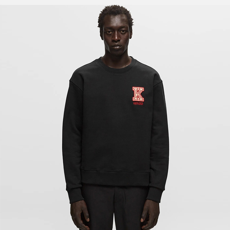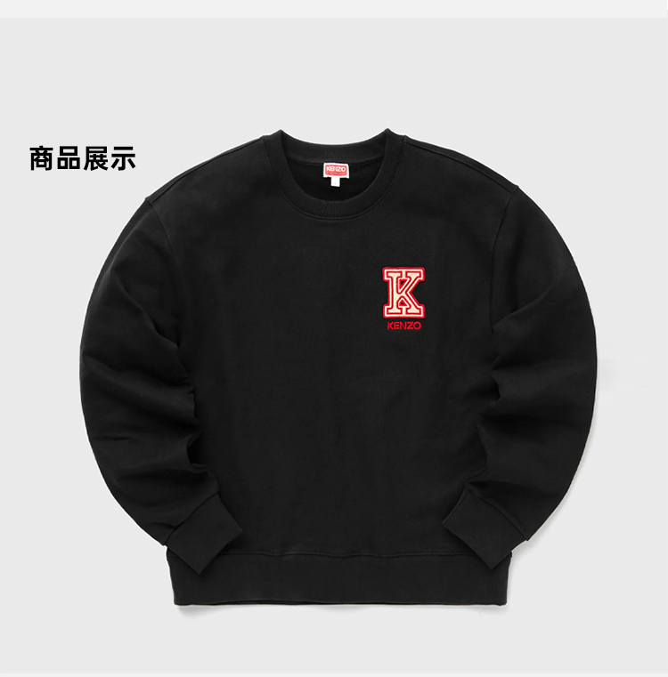 KENZO 高田贤三 男士字母刺绣徽标棉质圆领长袖卫衣 黑色 FD65 SW011 4ME 99J