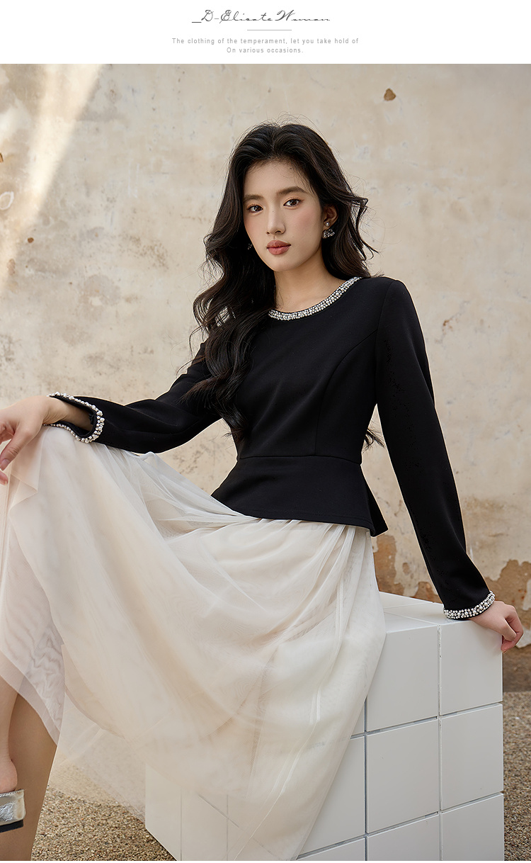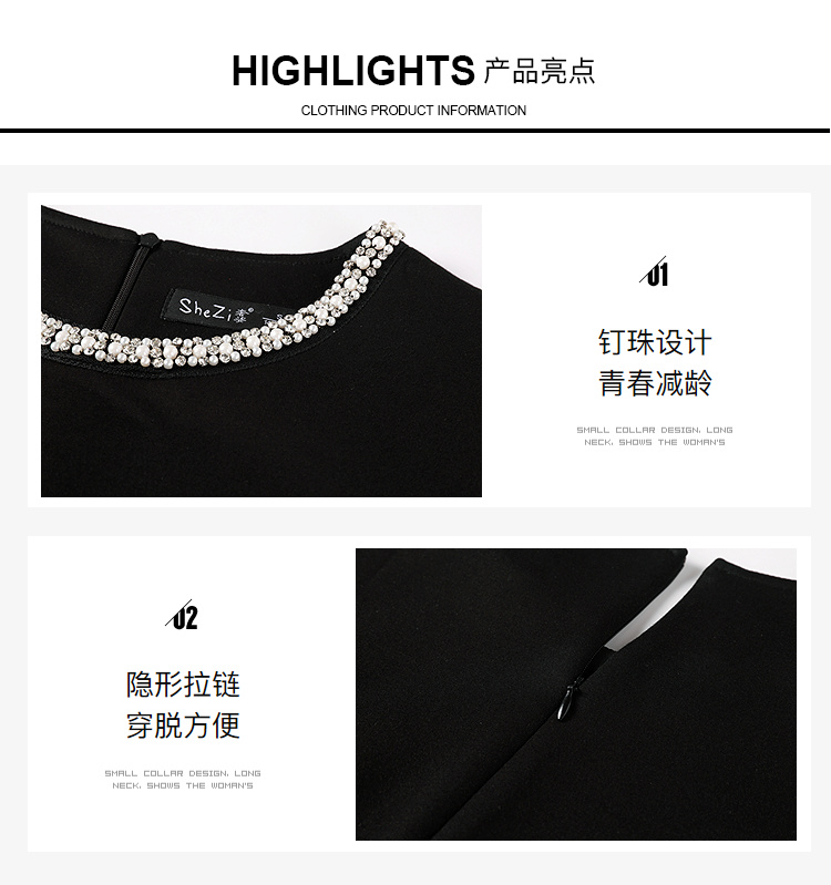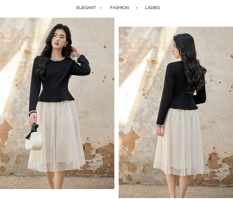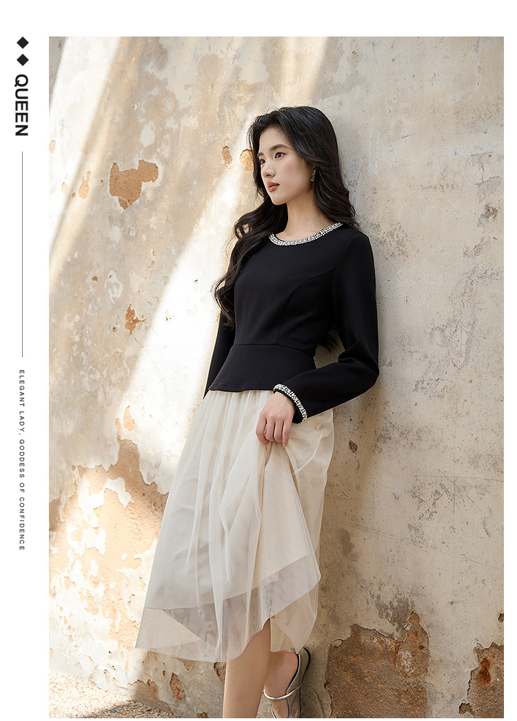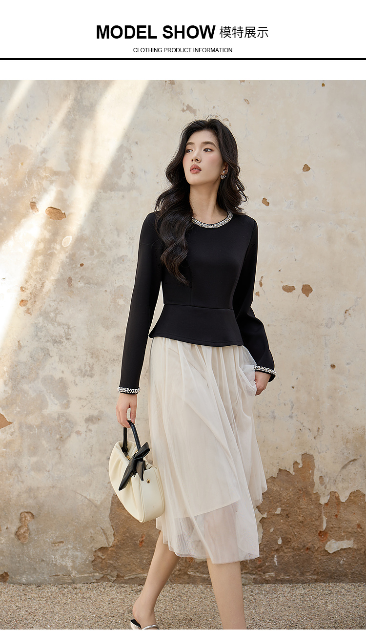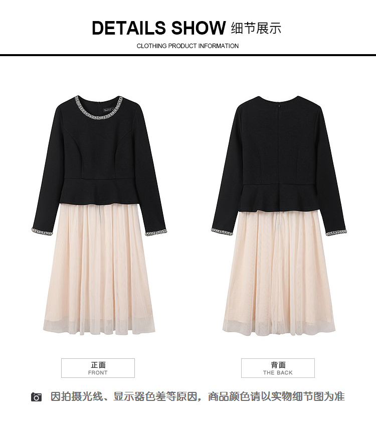 奢姿大码女装2025秋季减龄钉珠假两件拼接连衣裙胖妹妹圆领裙子9953894318