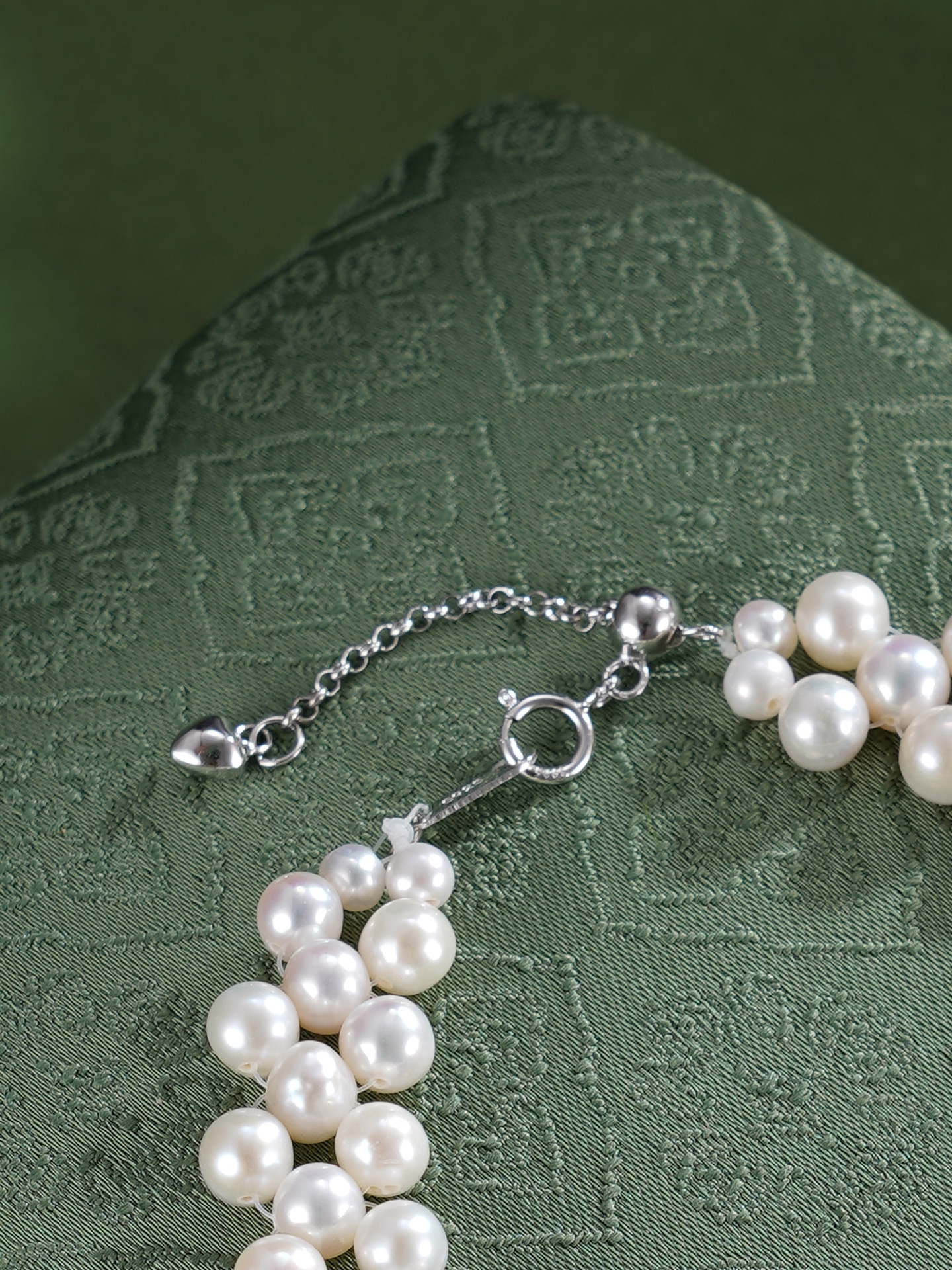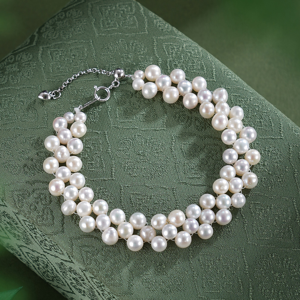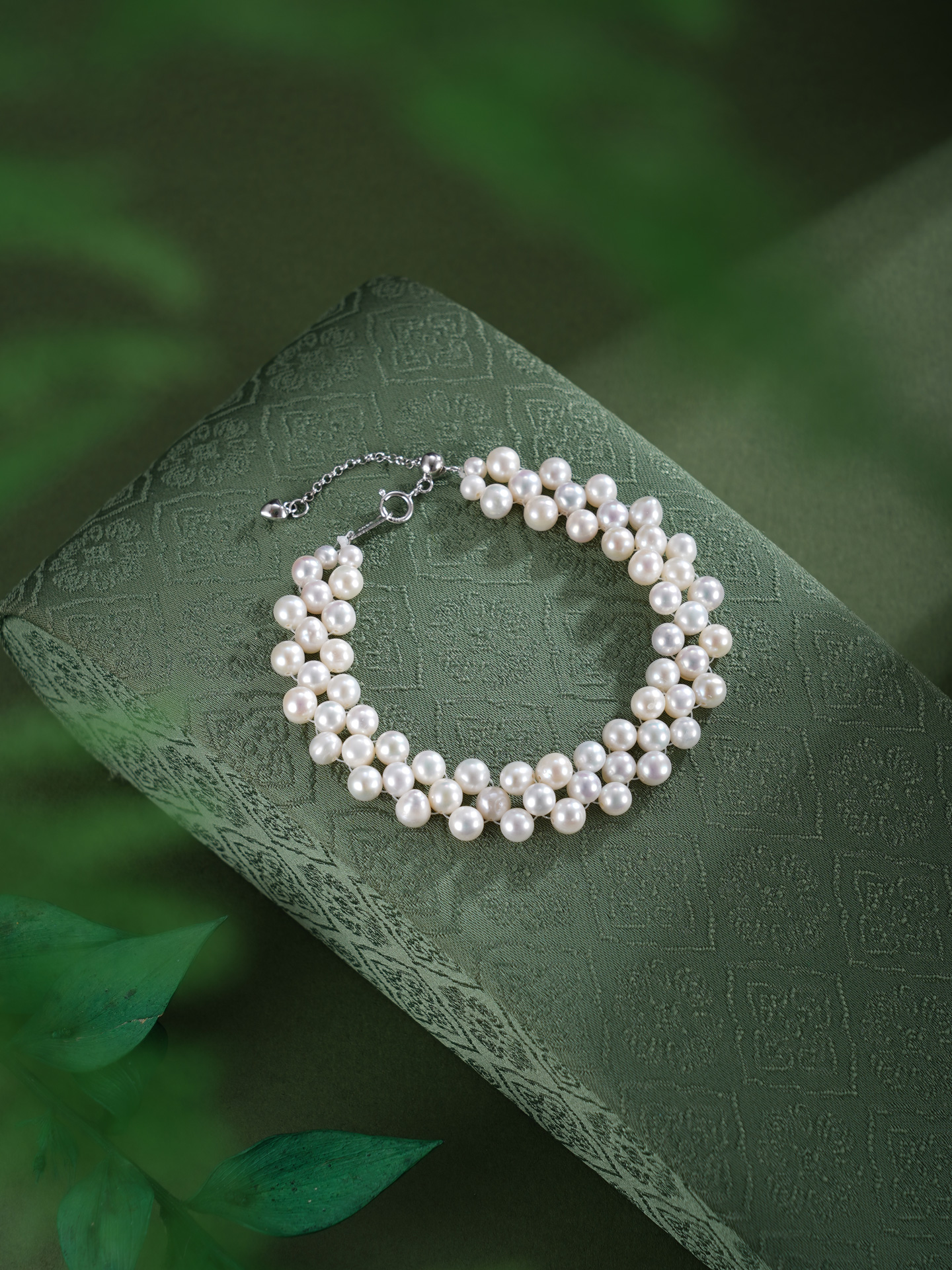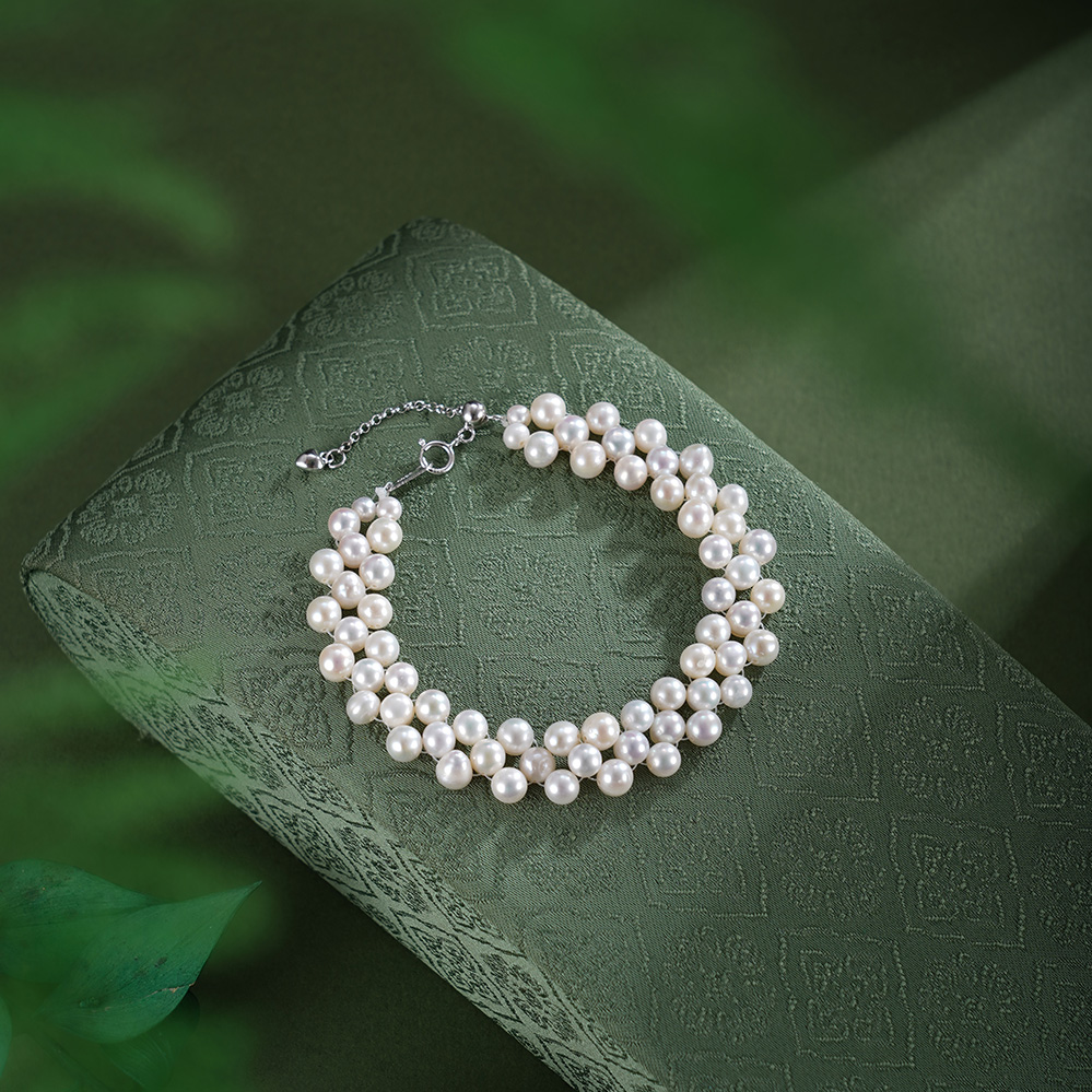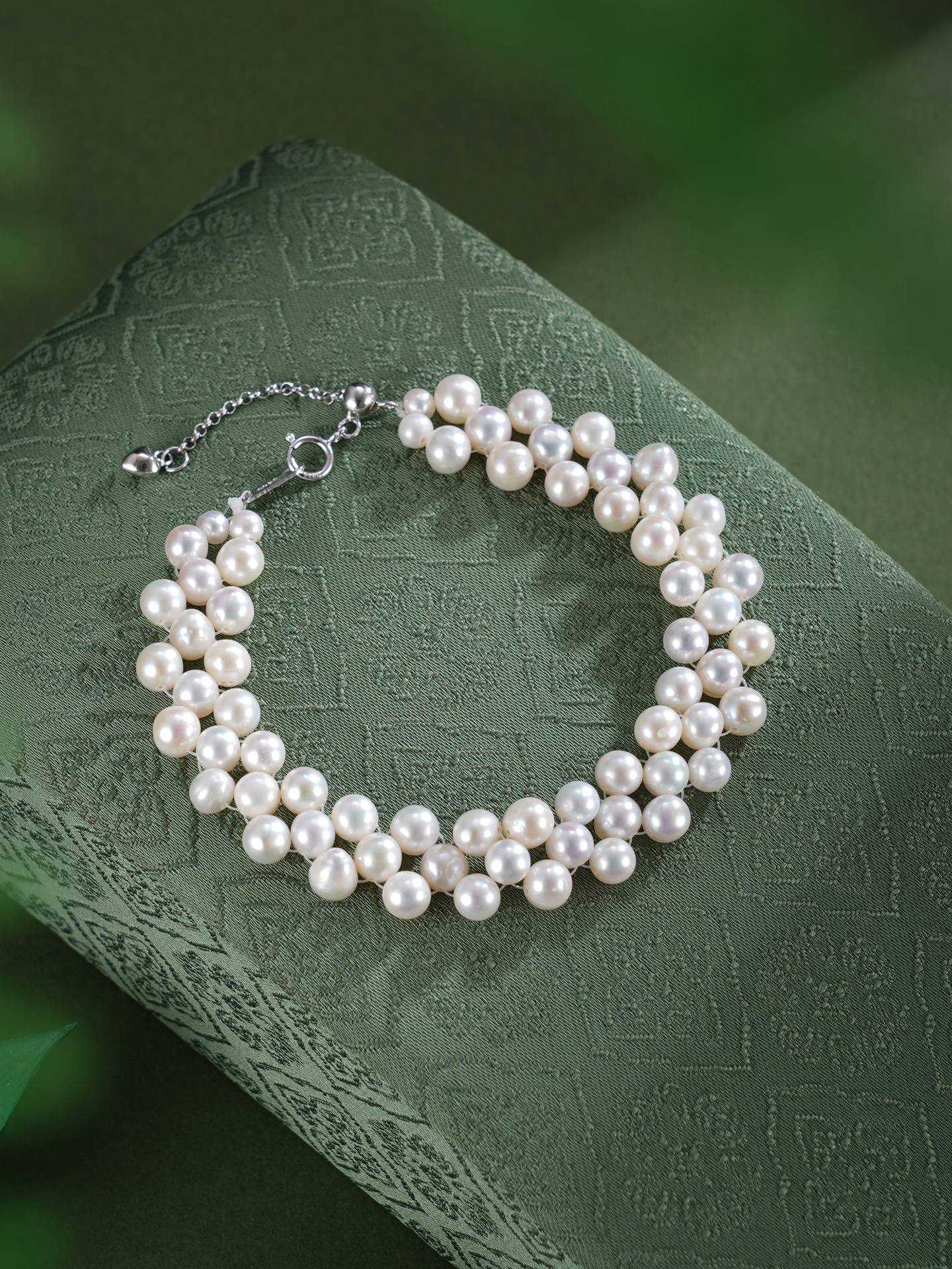 子佩集【月魄珠华】银S925珍珠惜王妃手链【SPB1950001】5mm珠三排珠2601